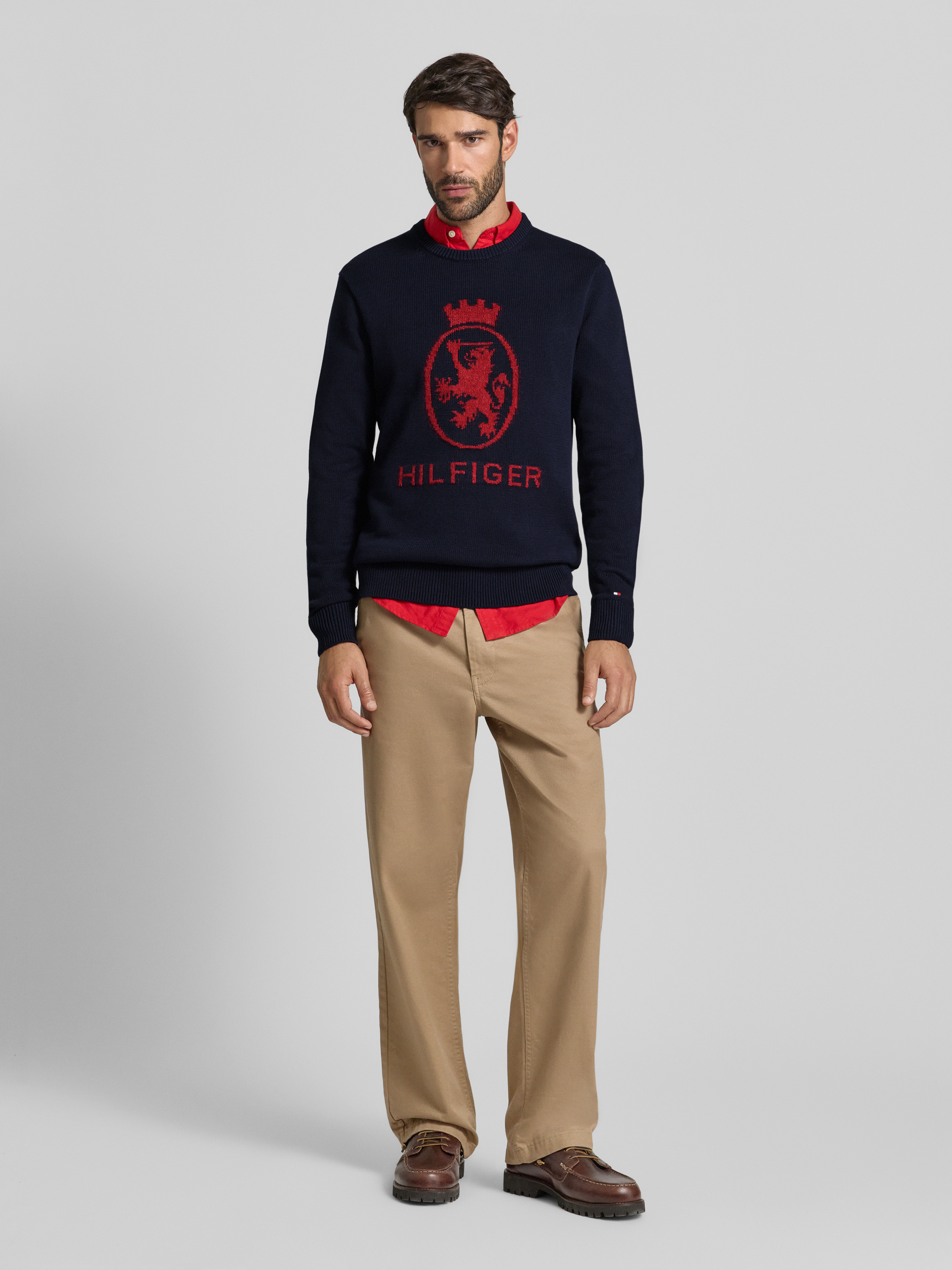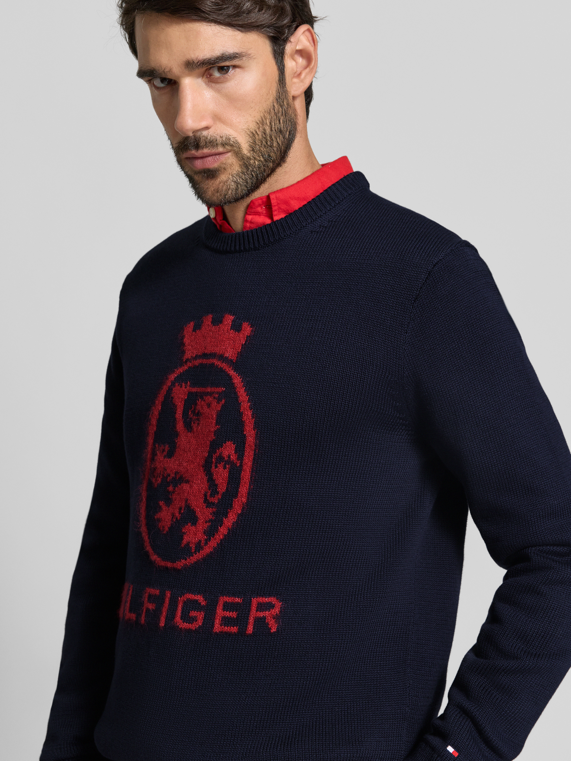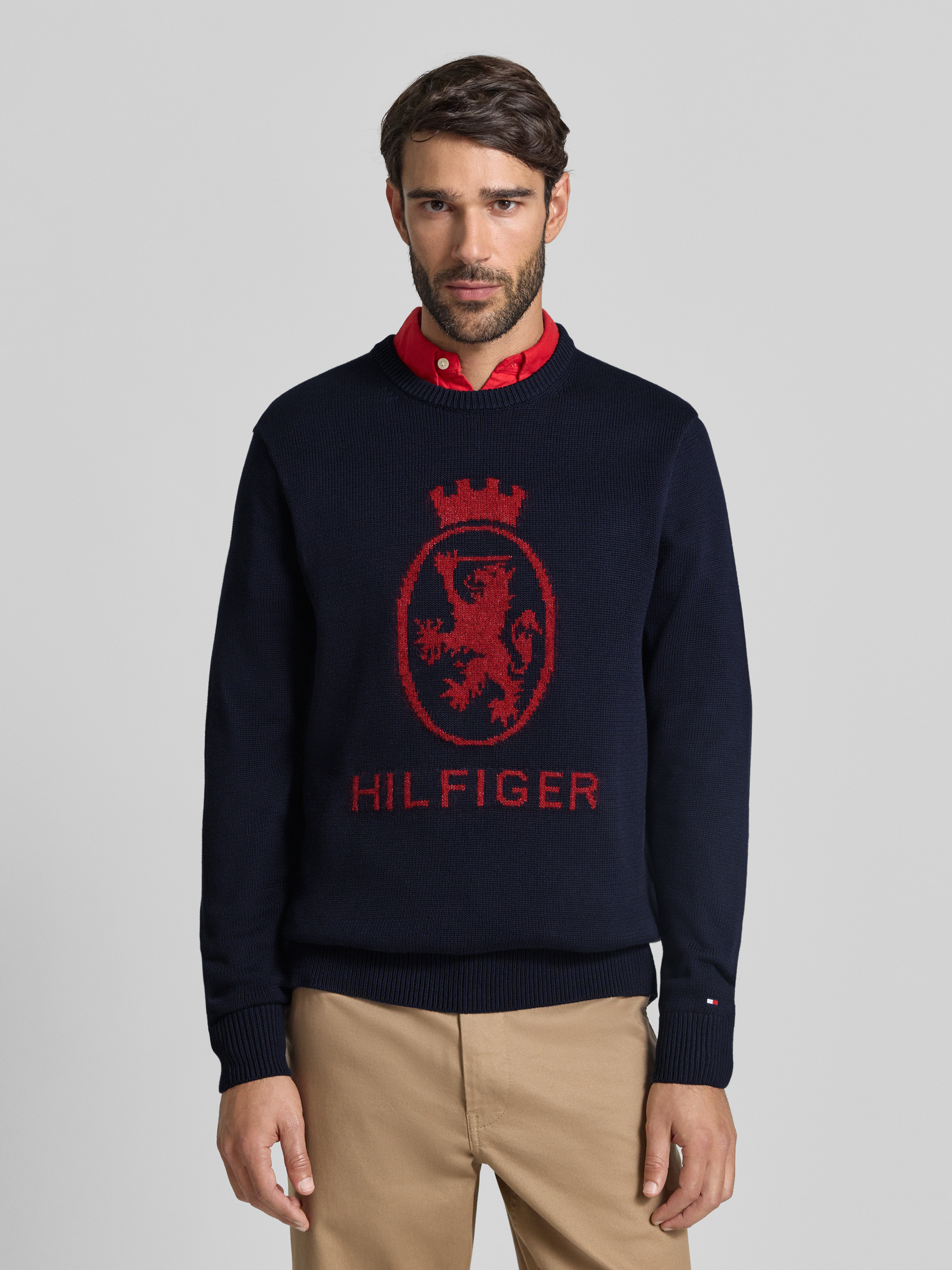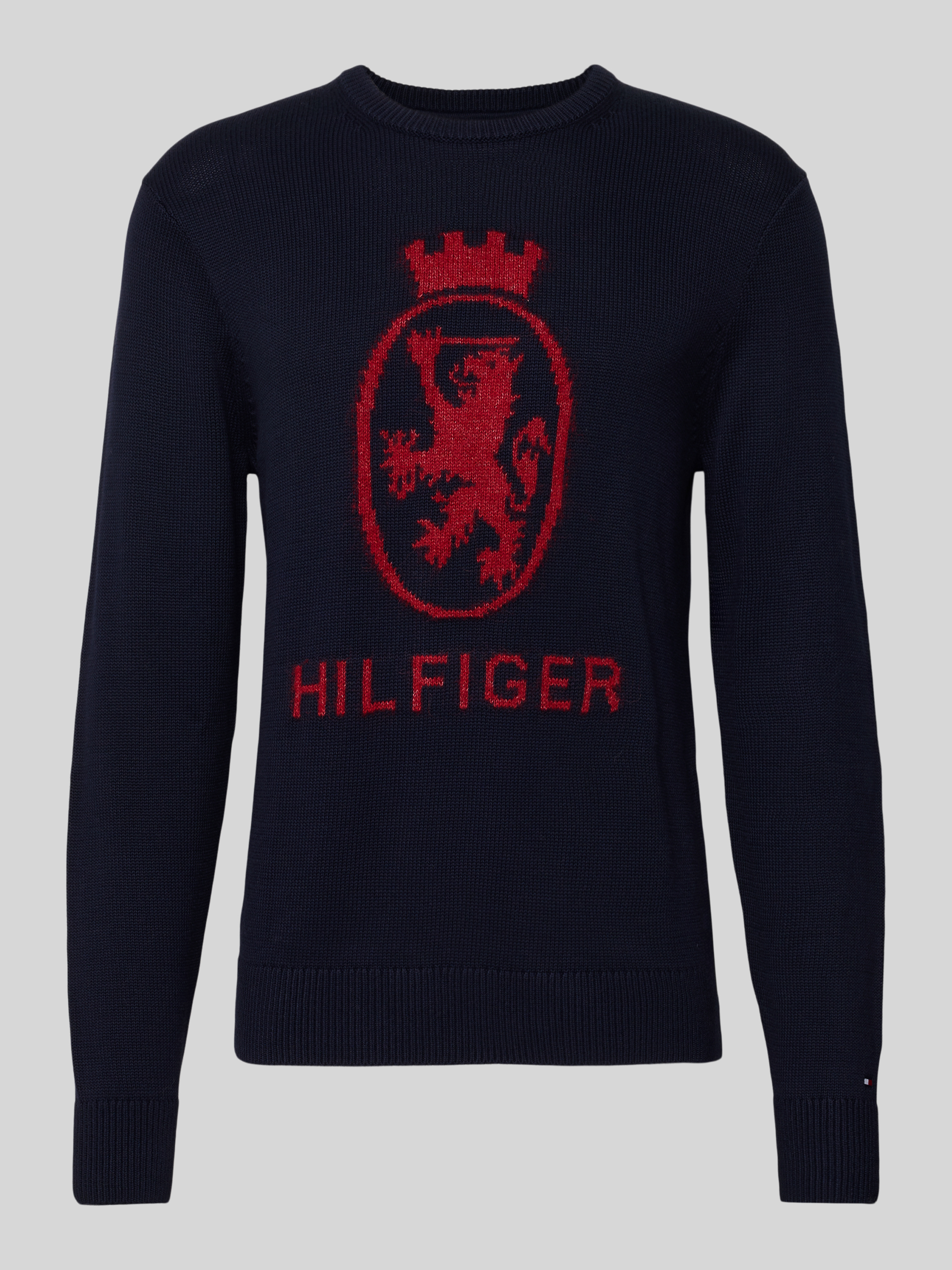 Der Herren Strickpullover von Tommy Hilfiger zeigt sich im Regular-Fit und sorgt durch seine reine Baumwolle für ein angenehmes Tragegefühl im Alltag. Die unifarbene Optik wirkt zurückhaltend, während der Rundhals-Ausschnitt und die langärmelige Form vielseitige Kombinationsmöglichkeiten eröffnen. Dezente Label-Print-Details runden das Modell stimmig ab.