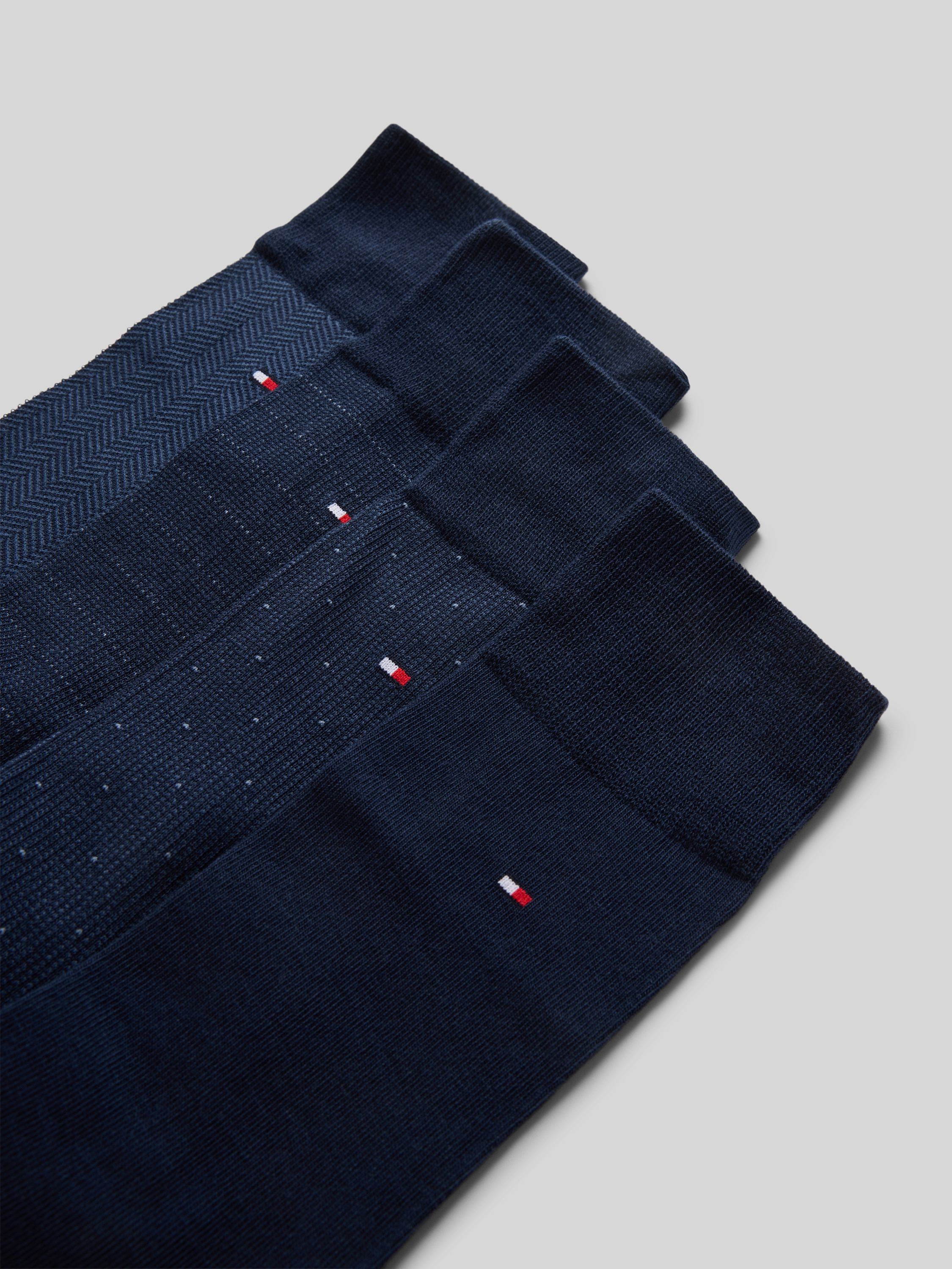 Die Herren Socken von Tommy Hilfiger im 6er-Pack zeigen sich in unifarbener und Allover-Muster Optik, wodurch sie sich vielseitig kombinieren lassen. Durch die Feinstrick-Verarbeitung fühlt sich der Baumwoll-Mix angenehm weich auf der Haut an und sorgt für ein entspanntes Tragegefühl im Alltag. Verstärkte Fersen unterstützen die Strapazierfähigkeit, sodass man auch bei häufigem Einsatz auf langlebige Begleiter zurückgreifen kann.