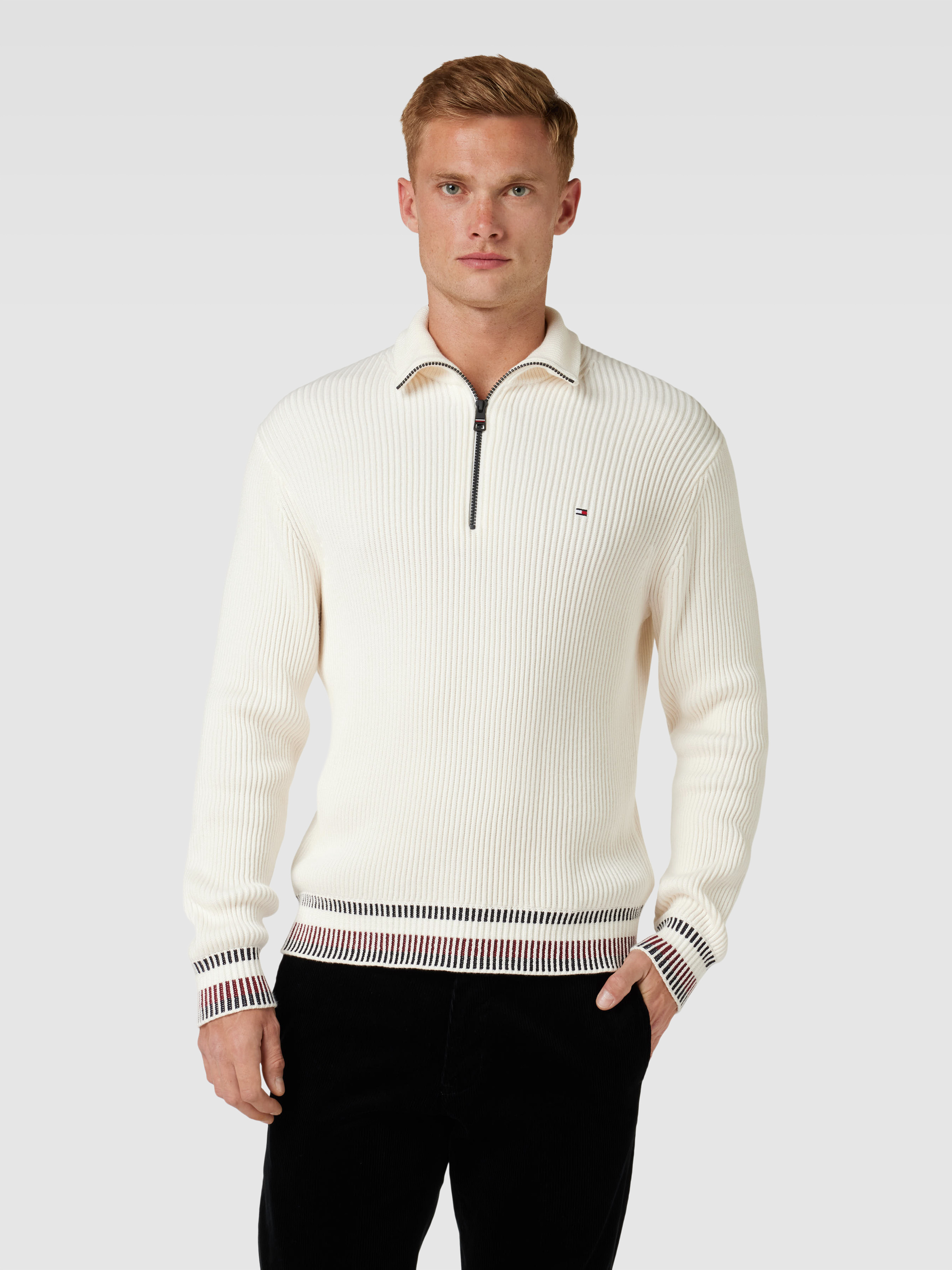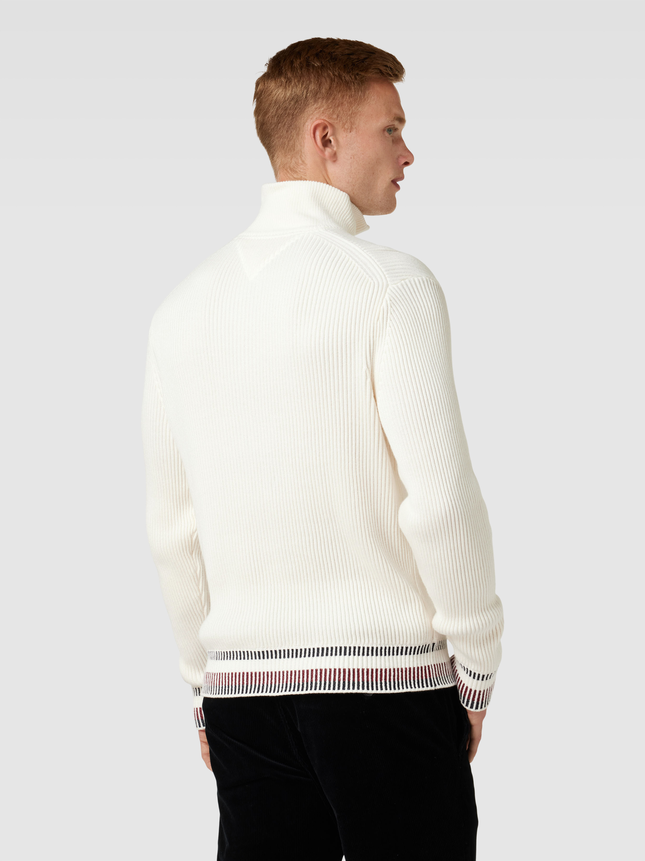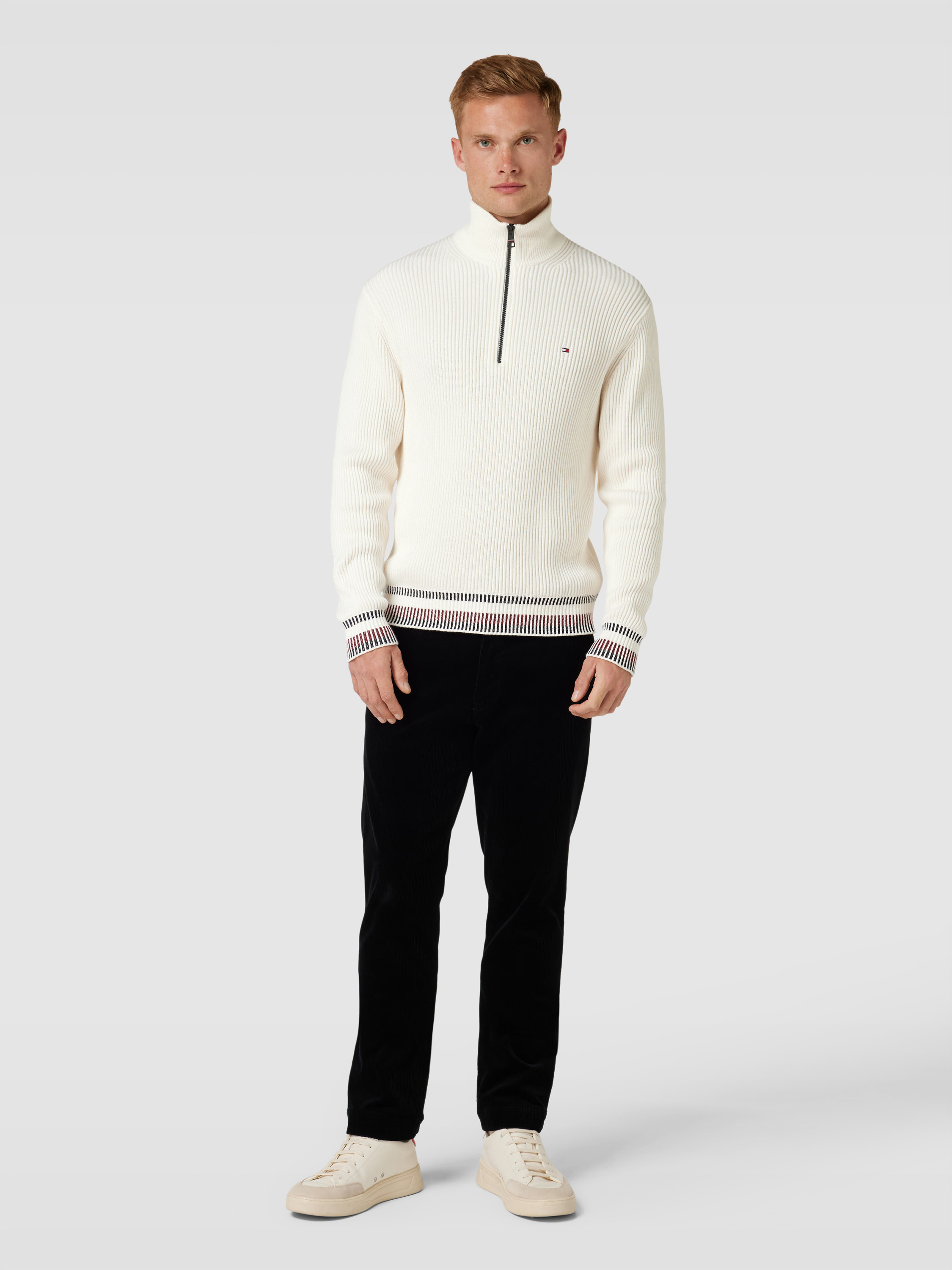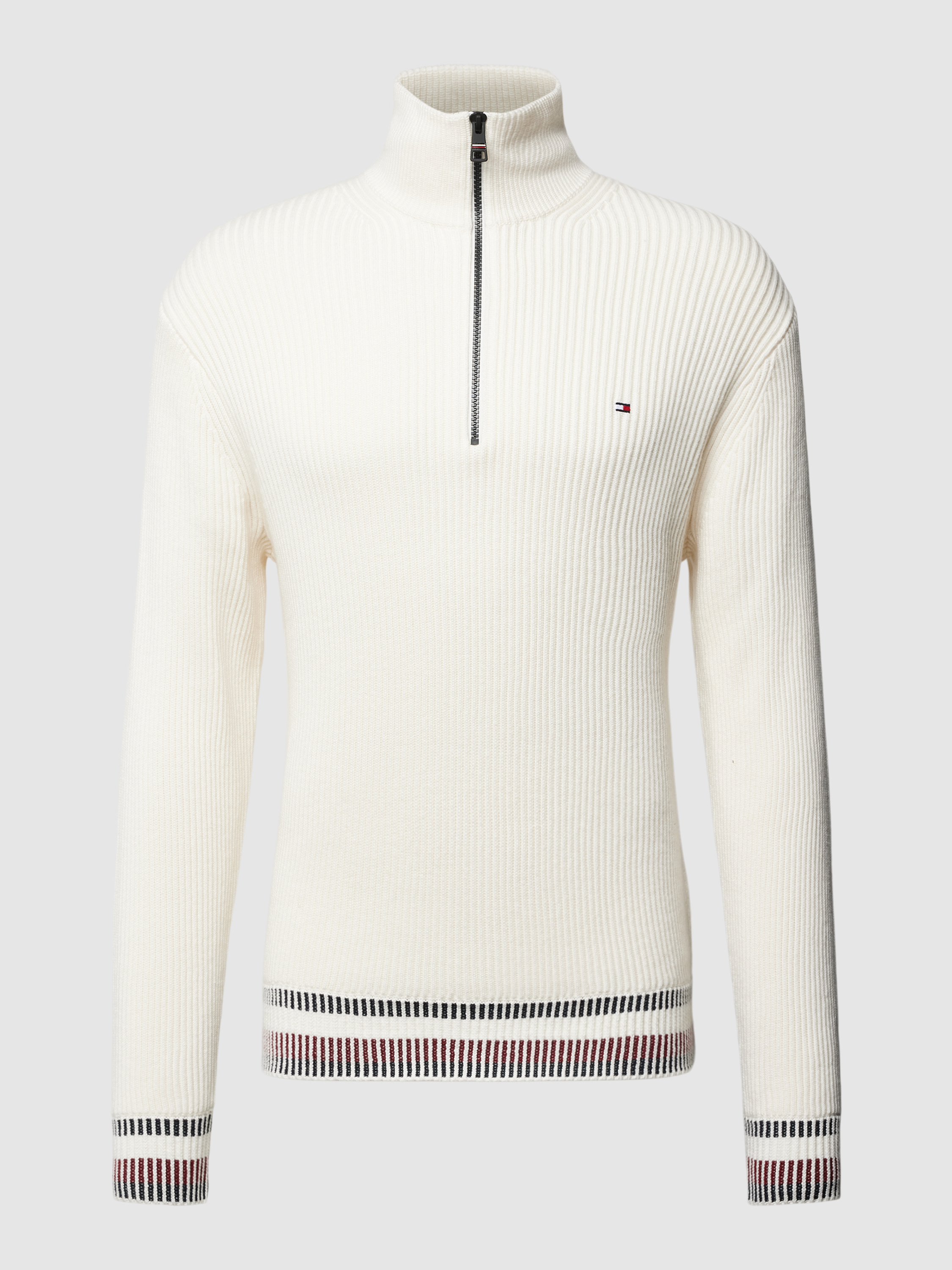 Der Strickpullover von Tommy Hilfiger überzeugt durch seine Verarbeitung aus reiner Baumwolle, die für ein angenehmes Tragegefühl sorgt. Der gerade Schnitt bietet Bewegungsfreiheit, während der Kontrastbesatz dem Design eine besondere Note verleiht. Ein Stehkragen komplettiert das stilvolle Erscheinungsbild.