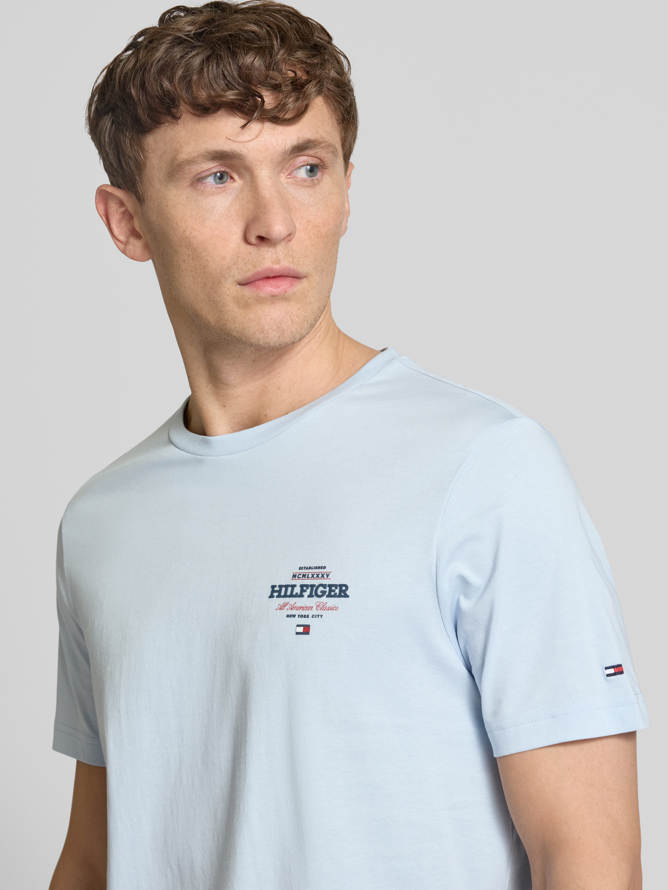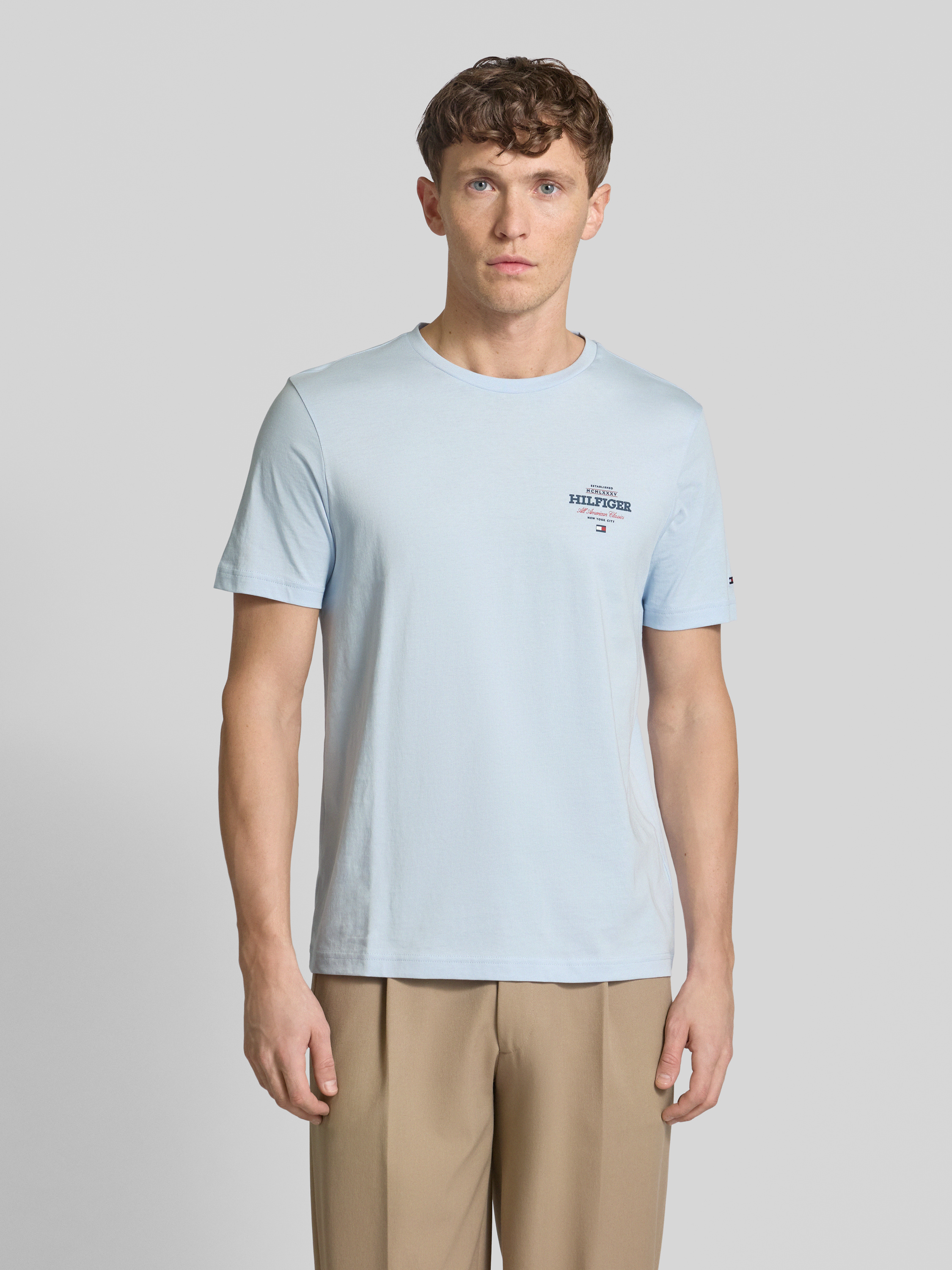 Tommy HilfigerT-Shirt aus reiner Baumwolle Modell 'ALL AMERICAN' in hellblau