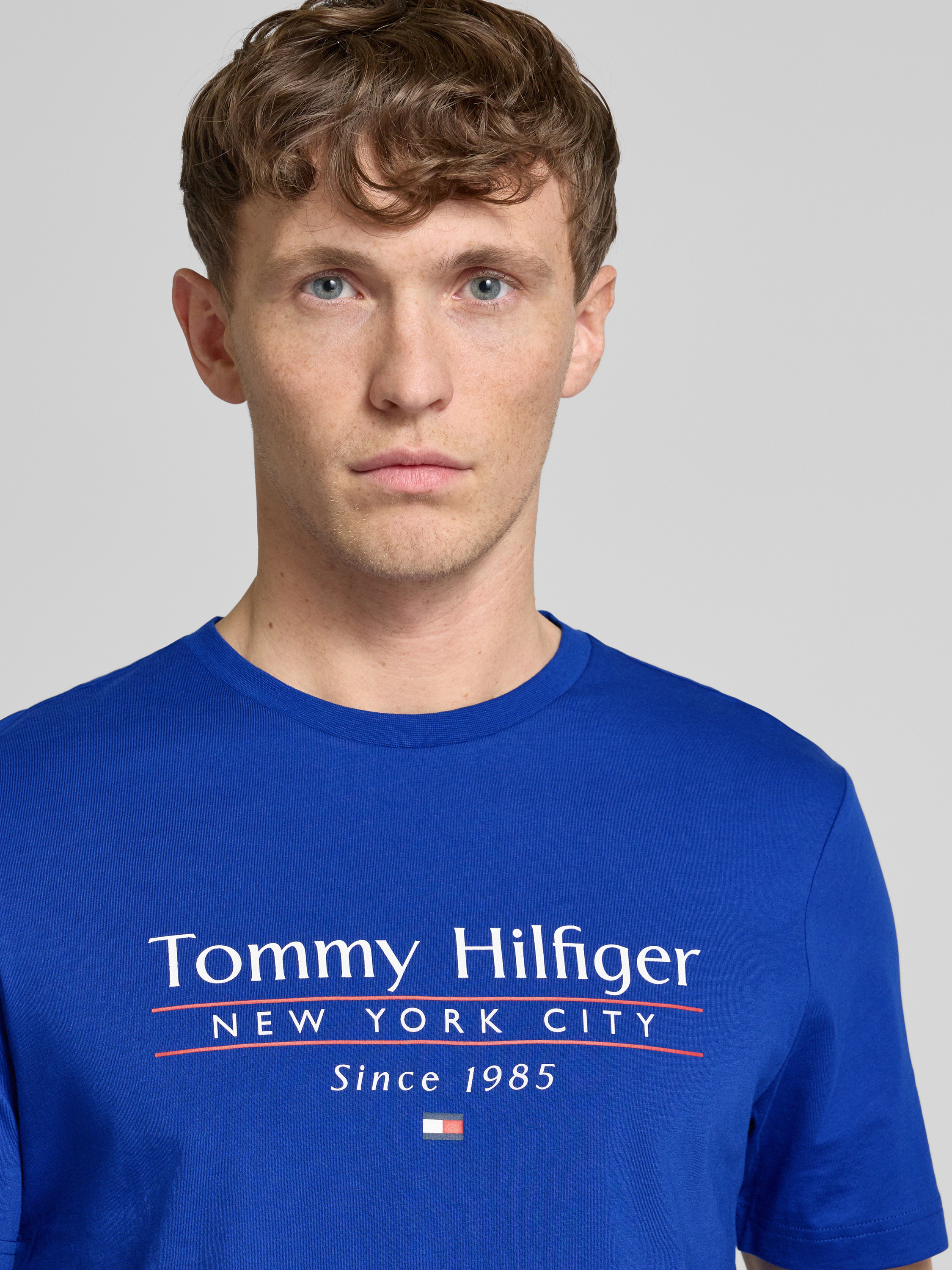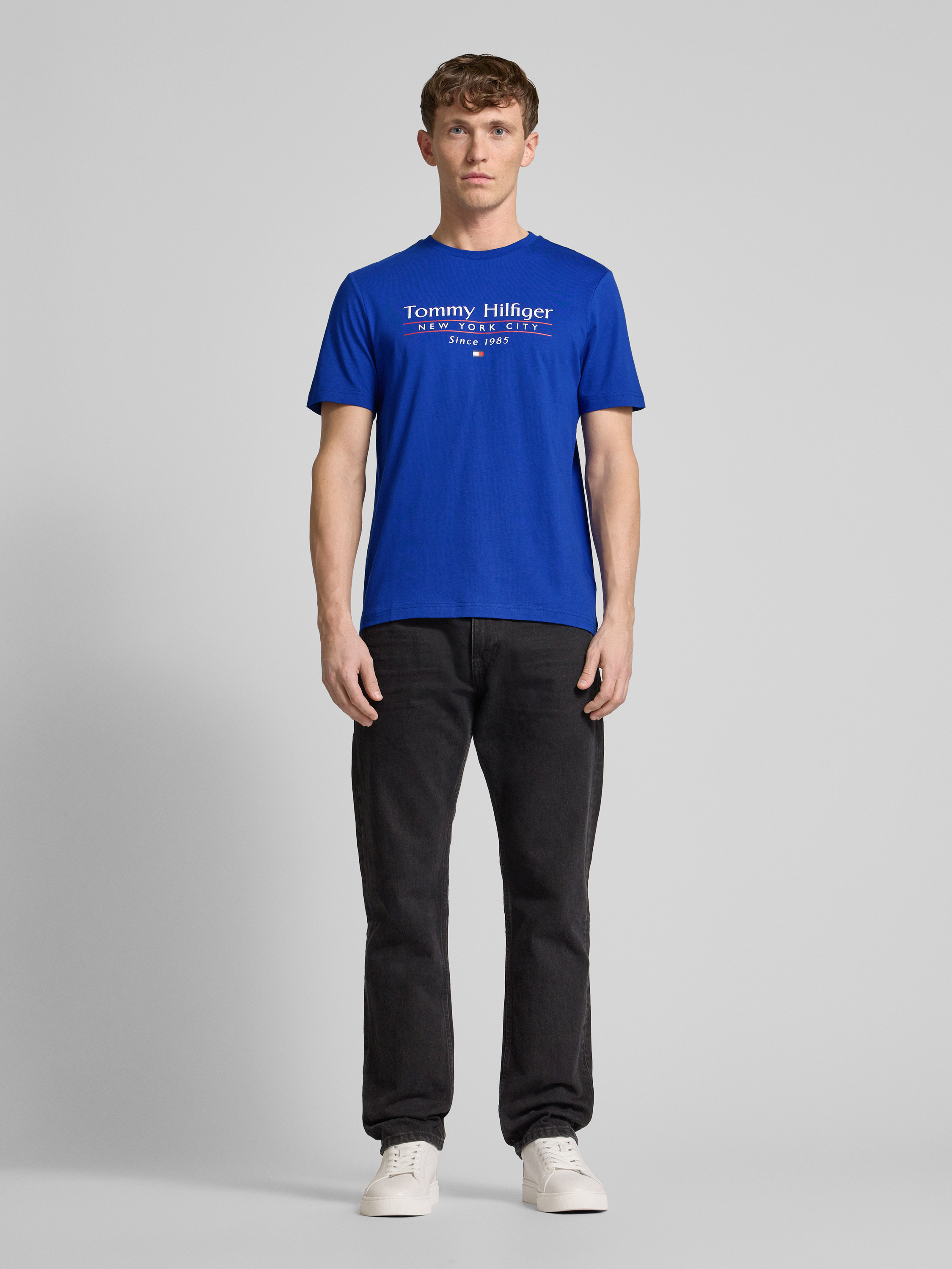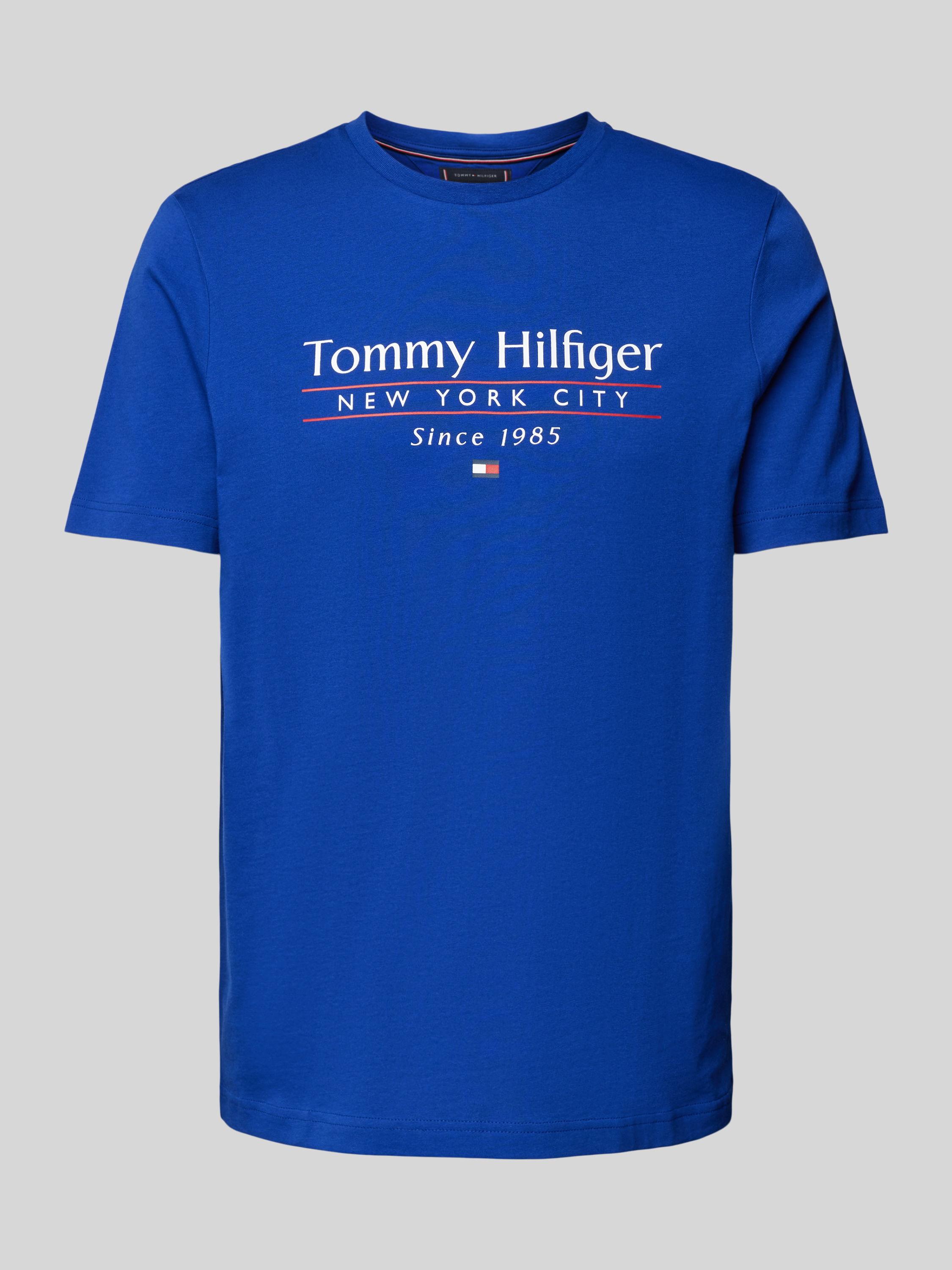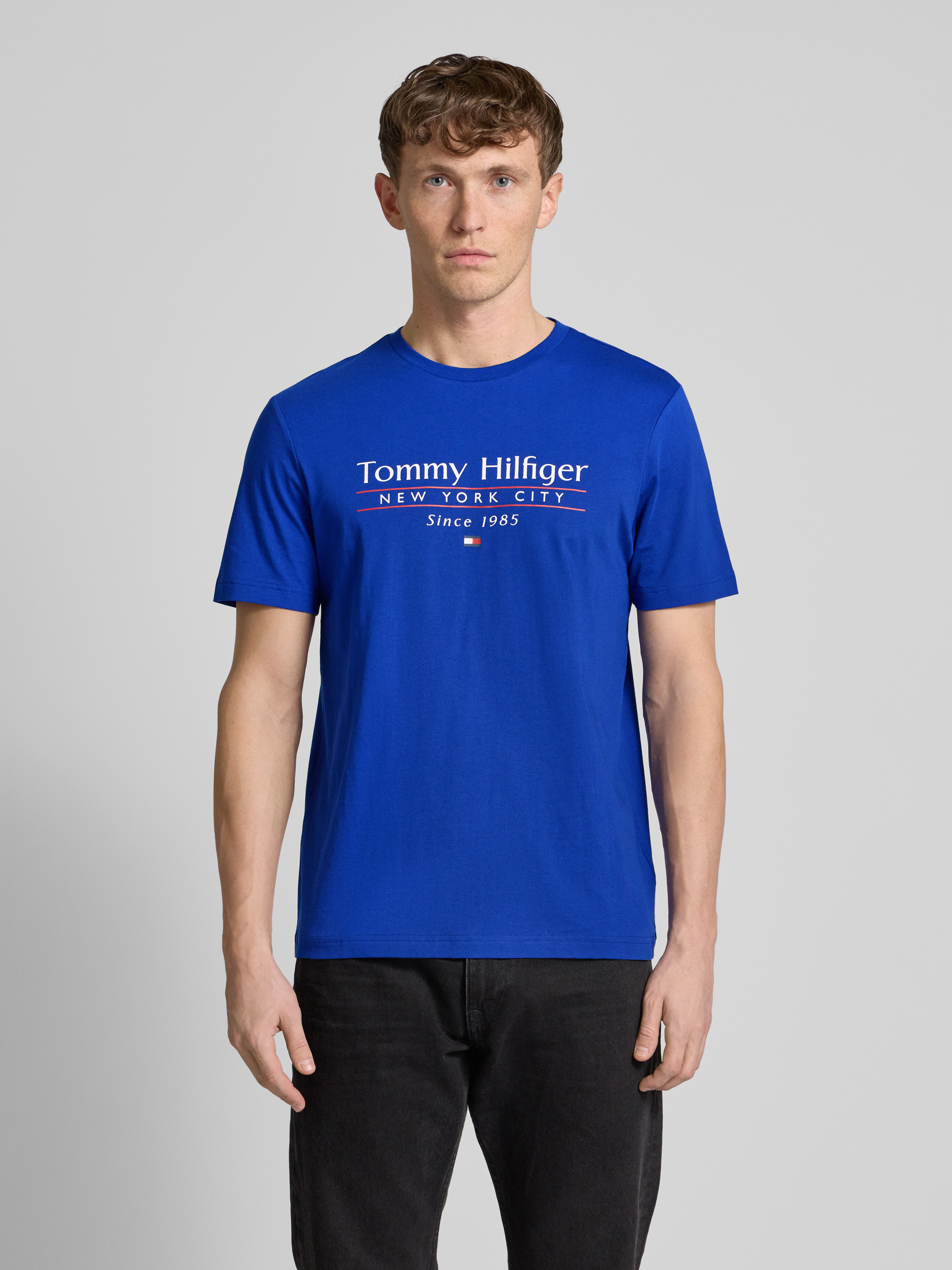 Das T-Shirt von Tommy Hilfiger aus reiner Baumwolle eignet sich ideal für entspannte Tage und bietet mit seinem Regular Fit eine bequeme Passform. Der auffällige Label-Print verleiht jedem Outfit eine besondere Note. Ein gerippter Rundhalsausschnitt rundet das Design stilvoll ab.