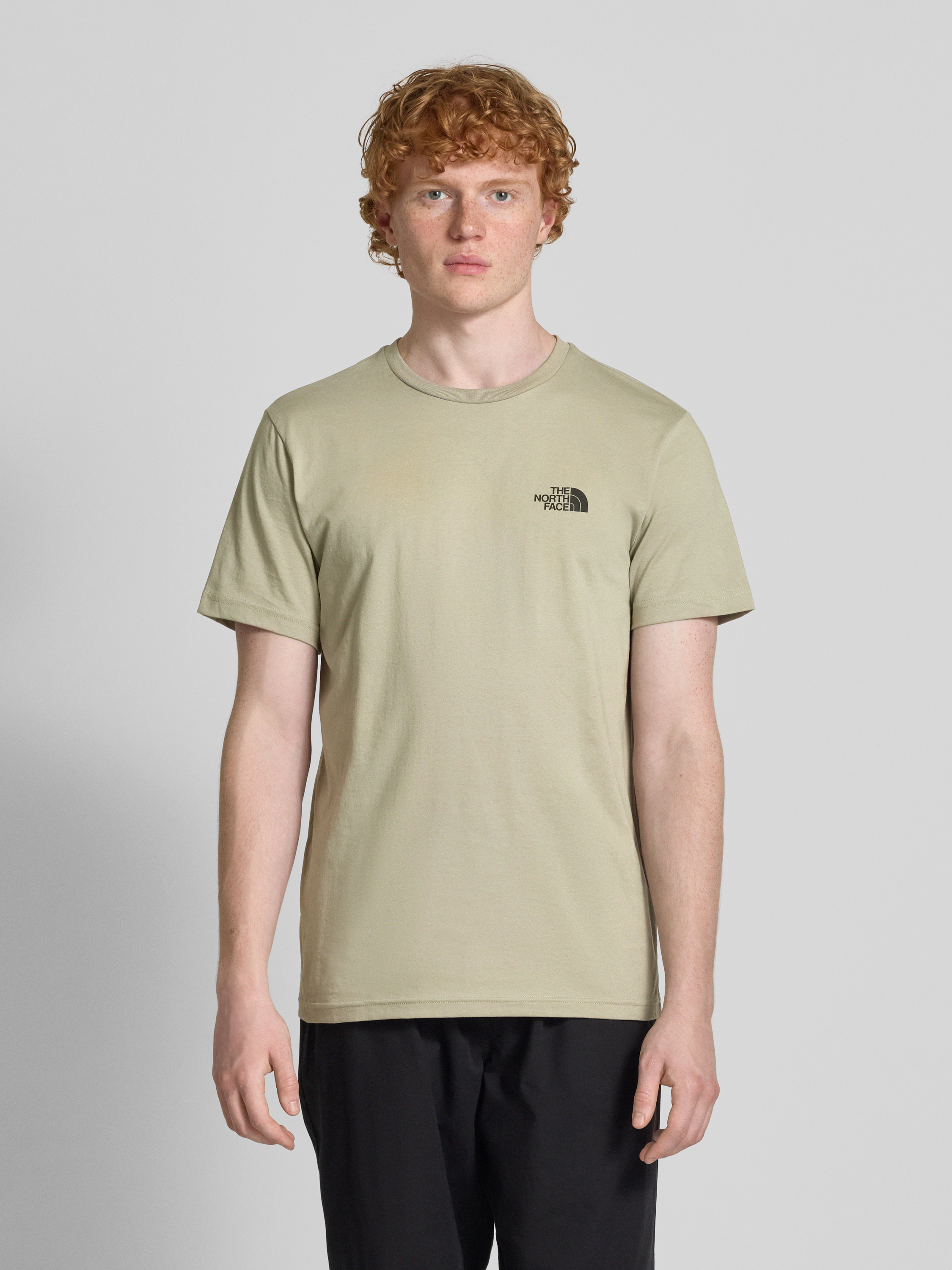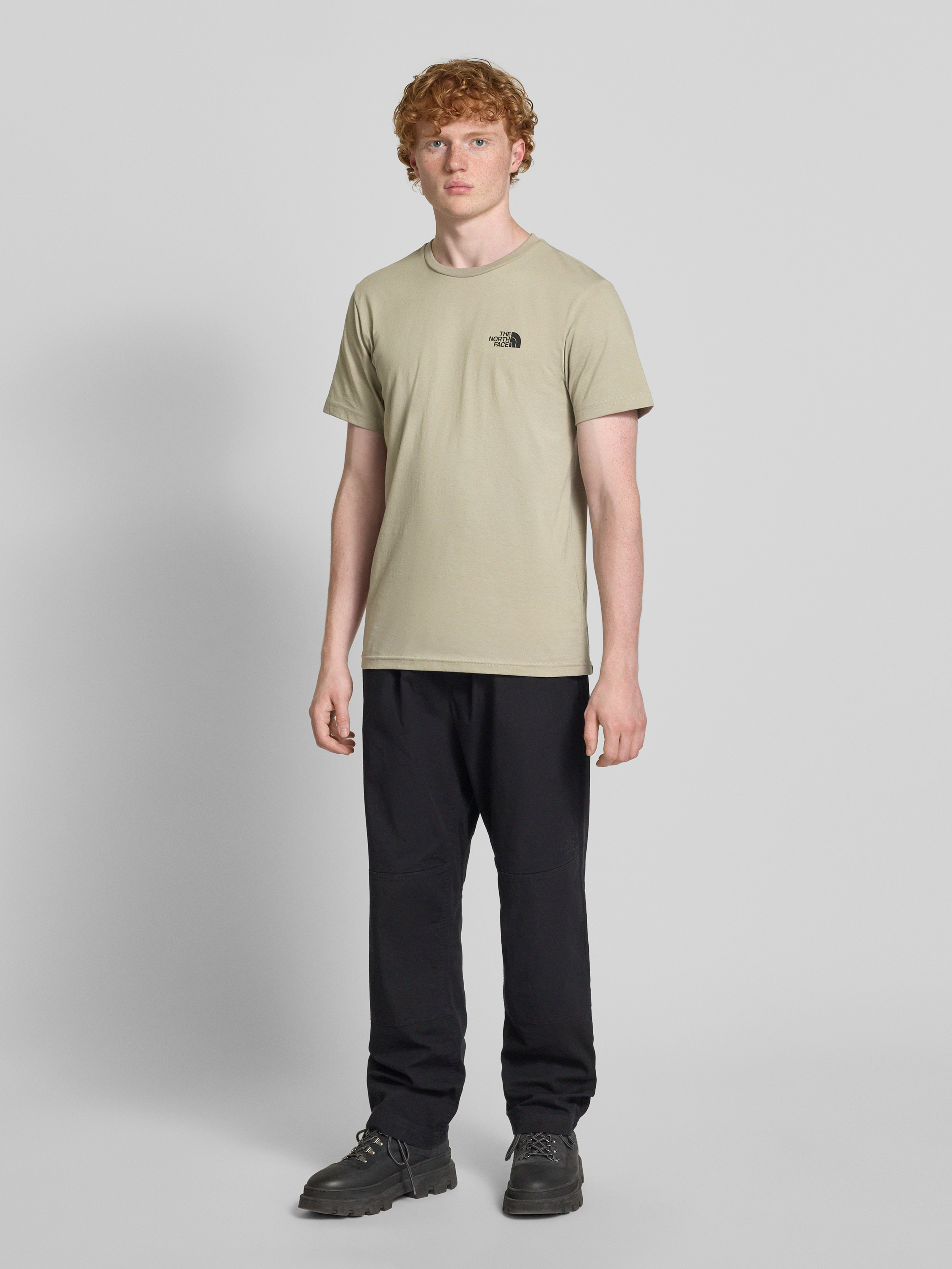 Das T-Shirt von The North Face vereint Komfort und Stil durch seinen angenehmen Baumwoll-Mix und den klassischen Regular Fit. Der gerippte Rundhalsausschnitt sorgt für eine bequeme Passform, während der markante Label-Print dem Look eine moderne Note verleiht. Ideal für den Alltag.