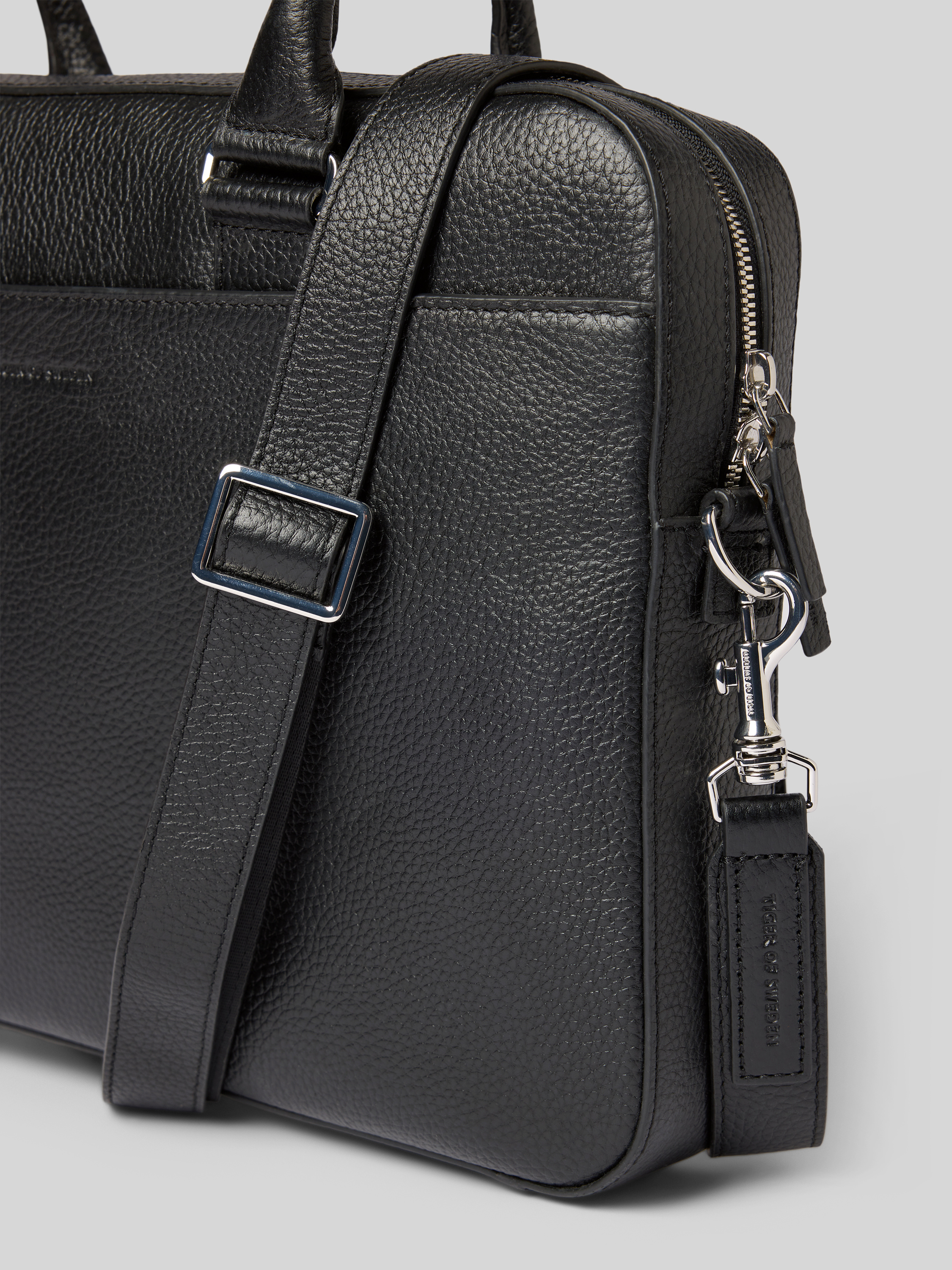 Die Herren Laptoptasche von Tiger Of Sweden im Modell 'Bosun' besteht aus robustem Rindsleder, das im Alltag strapazierfähig bleibt und eine angenehme Haptik vermittelt. Durch Tragehenkel und Schulterriemen lässt sich die Tasche flexibel transportieren, während das außenliegende Steckfach unterwegs schnellen Zugriff ermöglicht. Dezente Label-Prägung unterstreicht den zeitgemäßen Charakter.