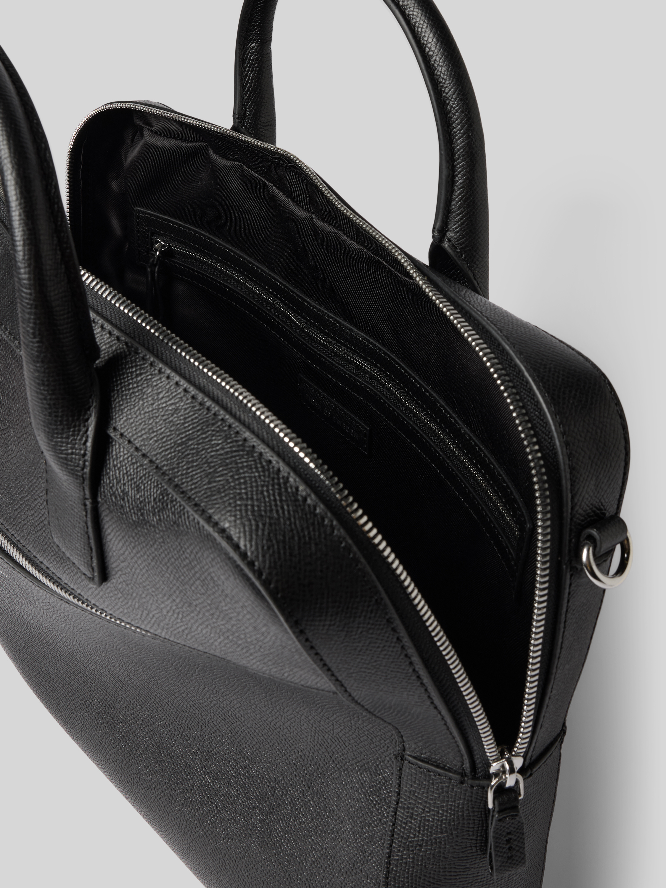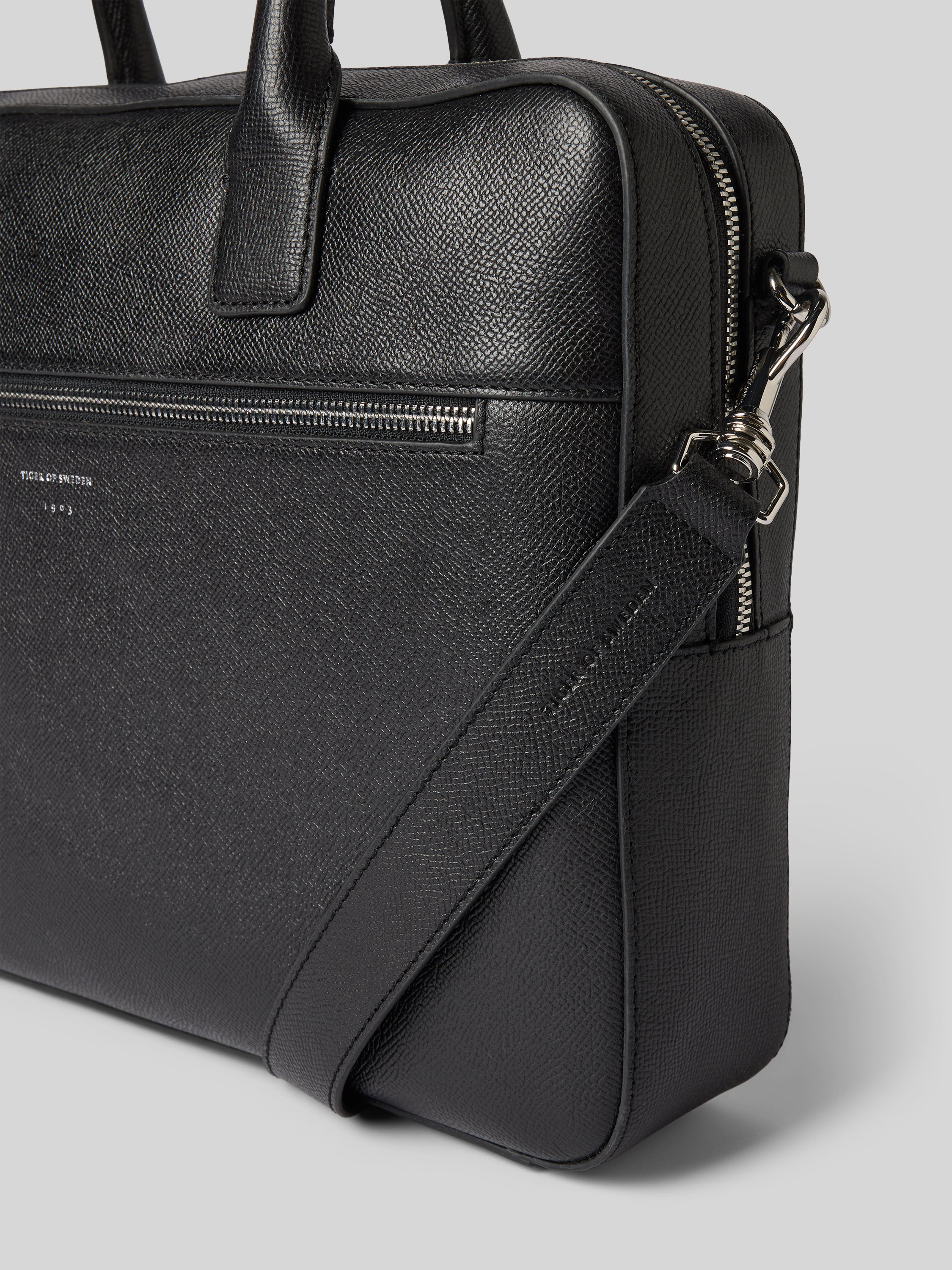 Die Herren Laptoptasche von Tiger Of Sweden, Modell 'BECKHOLMEN', kombiniert robustes Rindsleder mit einer klaren Linienführung. Durchdachte Fächeraufteilung und ein Label-Print schaffen Übersicht und unterstreichen den modernen Charakter. Mit Schulterriemen und Tragehenkel lässt sich der Alltag flexibel gestalten.