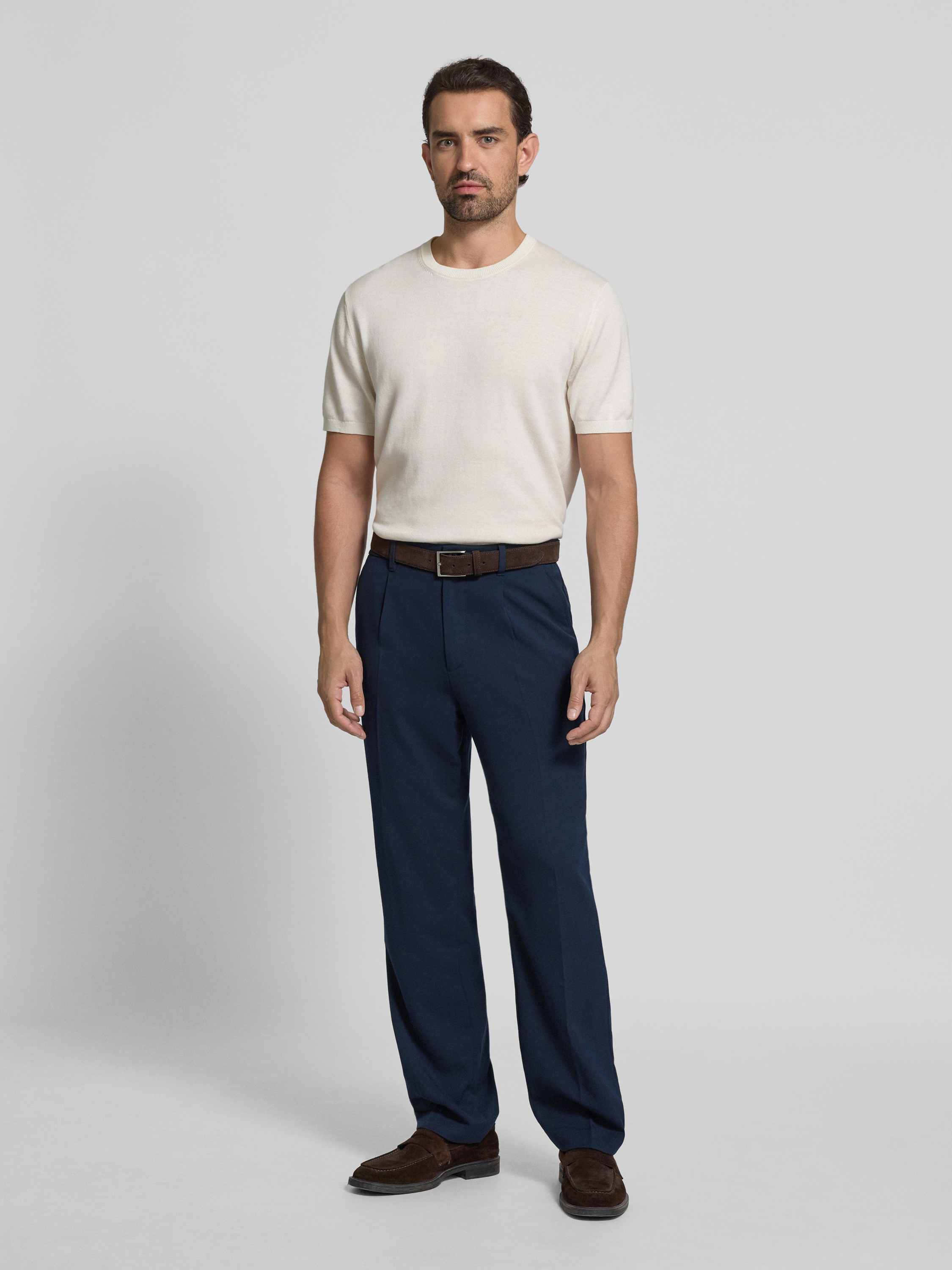 Die Herrenhose Loose Chino von Tom Tailor Denim präsentiert sich mit weiter Silhouette und hoher Bundhöhe, wodurch Bewegungsfreiheit und ein angenehmes Tragegefühl entstehen. Dank der Bundfalten und Melange-Optik wirkt der Look entspannt und modern zugleich. Seitliche Eingrifftaschen runden das funktionale Design ab.