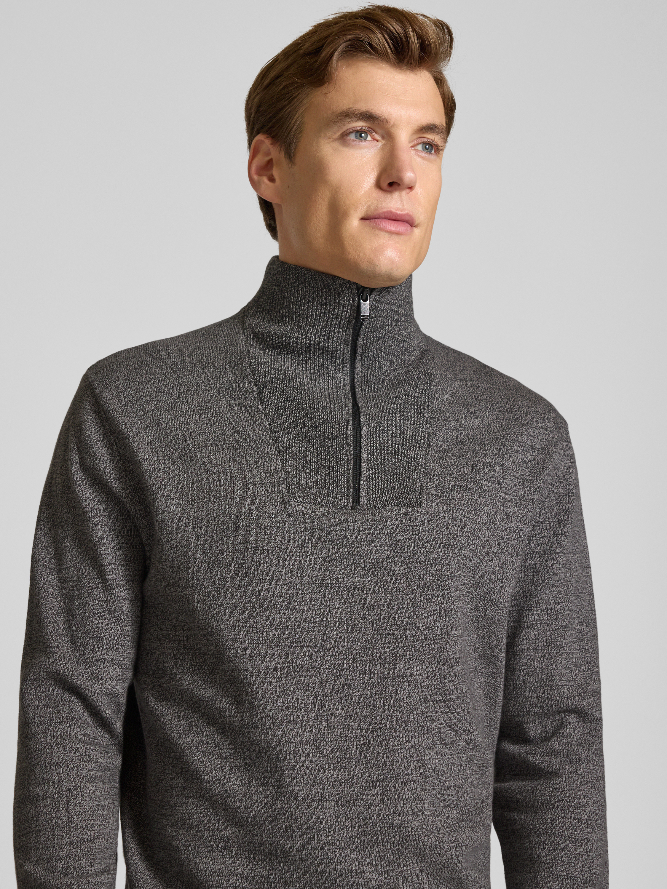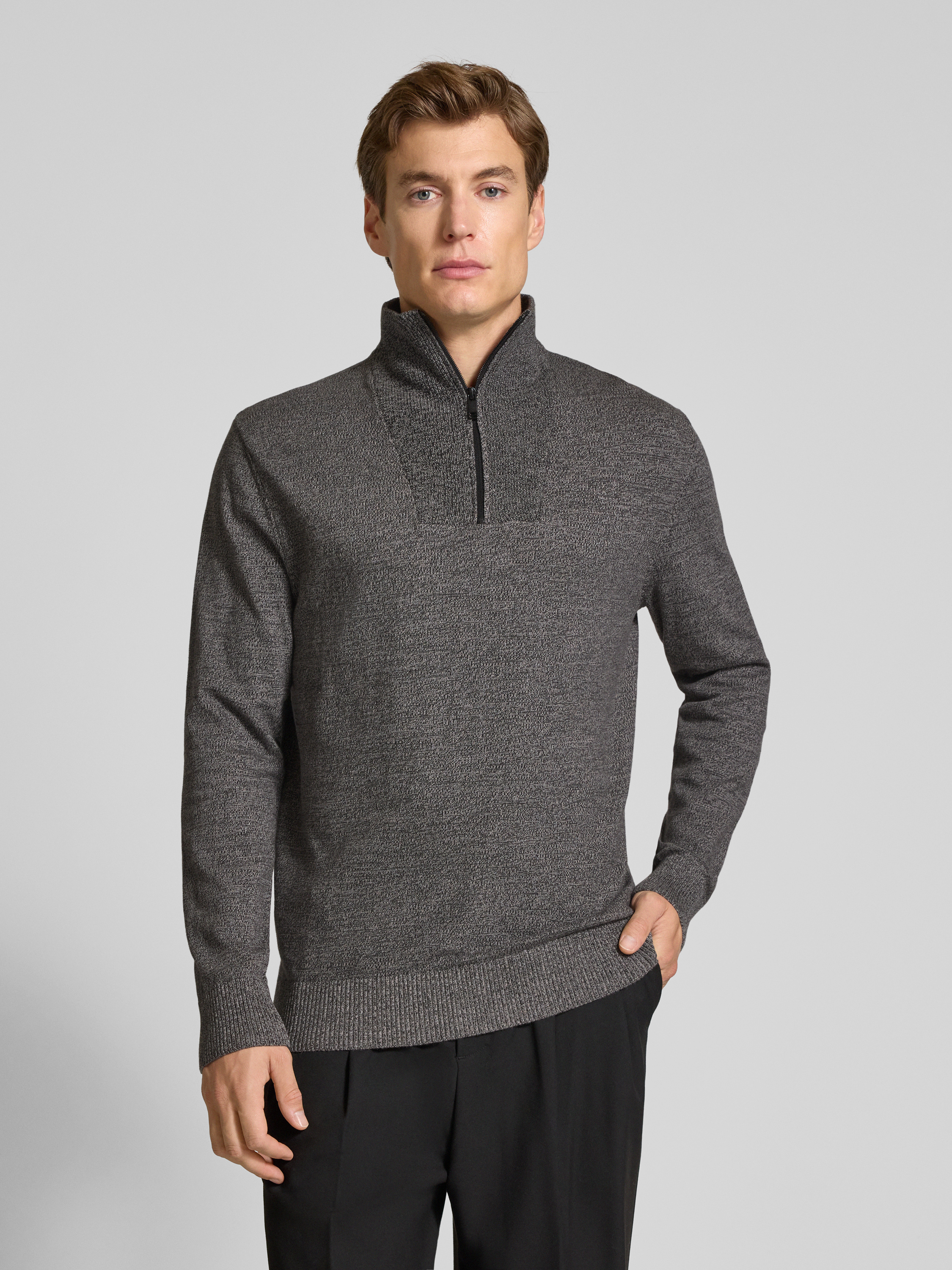 Tom Tailor DenimRegular Fit Troyer aus reiner Baumwolle in dunkelgrau melange