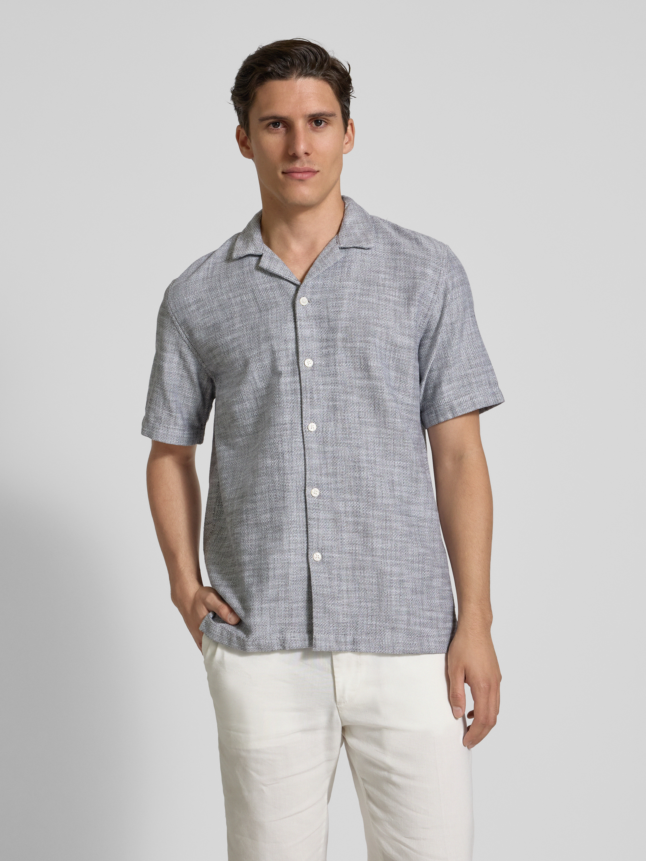 Das Tom Tailor Denim Freizeithemd in Relaxed Fit bietet mit seinem Allover-Muster und dem legeren Reverskragen eine entspannte Wahl für den Alltag. Die reine Baumwolle sorgt für ein angenehmes Tragegefühl, während die kurzen Ärmel und Seitenschlitze Bewegungsfreiheit unterstützen. Ideal für lockere Freizeitaktivitäten.