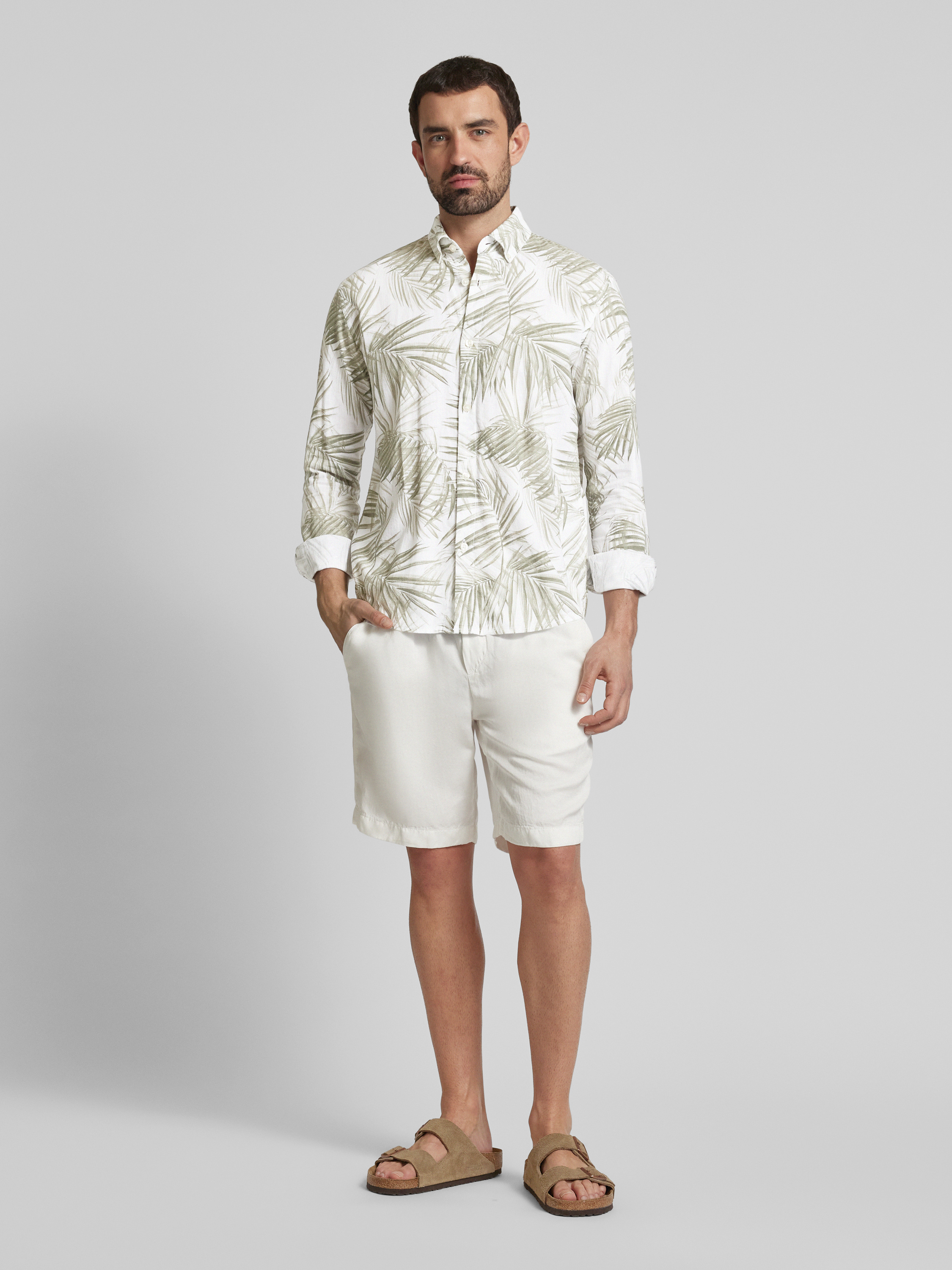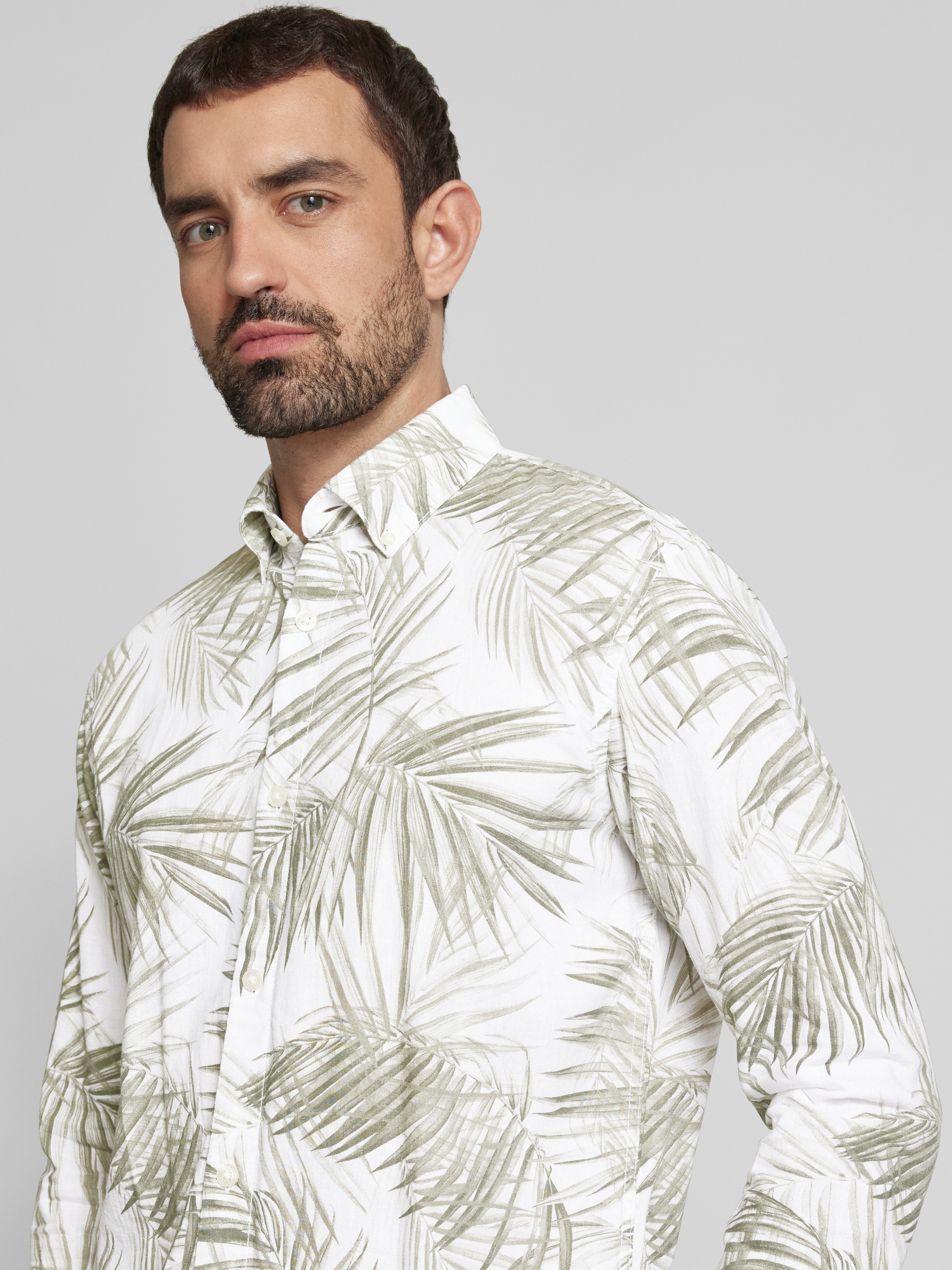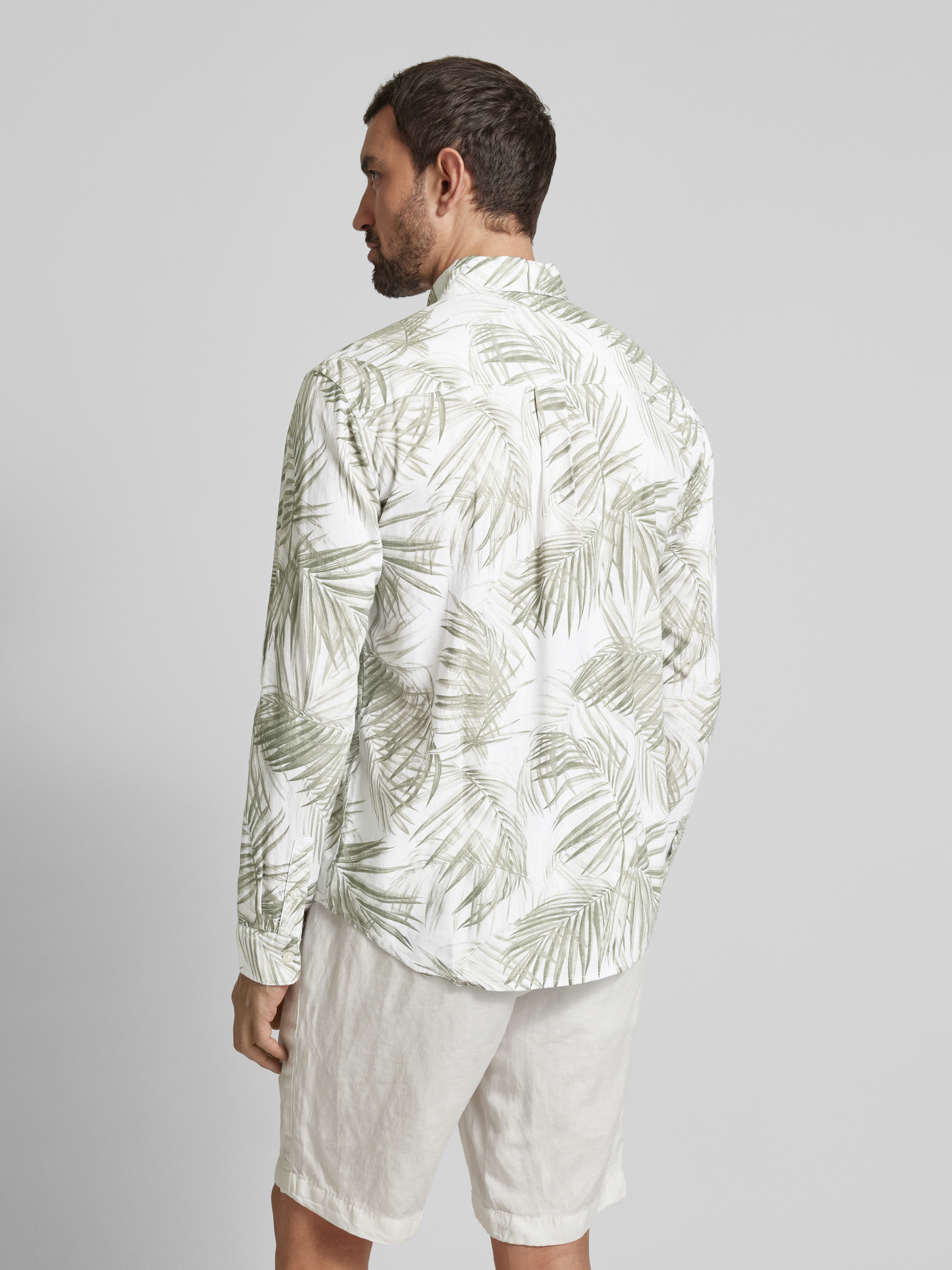 Das Tom Tailor Denim Freizeithemd im Relaxed Fit verbindet die luftige Leichtigkeit eines Viskose-Leinen-Mixes mit einem botanischen Allover-Muster, das Frische ausstrahlt. Der Button-Down-Kragen verleiht eine subtile Struktur, während die Rückenpasse mit Cacharel-Falte Bewegungsfreiheit ermöglicht. Ideal für entspannte Freizeitanlässe.