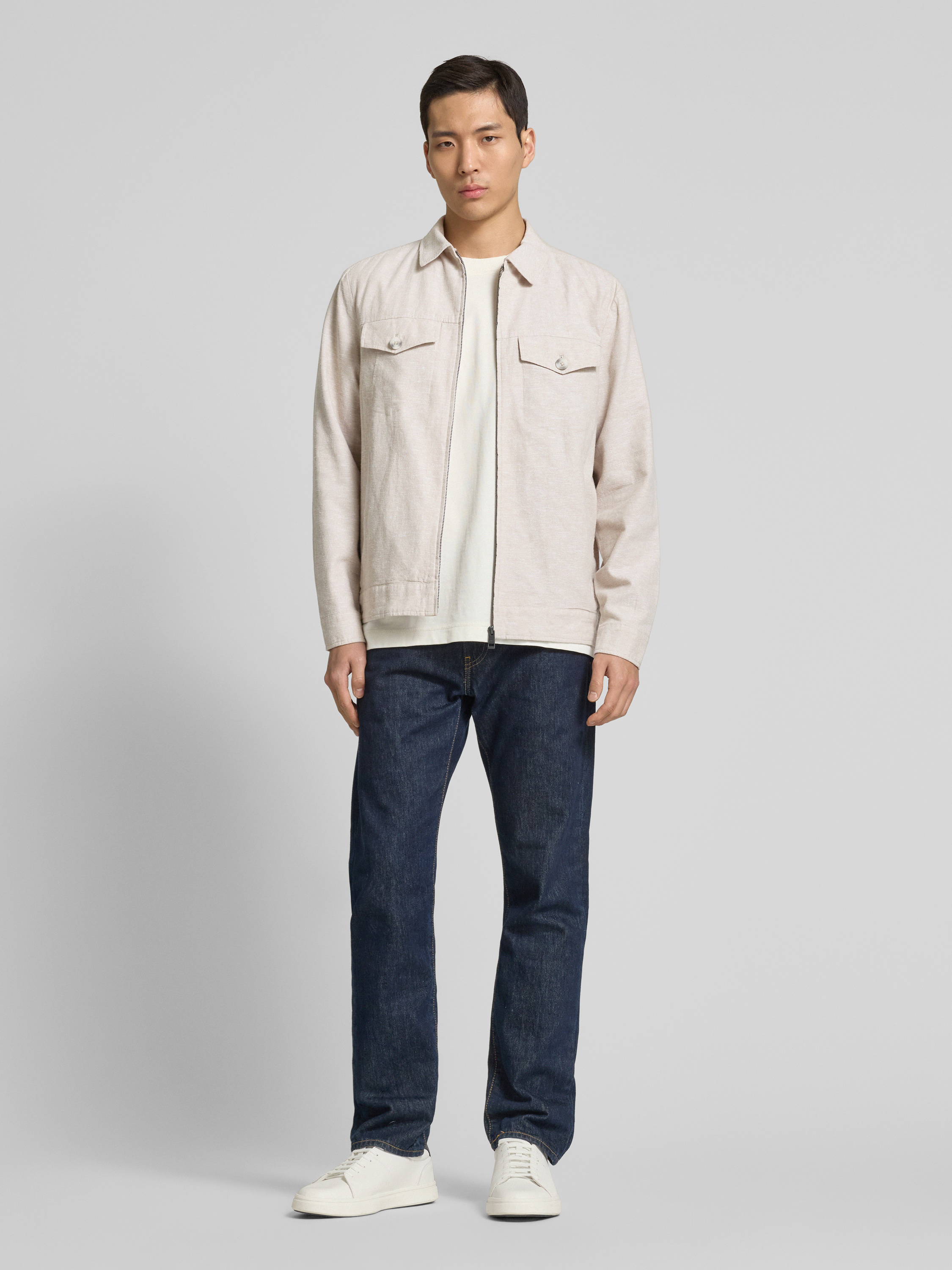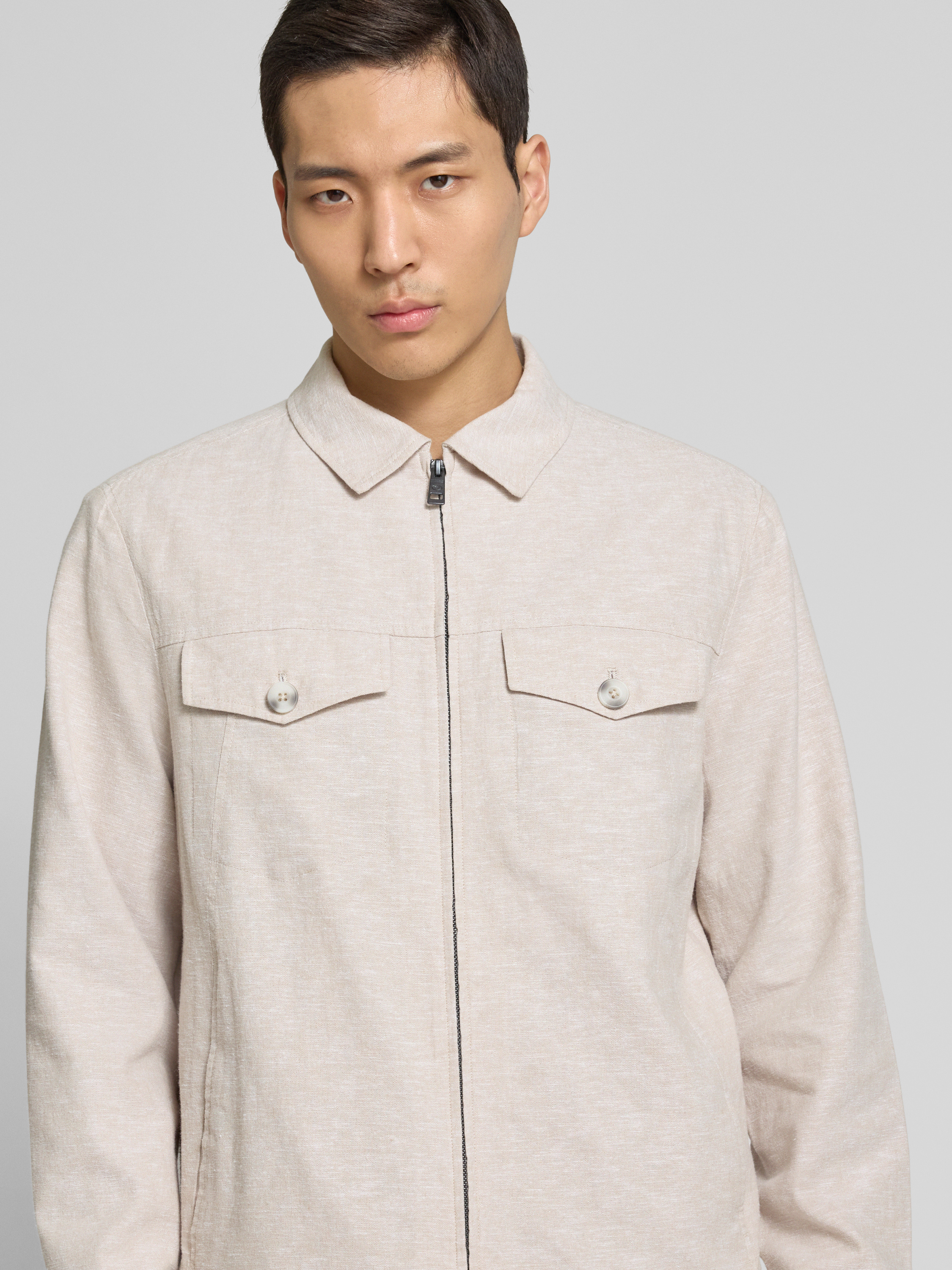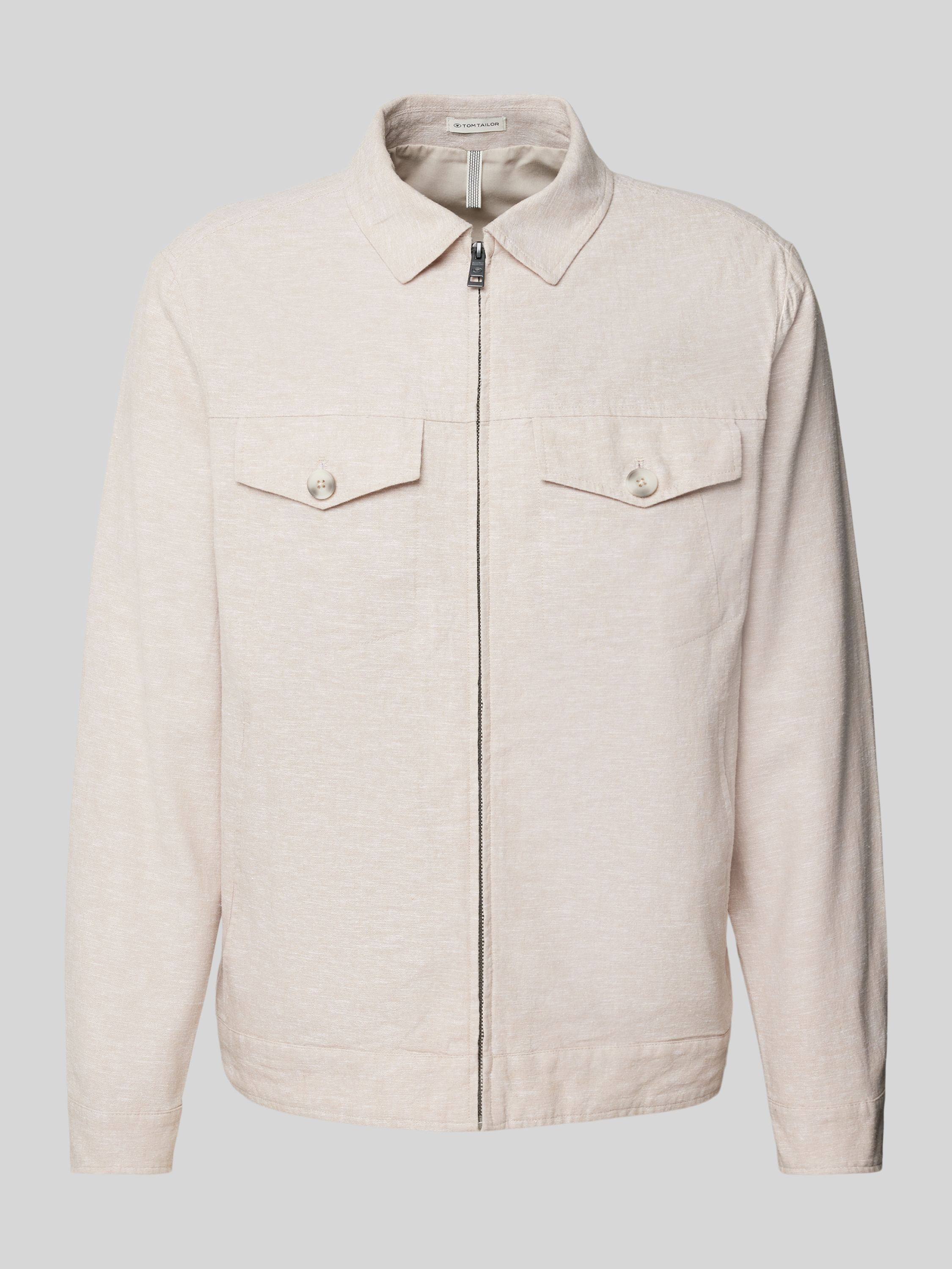 Tom TailorRegular Fit Hemdjacke aus Leinen-Baumwoll-Mix in beige