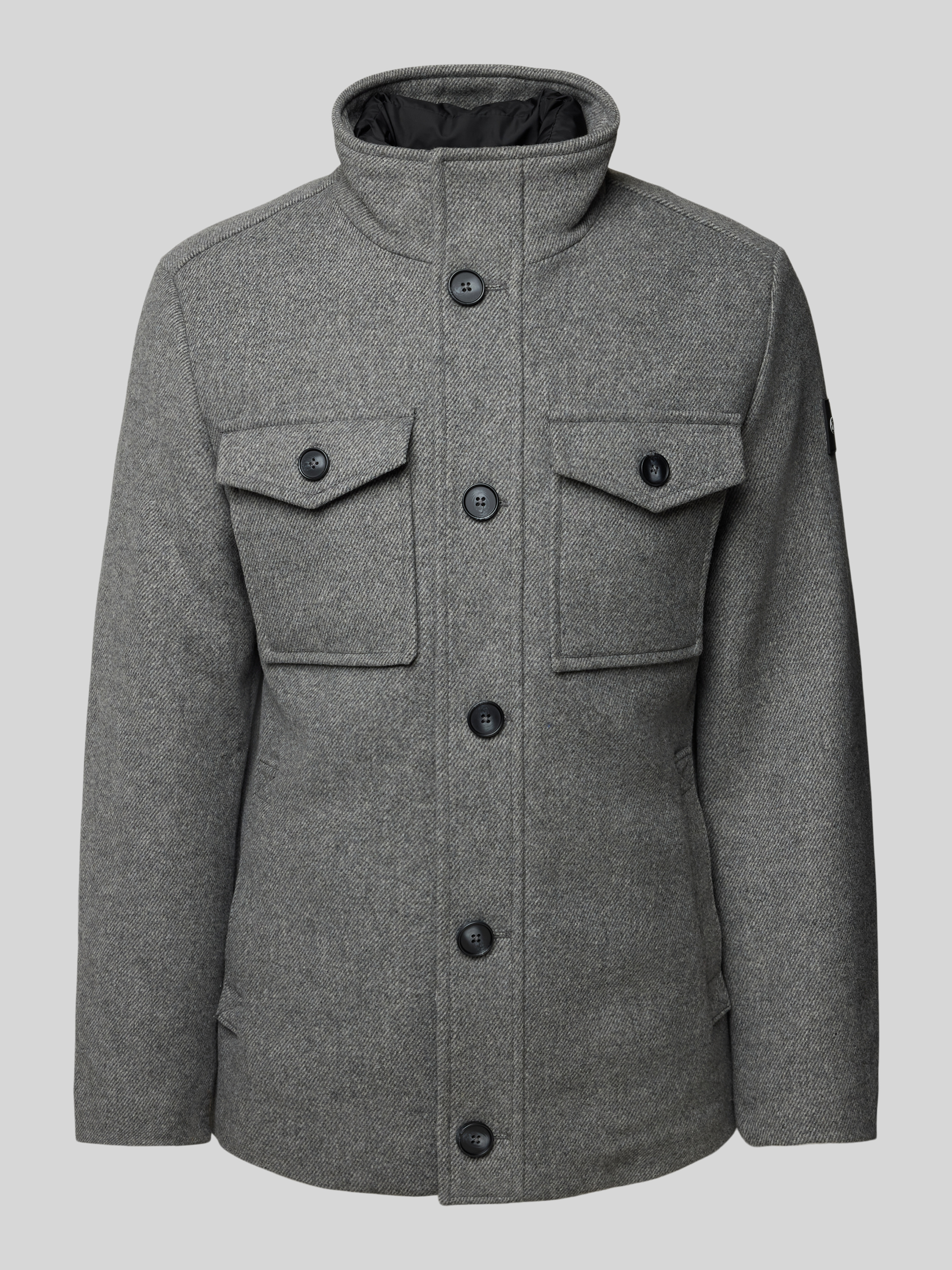 Die Regular Fit Jacke von Tom Tailor kombiniert stilvolle Melange-Optik mit einem gemütlichen Stehkragen, der sich angenehm tragen lässt. Der Einsatz von Wolle verleiht dem Kleidungsstück eine exzellente Wärmeregulierung, während die durchdachte Passform Bewegungsfreiheit und Komfort gewährleistet. Mit praktischen Taschen ausgestattet, eignet sie sich ideal für verschiedene Anlässe.