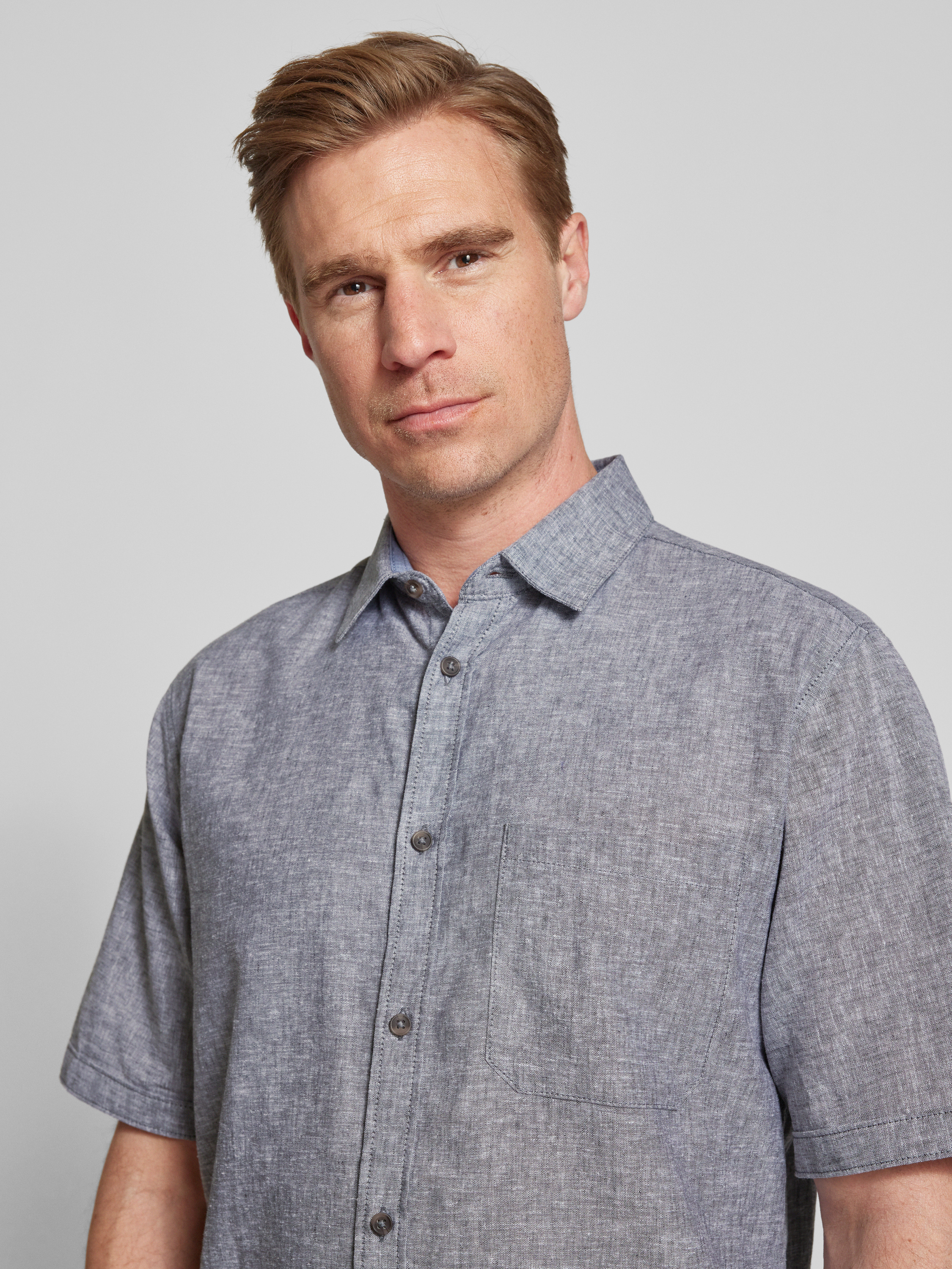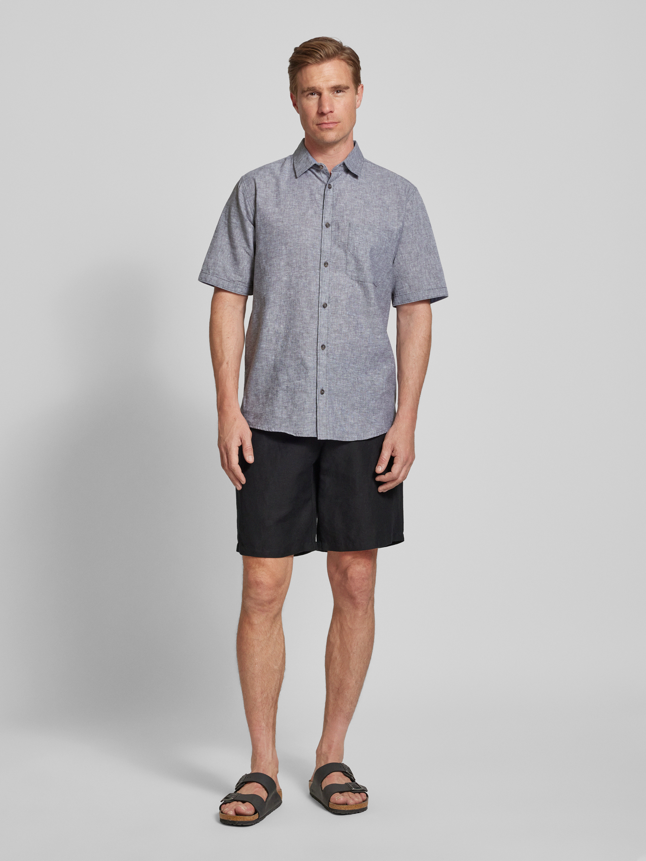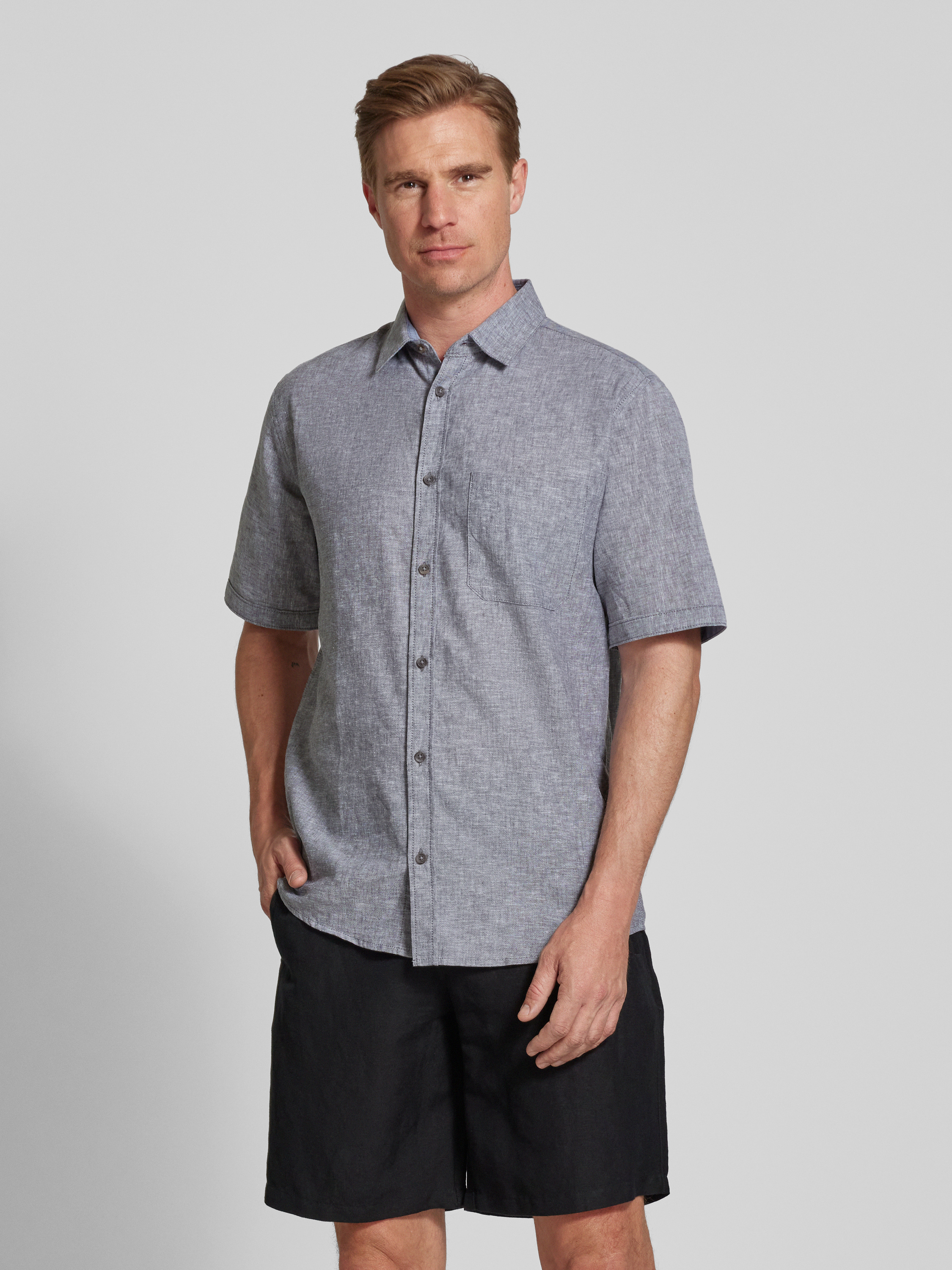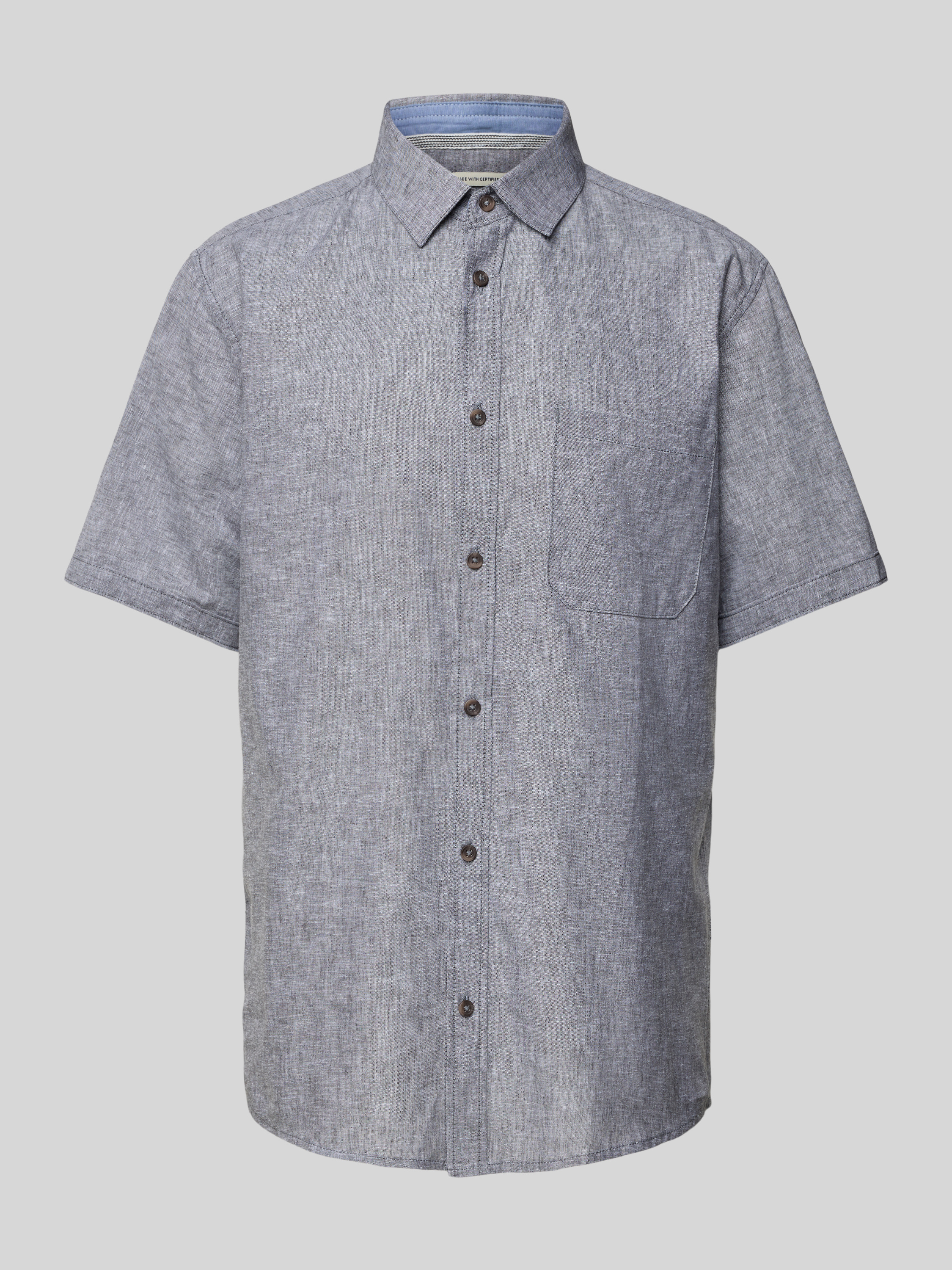 Tom TailorRegular Fit Leinenhemd mit kurzem Arm in hellgrau