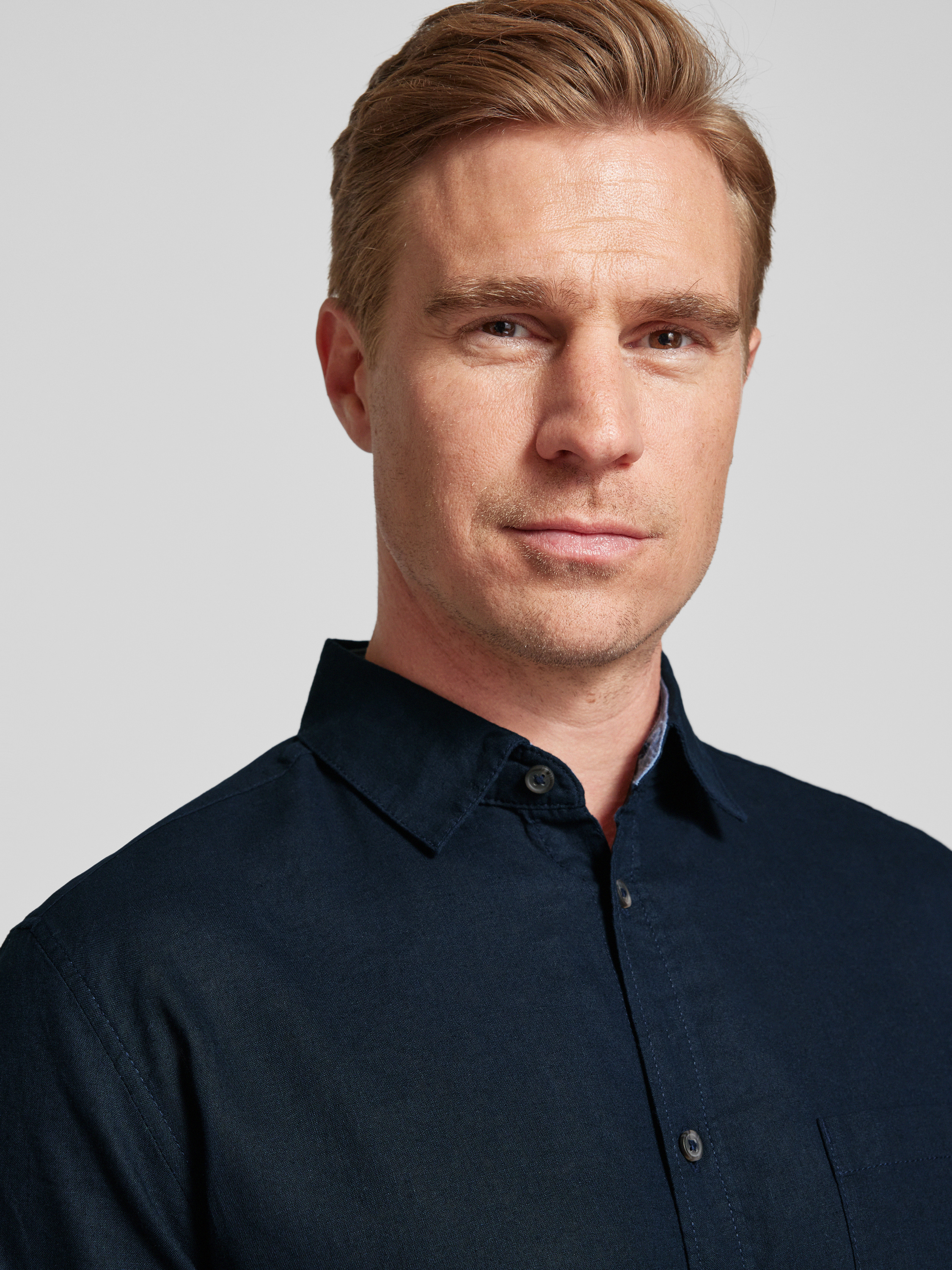 Tom TailorRegular Fit Leinenhemd mit kurzem Arm in marine