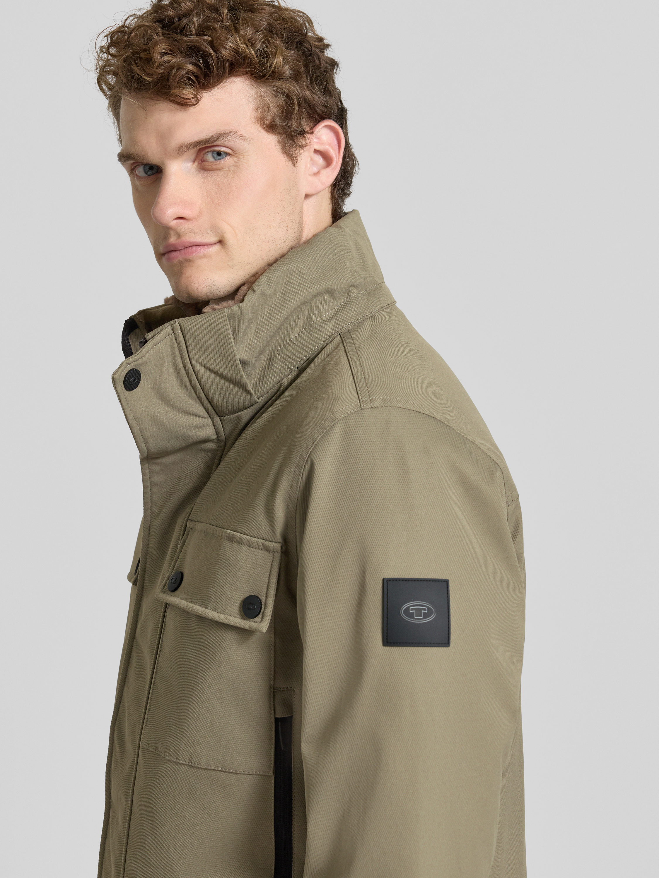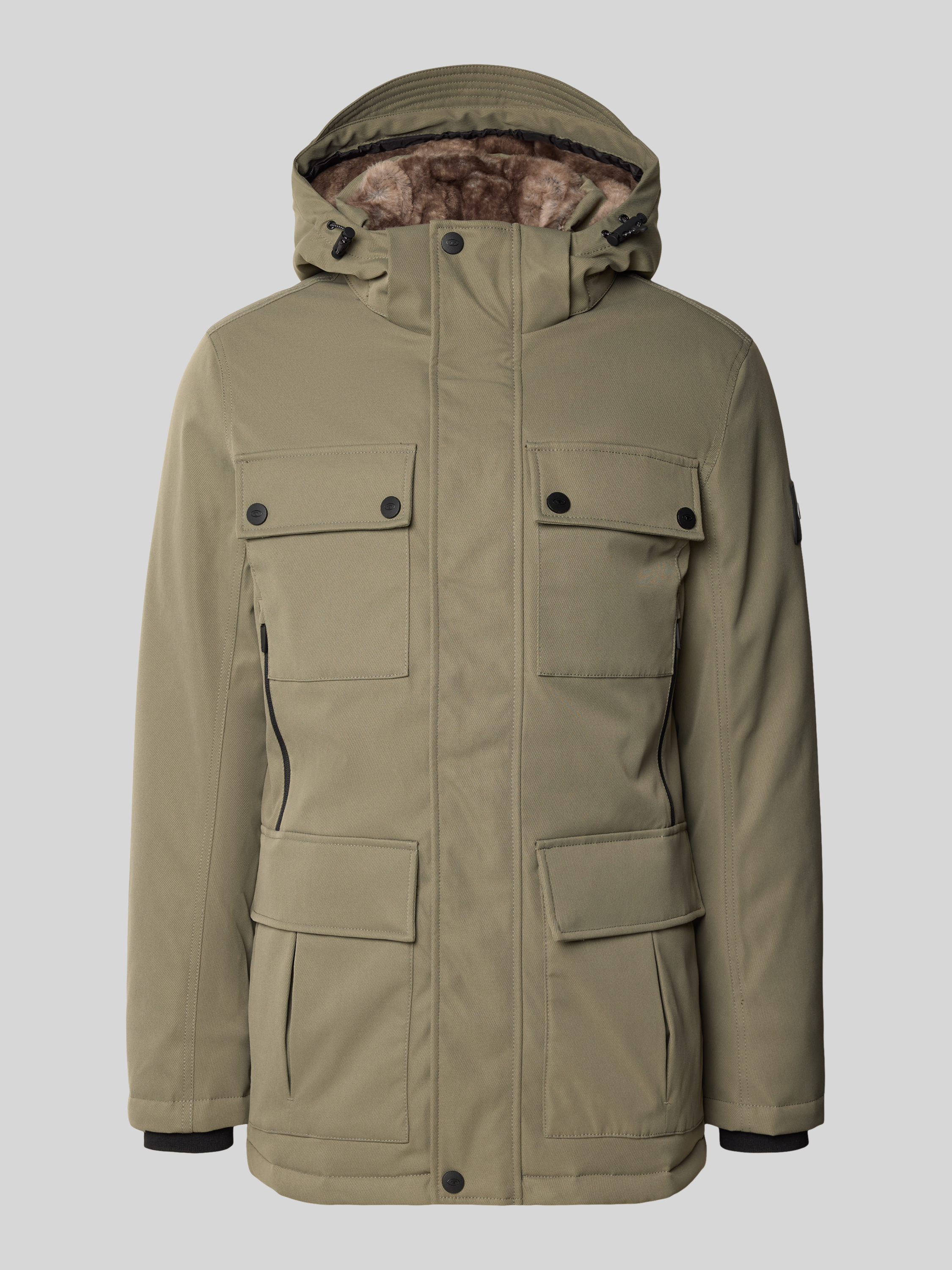 Der Herren Parka von Tom Tailor präsentiert sich in unifarbener Optik und ist im Regular-Fit gehalten, wodurch er angenehm locker sitzt und vielseitig kombiniert werden kann. Die abnehmbare Kapuze mit Tunnelzug und das Webpelz-Kapuzenfutter sorgen an kühlen Tagen für zusätzlichen Komfort. Praktische Pattentaschen sowie eine Napoleontasche runden den funktionalen Charakter ab, während Storm Cuffs am Ärmelabschluss vor Wind schützen.