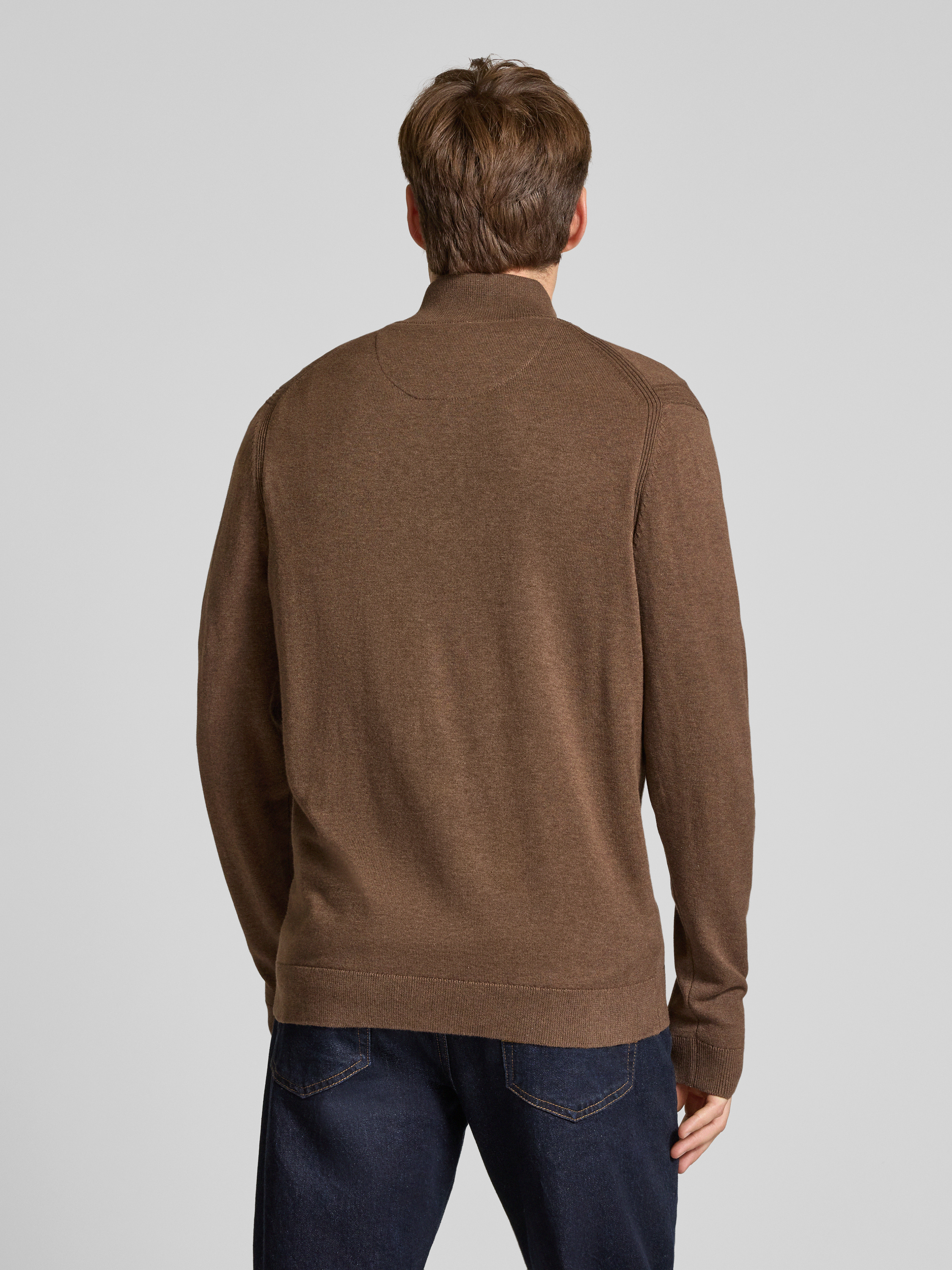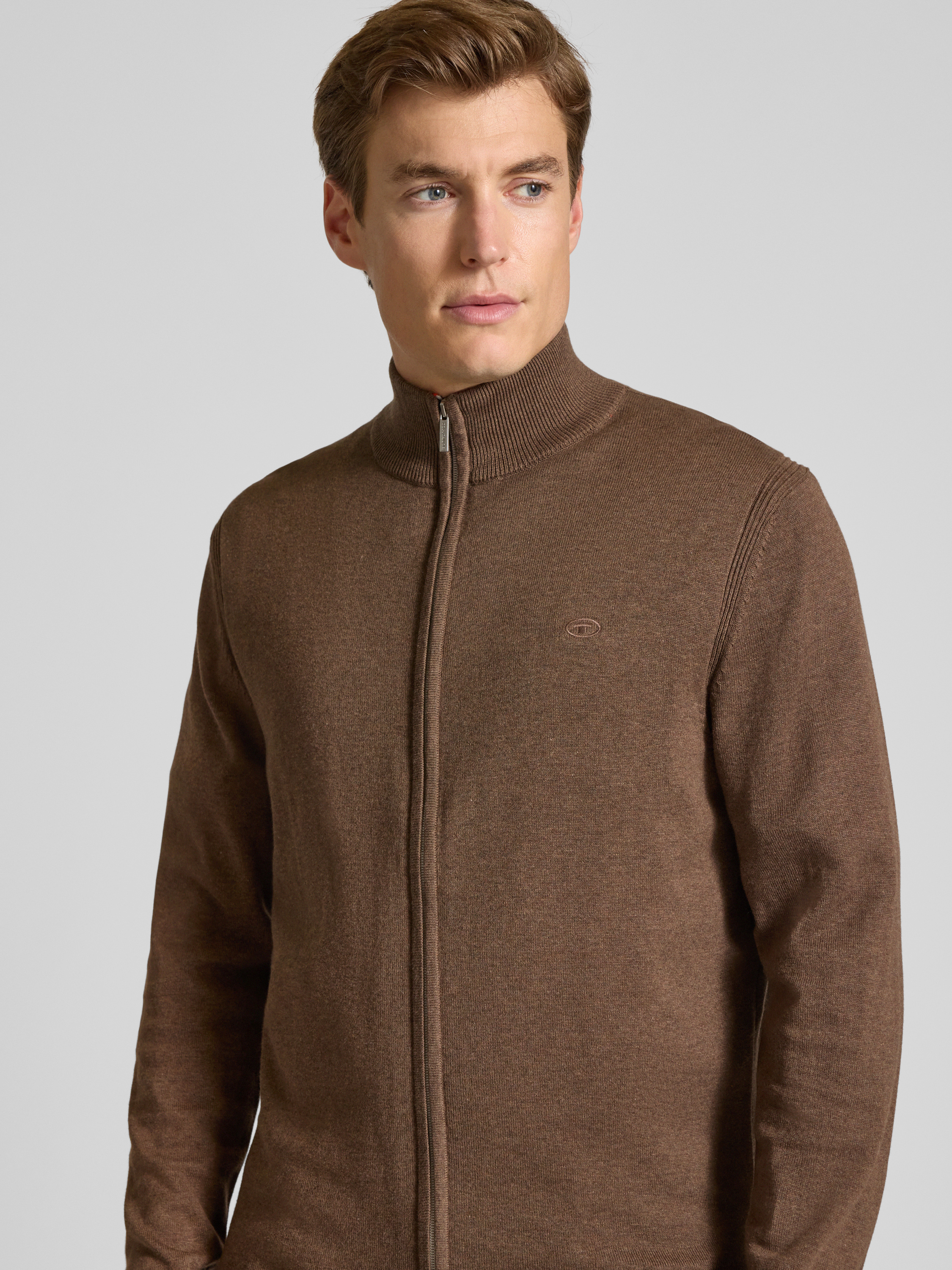 Tom TailorRegular Fit Strickjacke aus reiner Baumwolle in mittelbraun mel