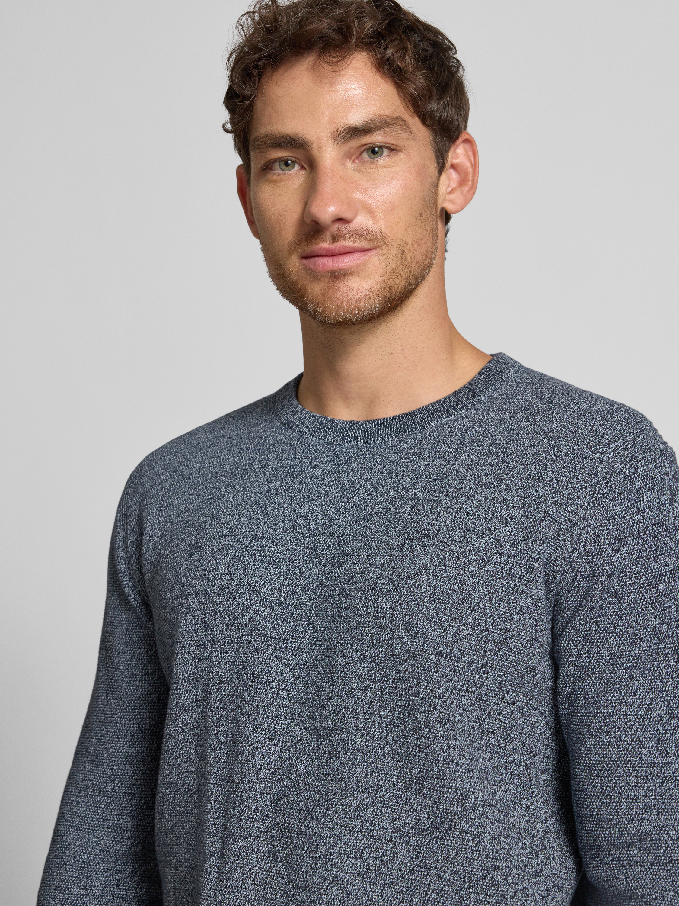 Der Herrenpullover von Tom Tailor mit Melange-Optik vereint eine klassische Regular-Fit-Silhouette mit einem angenehm weichen Griff. Die reine Baumwolle fühlt sich auf der Haut natürlich an und sorgt für ein ausgewogenes Tragegefühl, das auch im Alltag vielseitig einsetzbar ist. Dezente Details wie der Crew Neck und das Label Patch runden das Design ab.