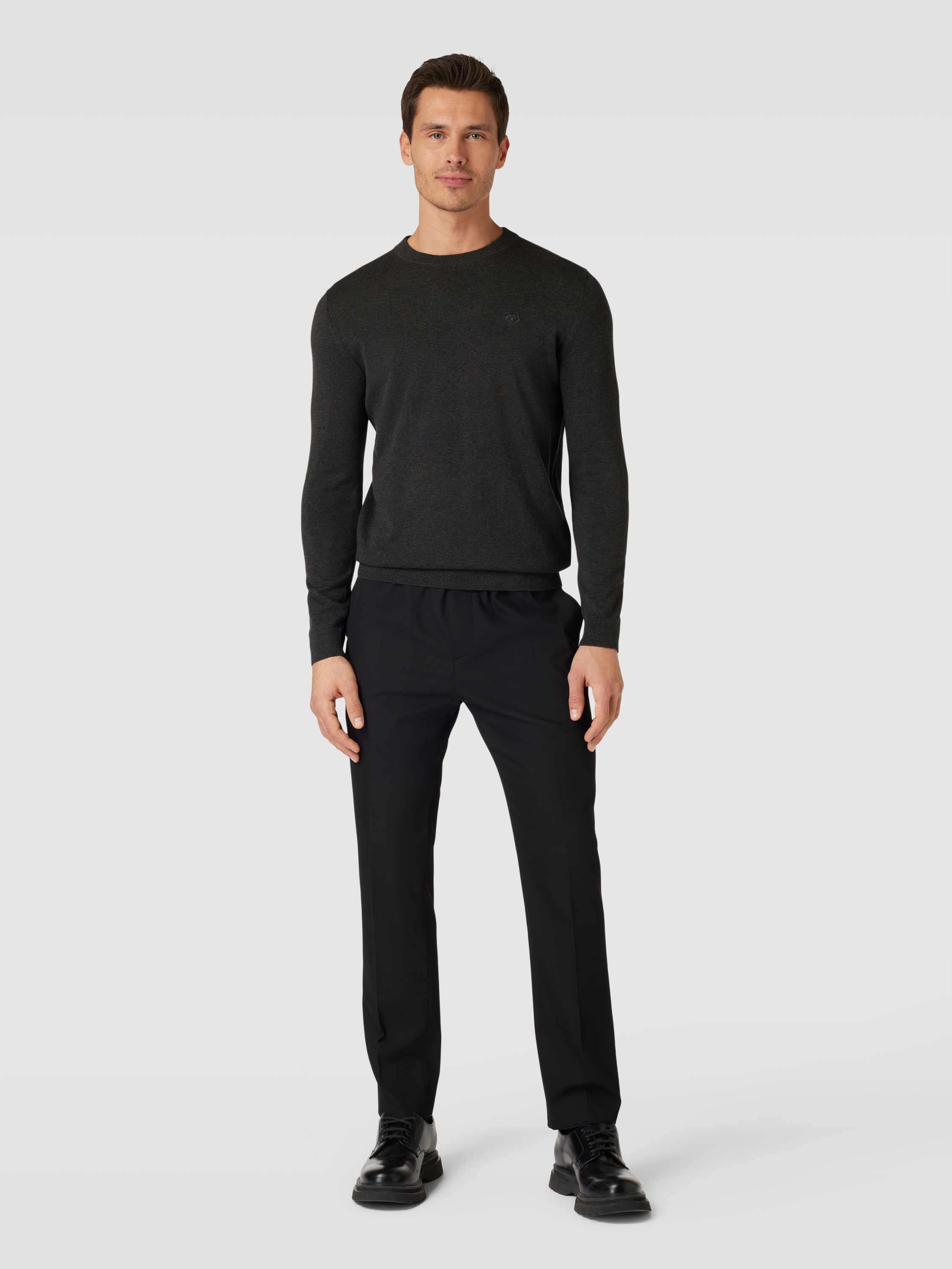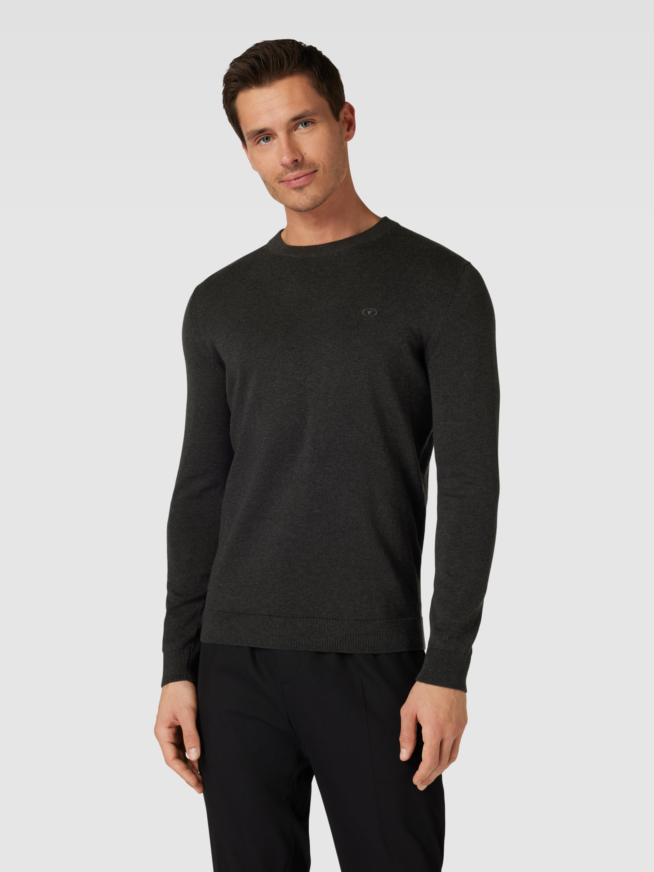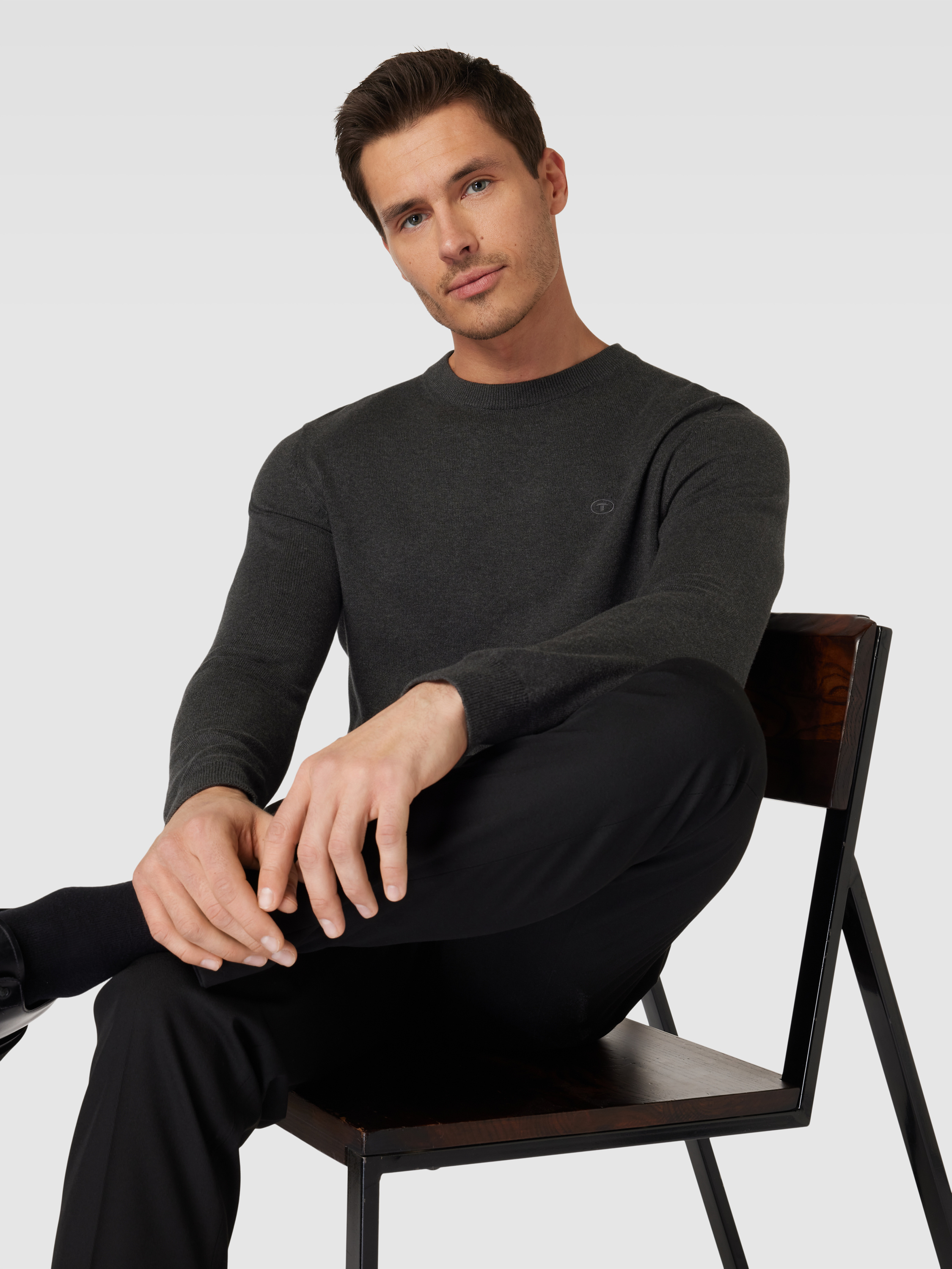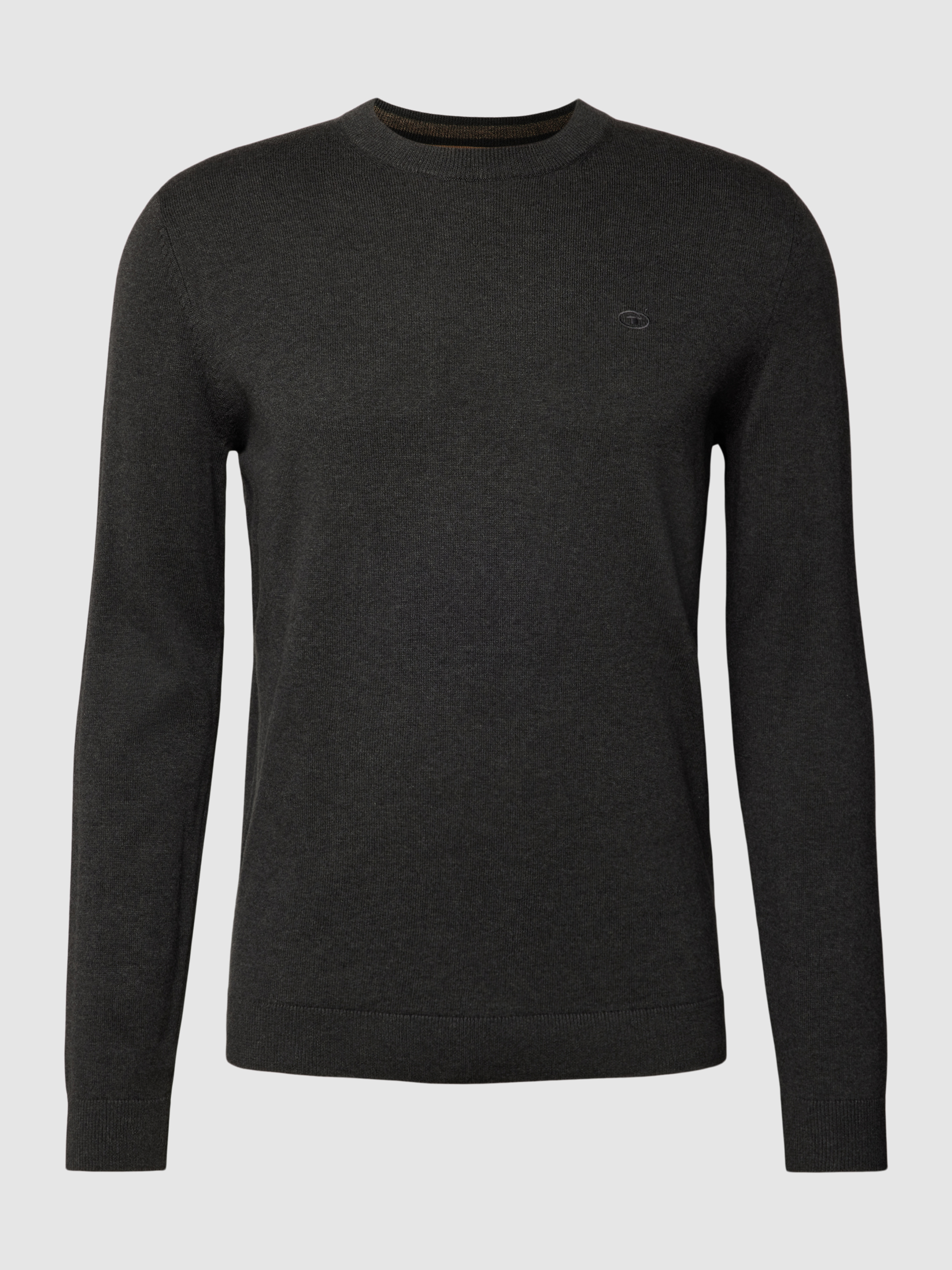 Tom TailorRegular Fit Strickpullover aus reiner Baumwolle mit Rundhalsausschnitt in anthrazit
