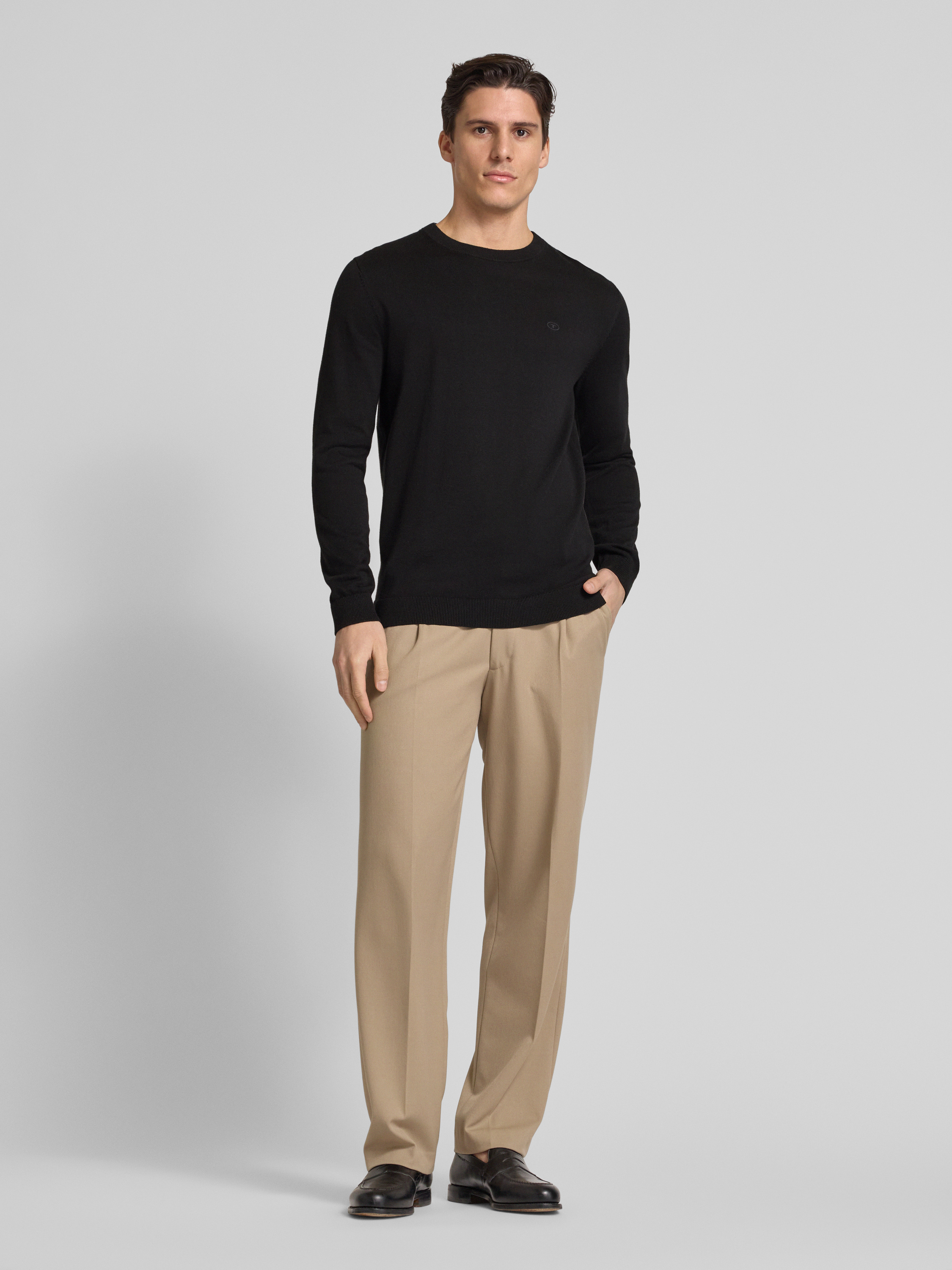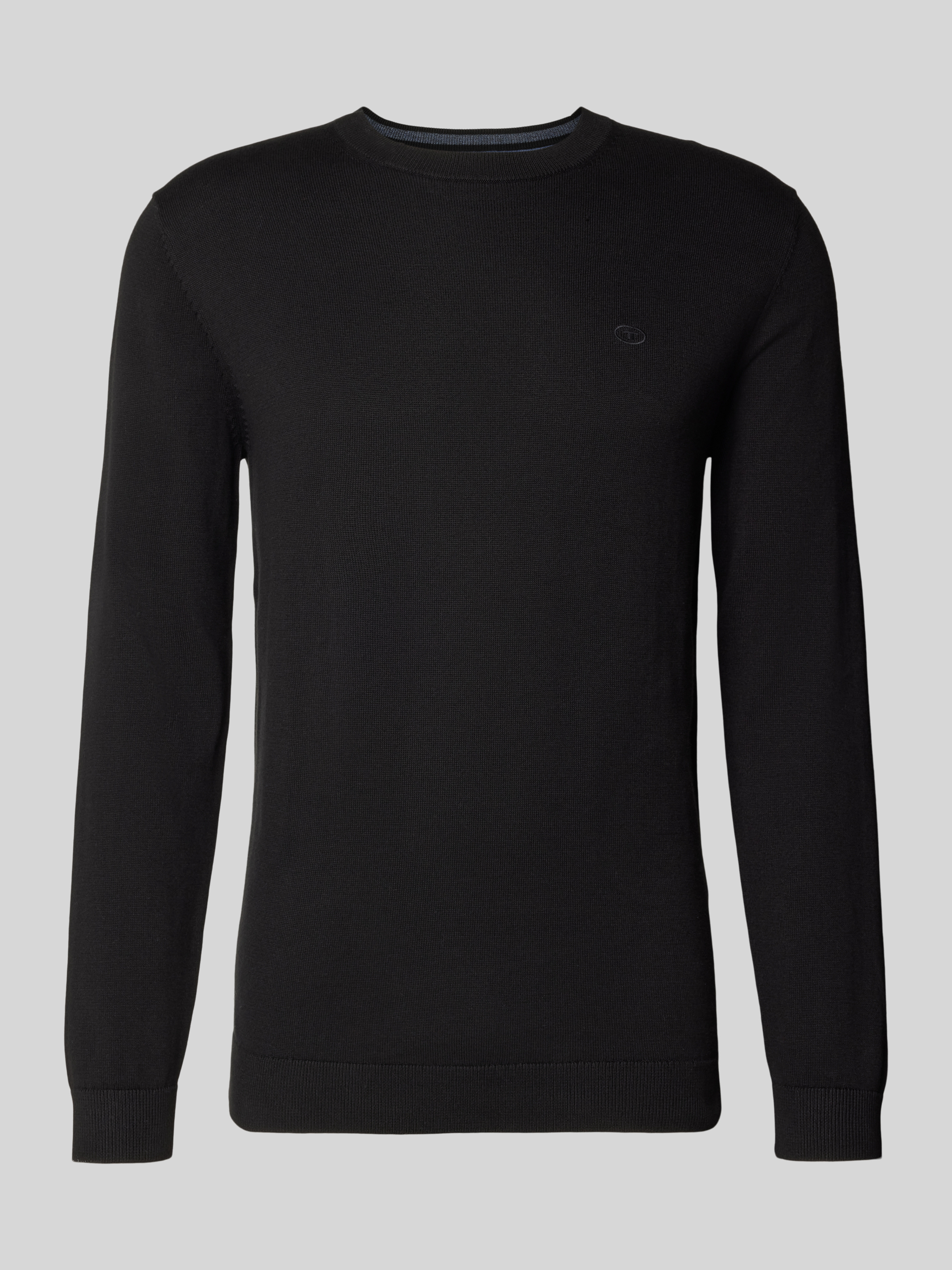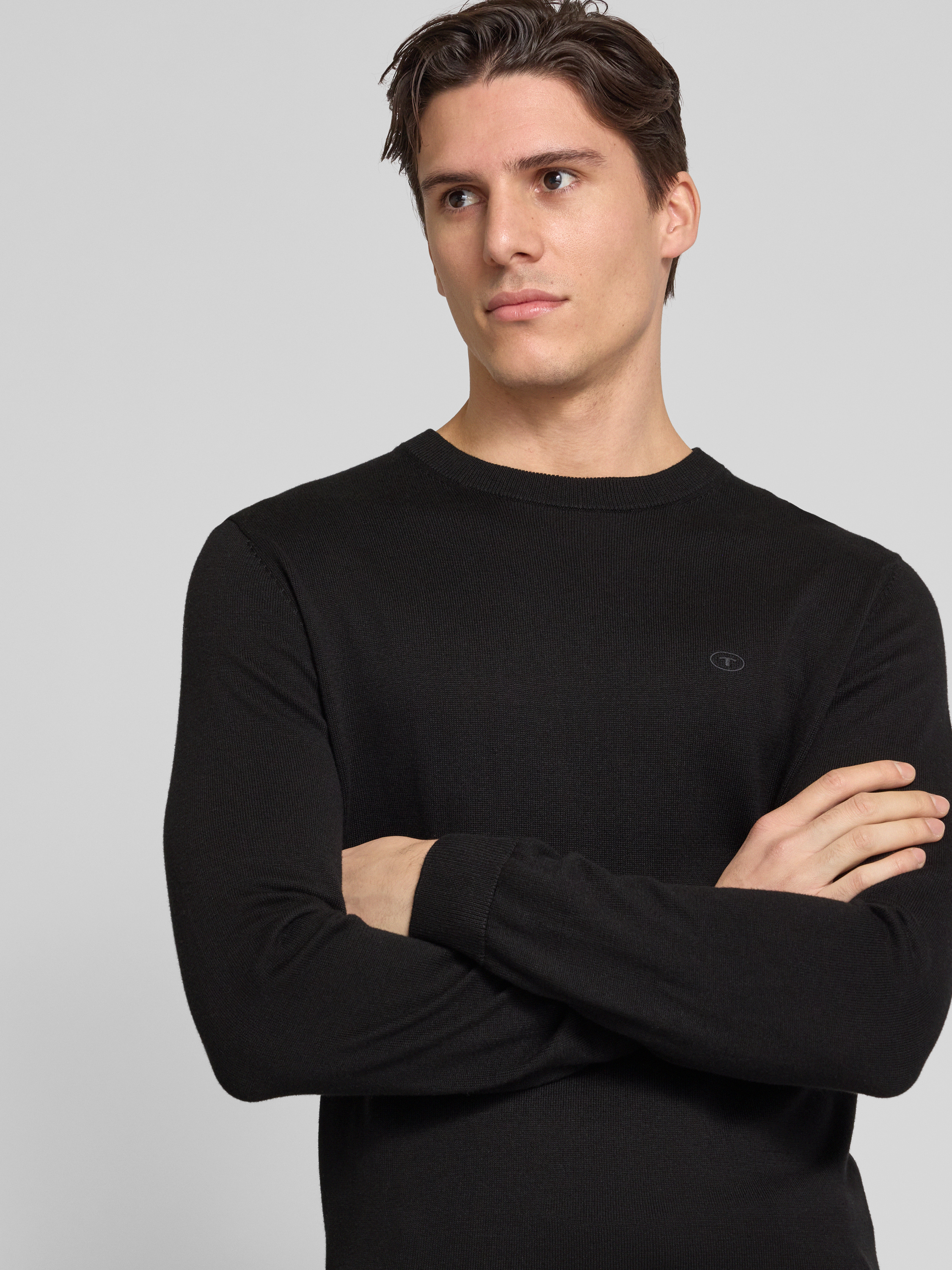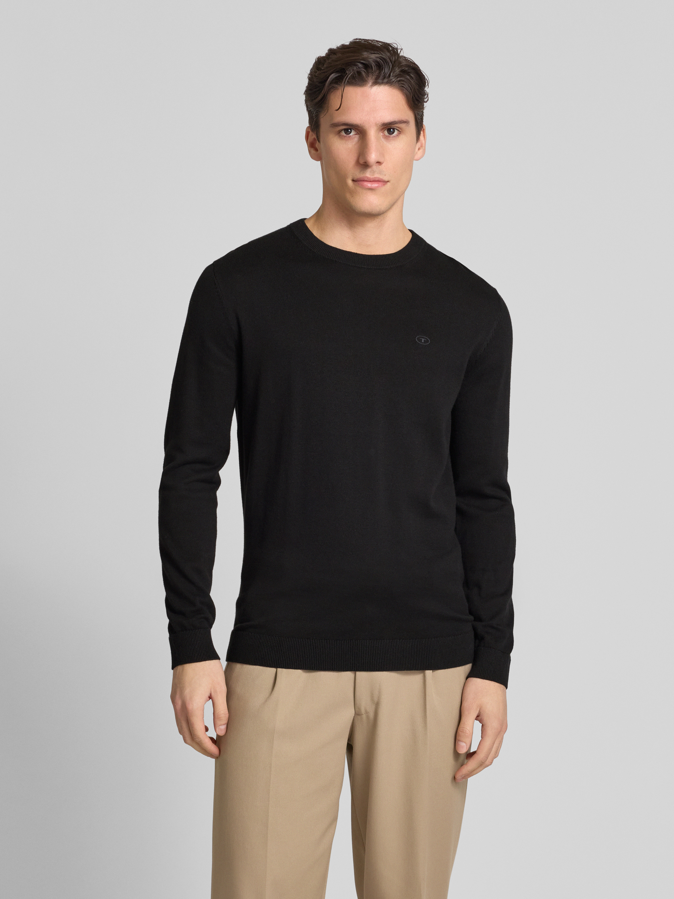 Tom TailorRegular Fit Strickpullover aus reiner Baumwolle mit Rundhalsausschnitt in black