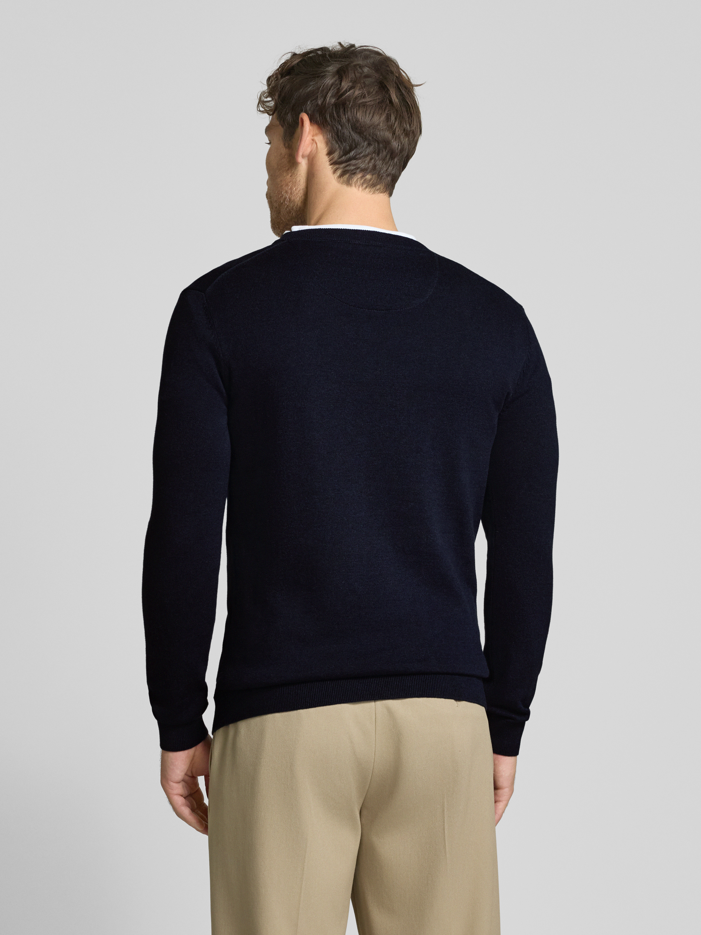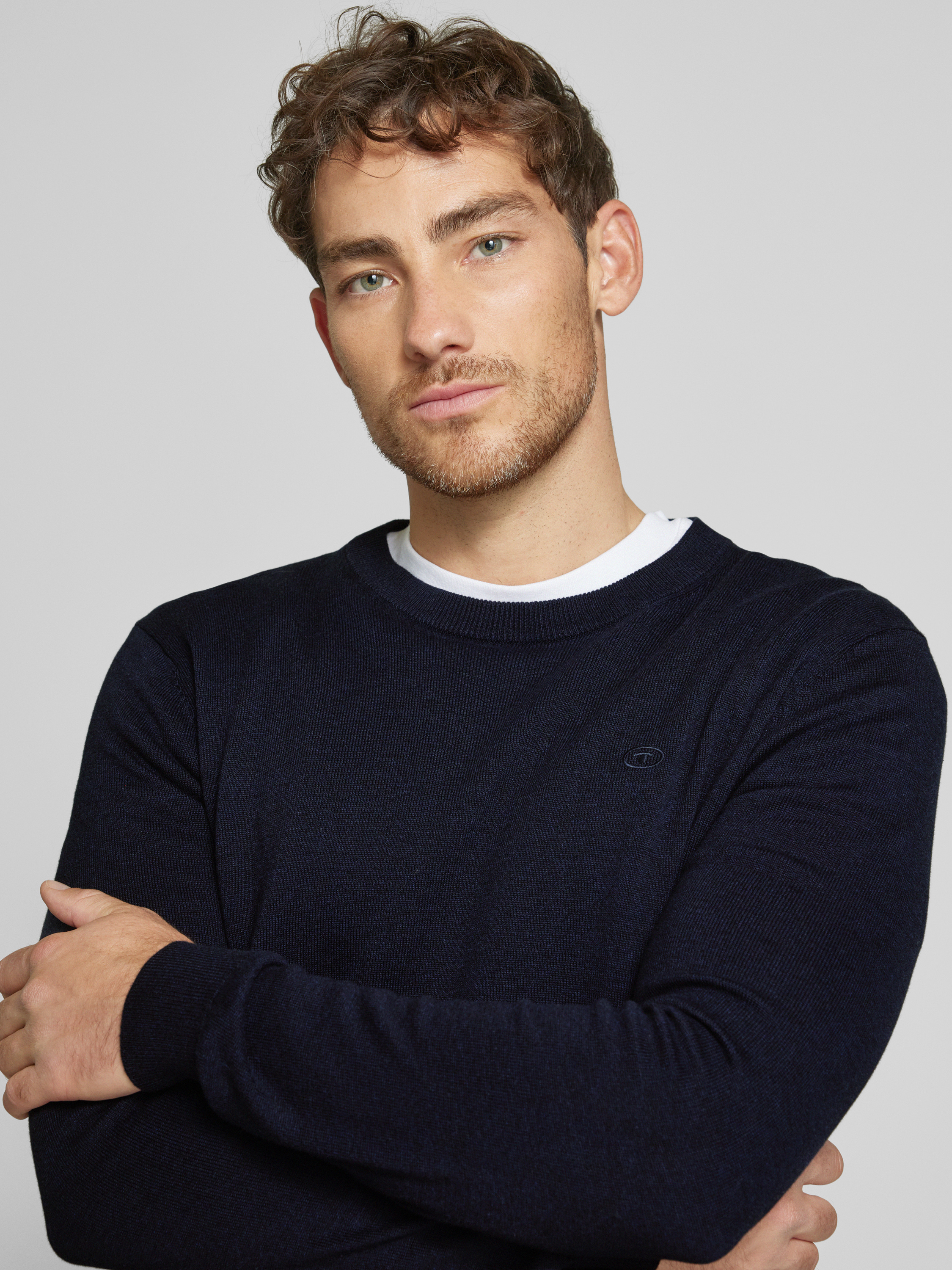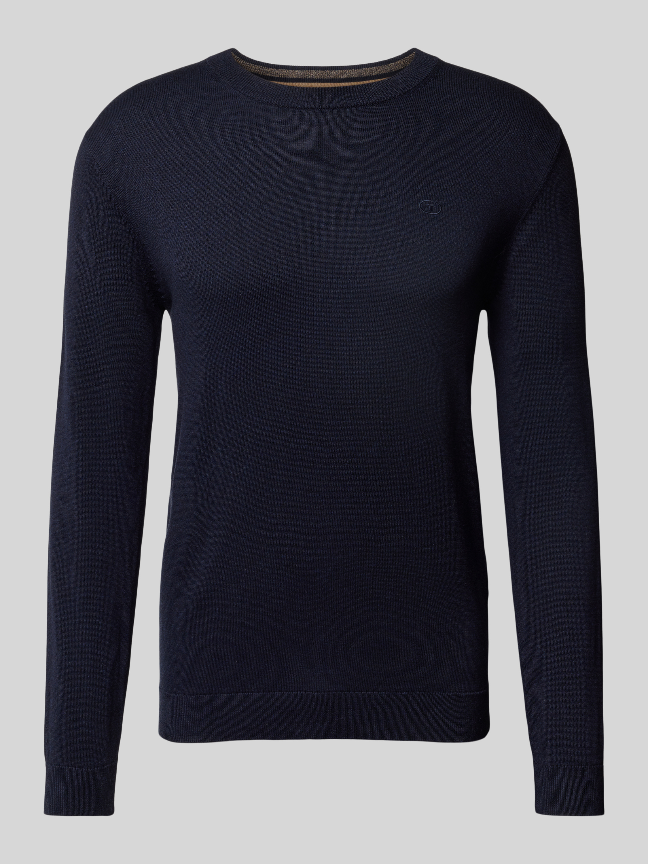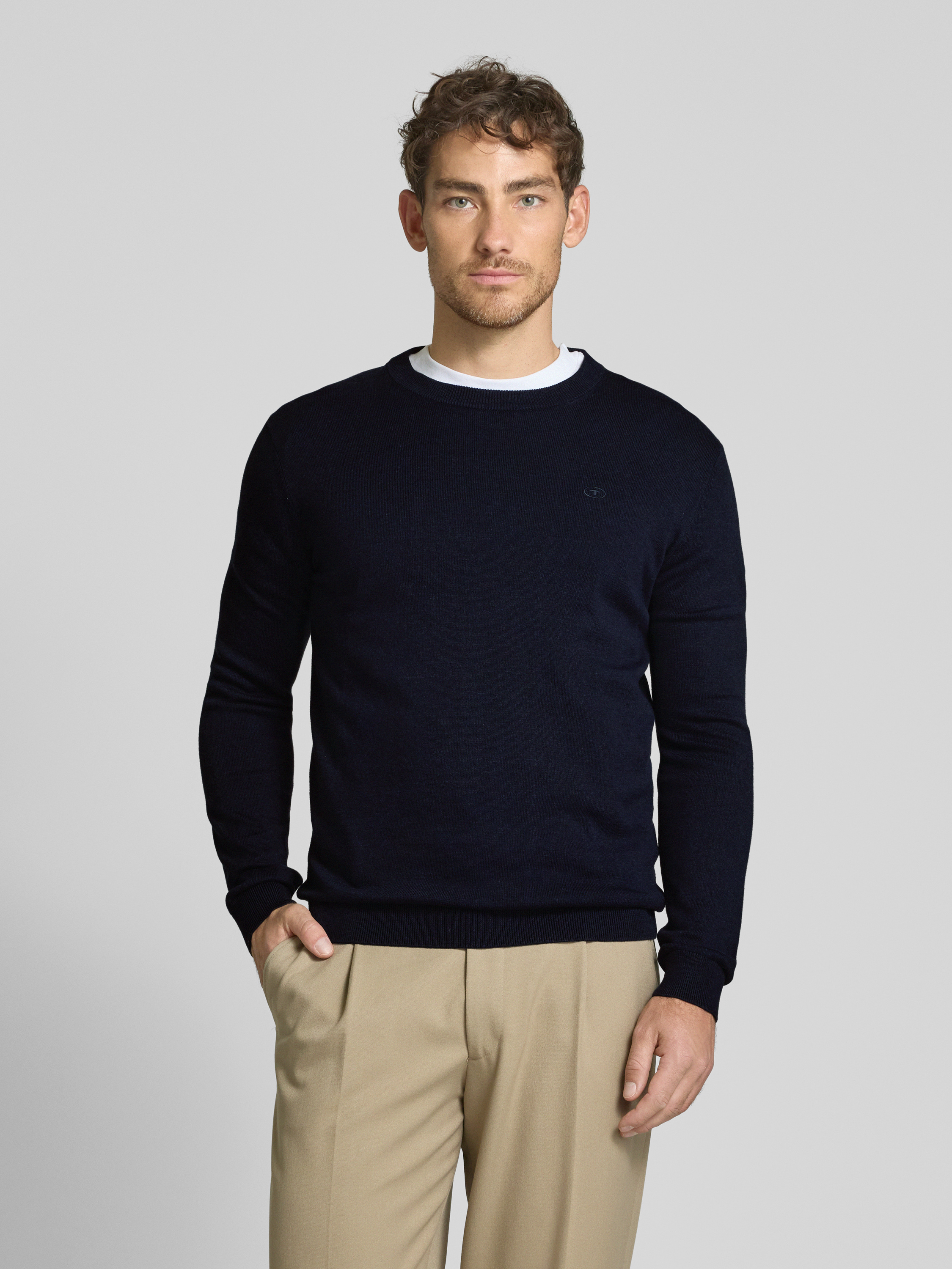 Tom TailorRegular Fit Strickpullover aus reiner Baumwolle mit Rundhalsausschnitt in dunkelblau