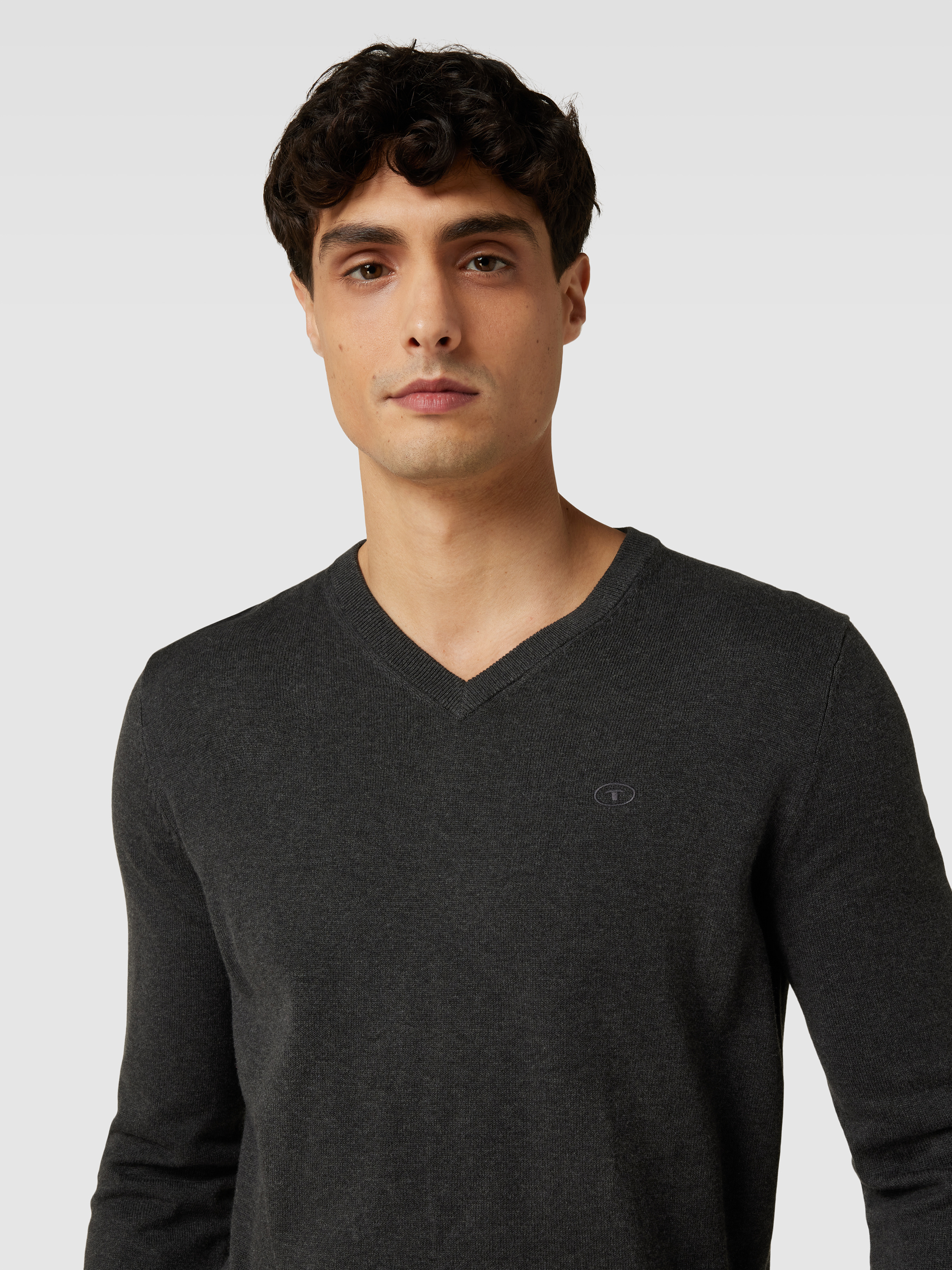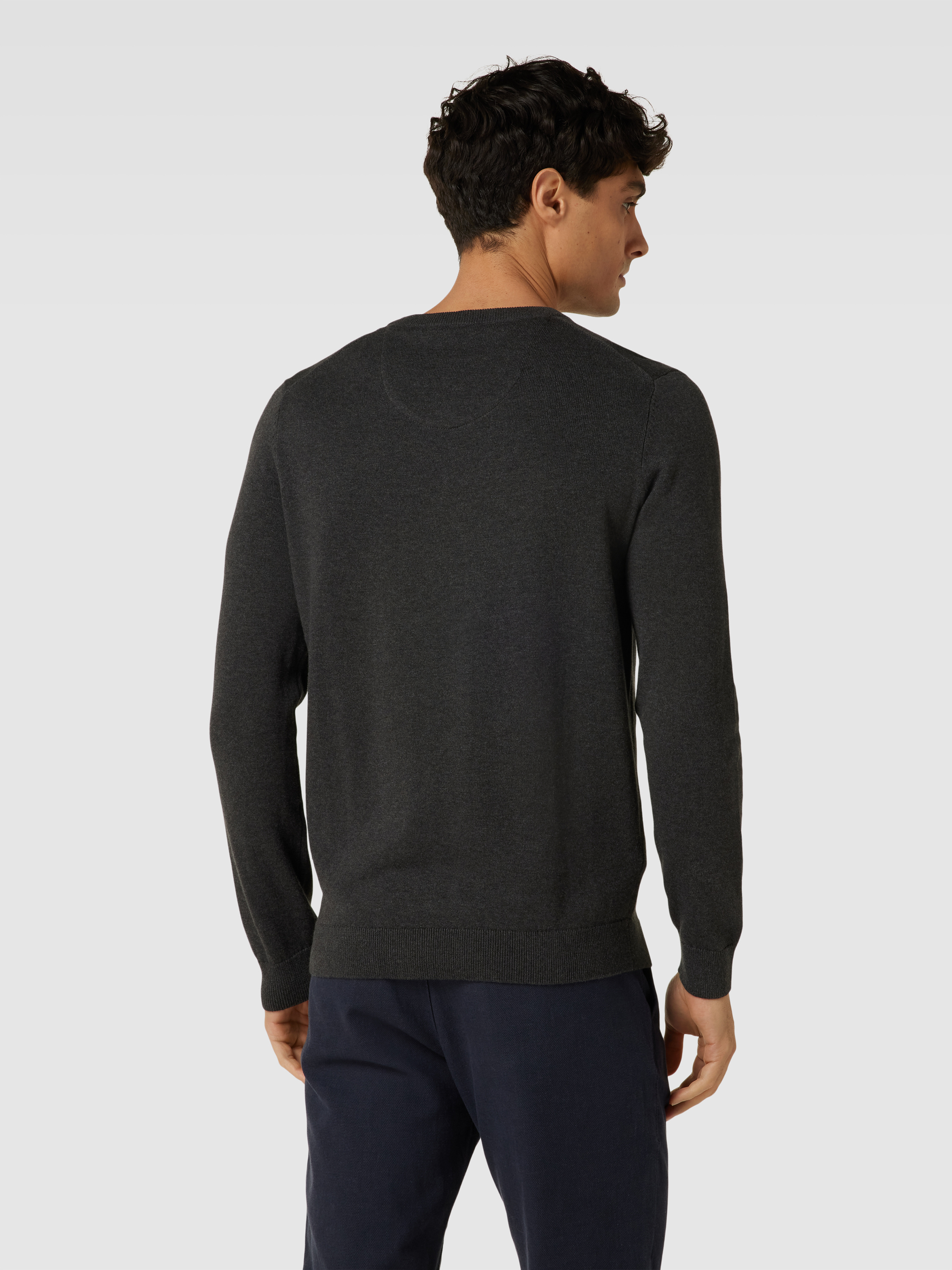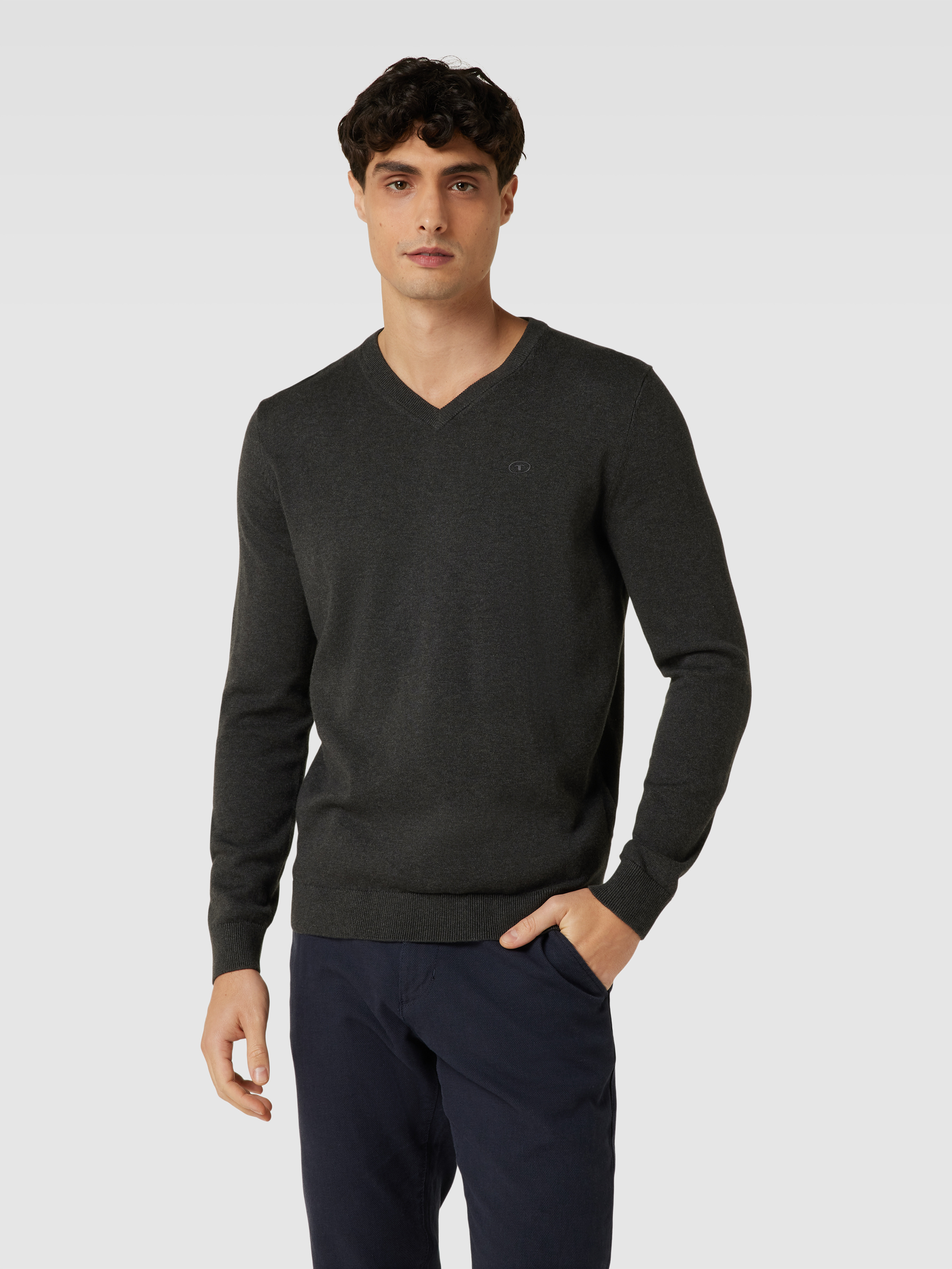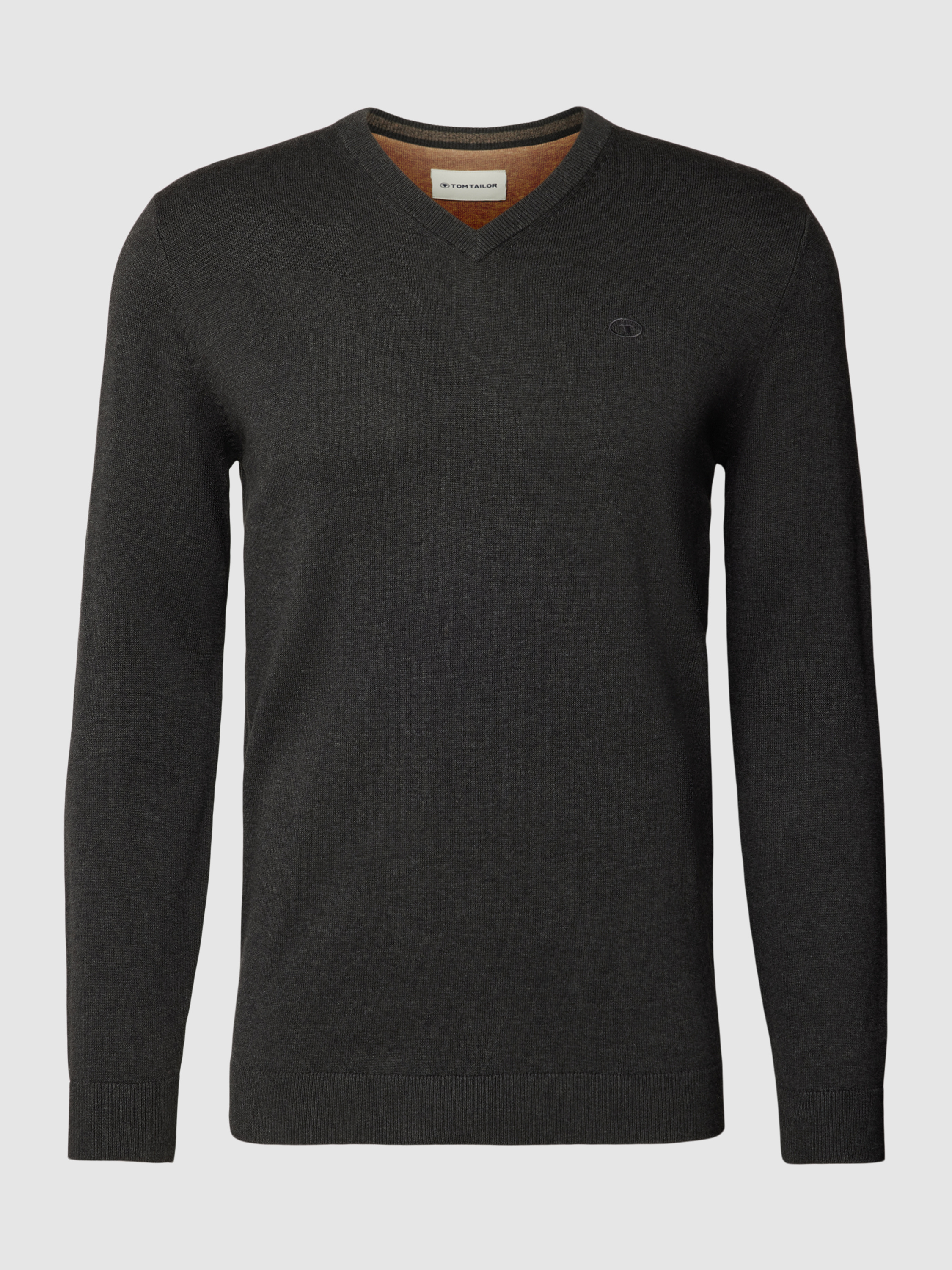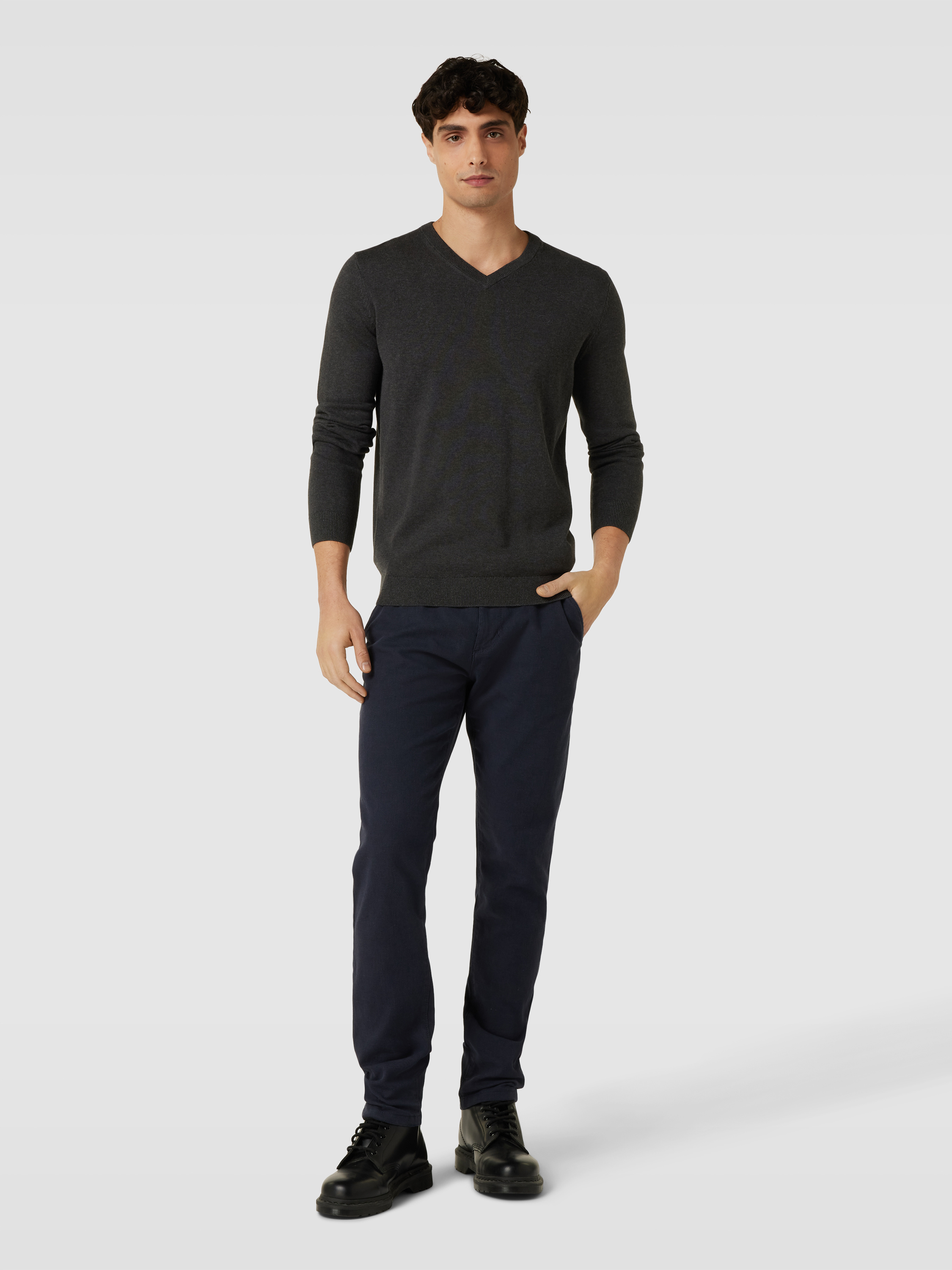 Regular Fit Strickpullover aus reiner Baumwolle mit V-Ausschnitt in anthrazit