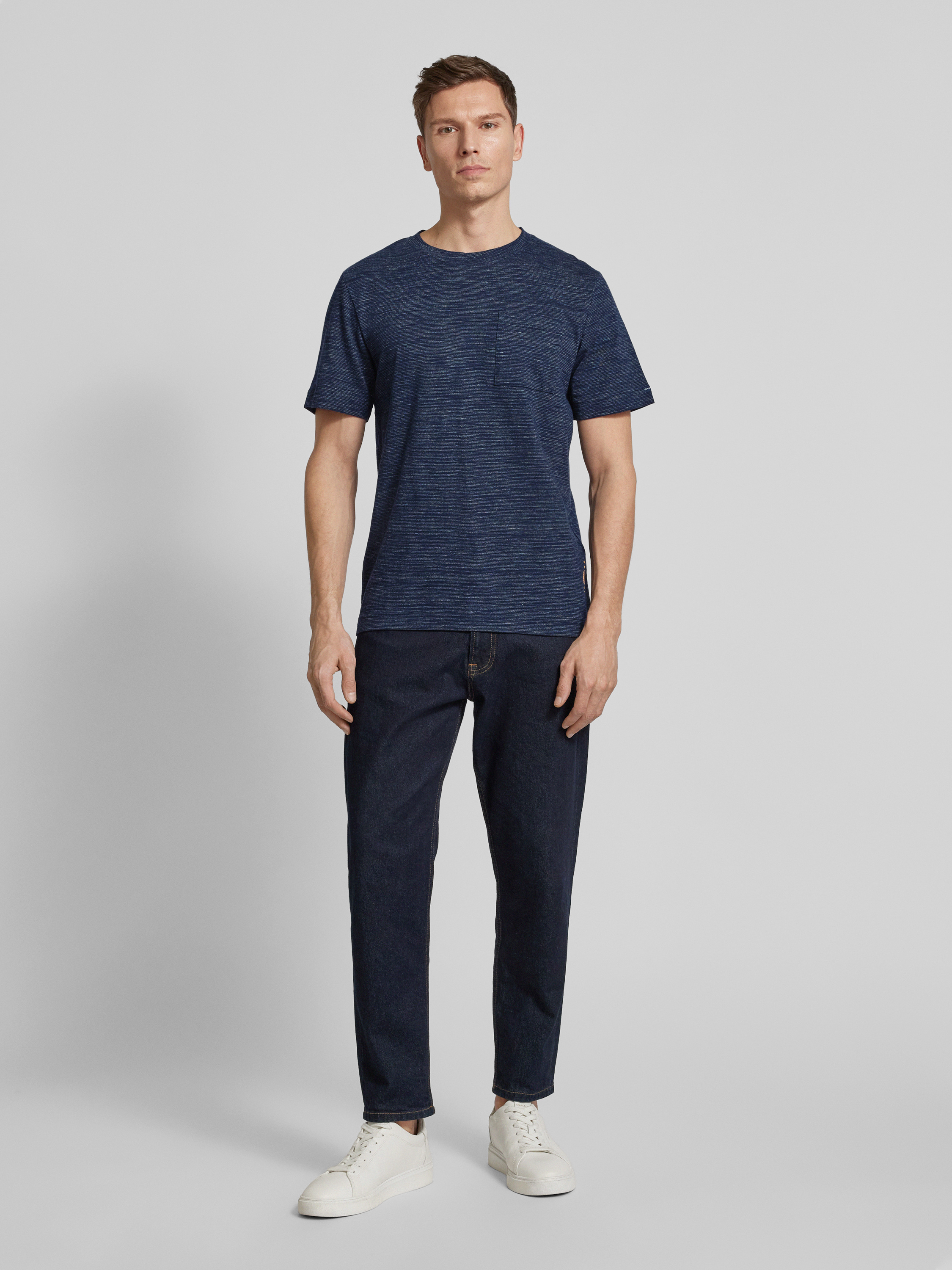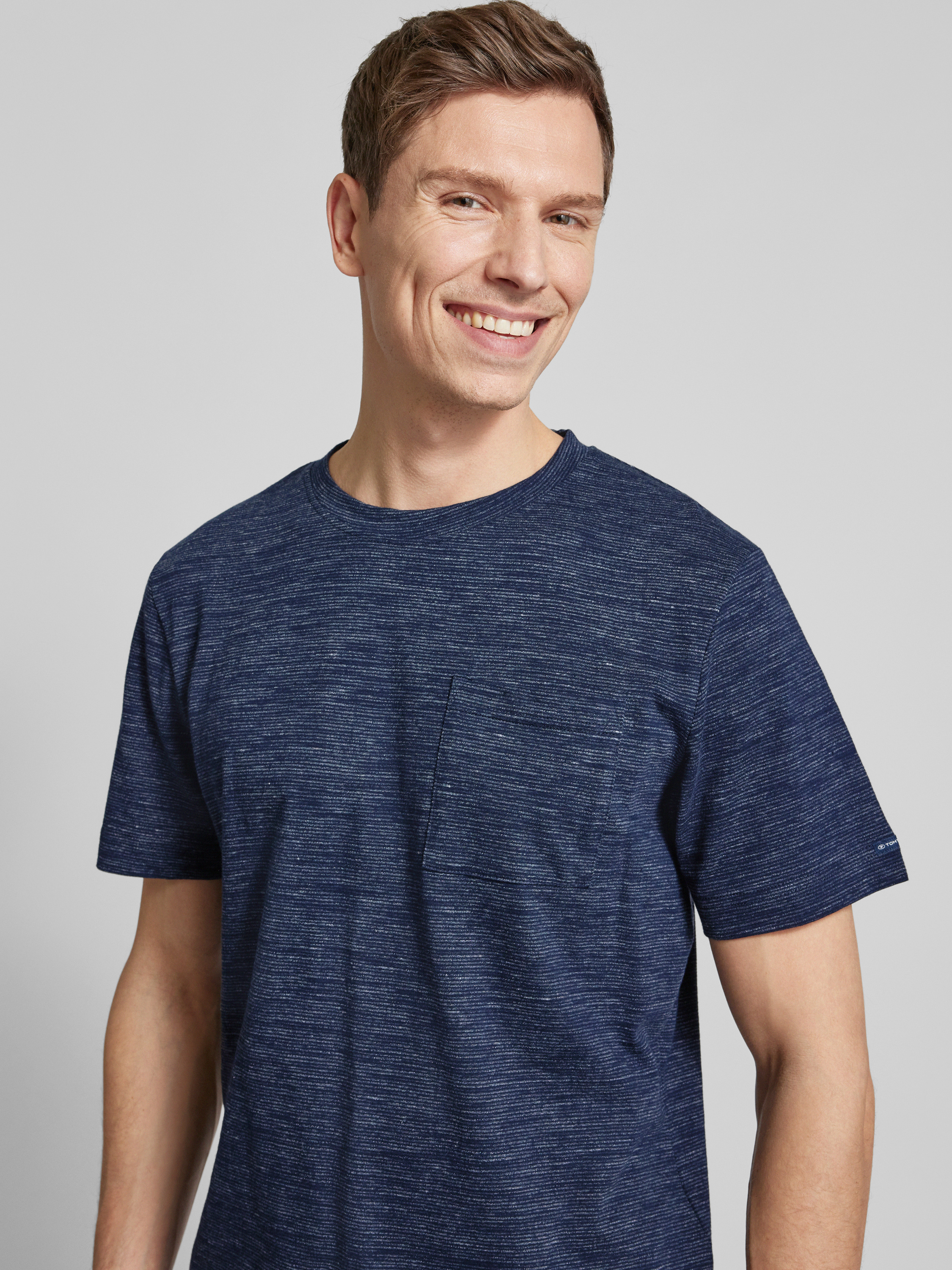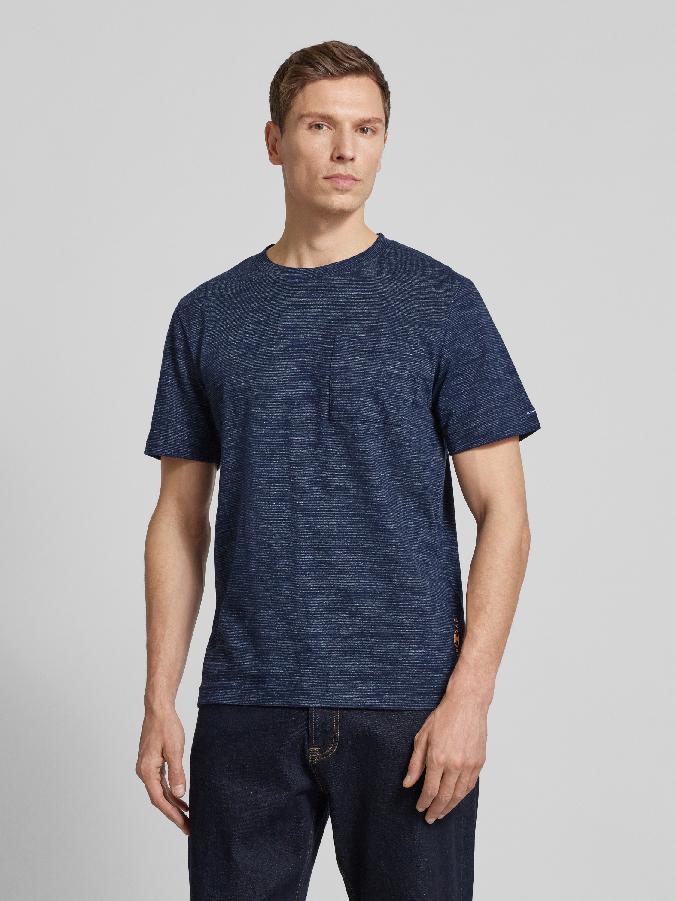 Das Herren T-Shirt von Tom Tailor beeindruckt durch seine Melange-Optik und den klassischen Rundhalsausschnitt. Der bequeme Regular Fit sorgt für einen angenehmen Tragekomfort, während der Baumwoll-Mix ein weiches Hautgefühl ermöglicht. Der dezente Logo-Patch und die Brusttasche ergänzen das stilvolle Design.