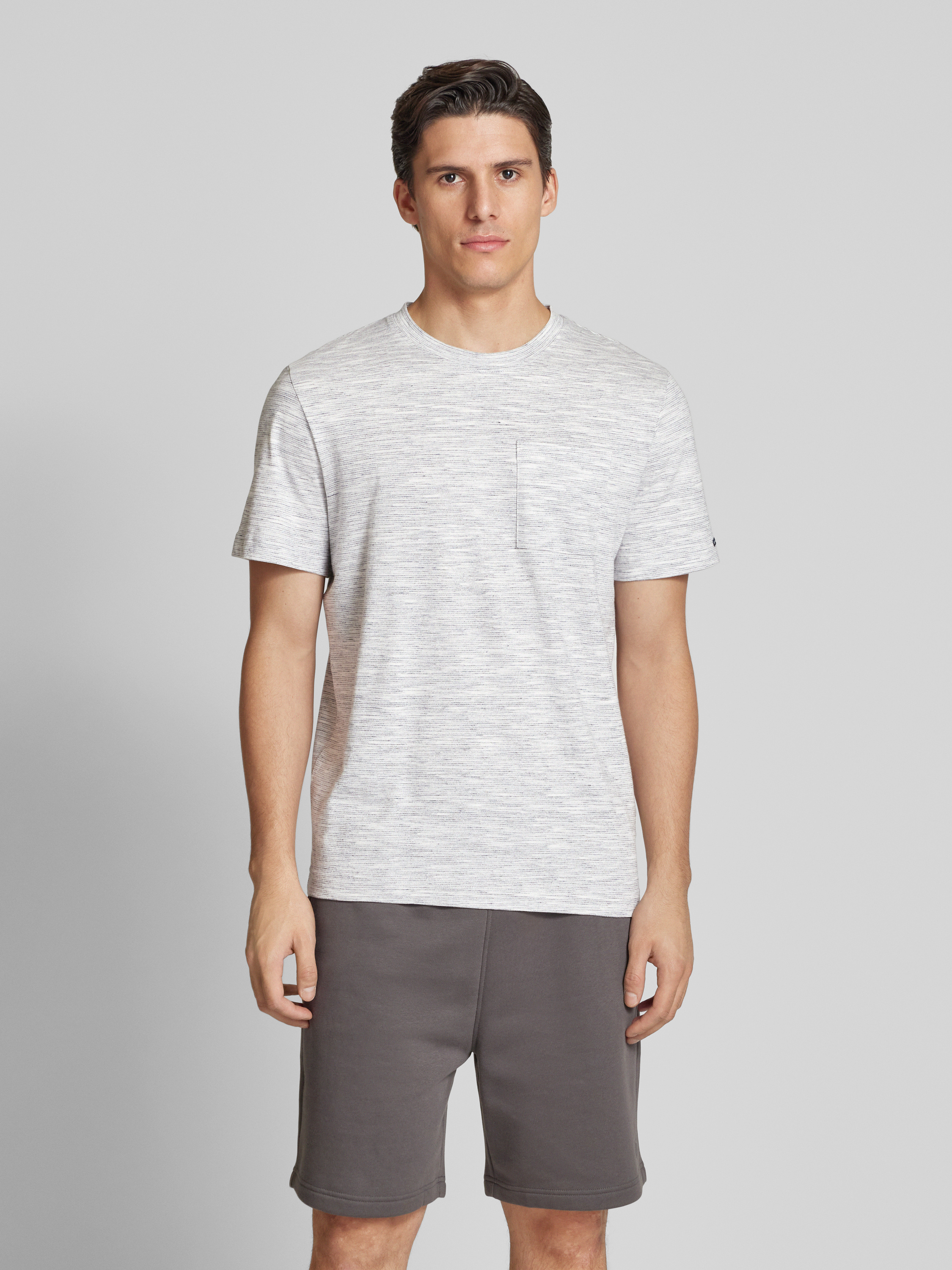 Das Herren T-Shirt von Tom Tailor beeindruckt durch seine Melange-Optik und den klassischen Rundhalsausschnitt. Der bequeme Regular Fit sorgt für einen angenehmen Tragekomfort, während der Baumwoll-Mix ein weiches Hautgefühl ermöglicht. Der dezente Logo-Patch und die Brusttasche ergänzen das stilvolle Design.