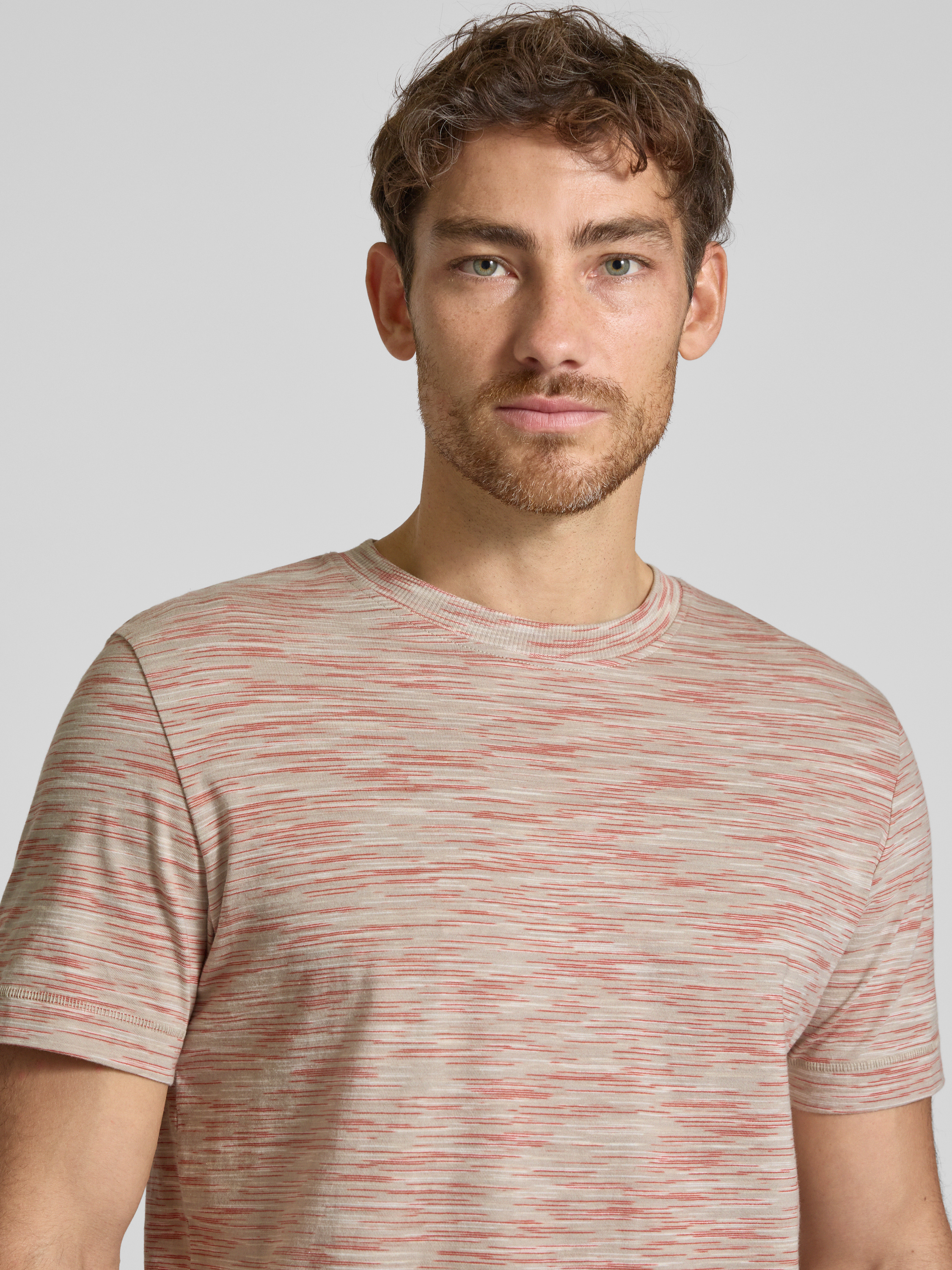 Das Herren T-Shirt von Tom Tailor vereint Komfort und Stil durch sein mehrfarbiges Melange-Design. Dank der reinen Baumwolle fühlt es sich angenehm auf der Haut an und ist ideal für den Alltag geeignet. Der Regular Fit und der Rundhalsausschnitt sorgen für eine entspannte Passform.