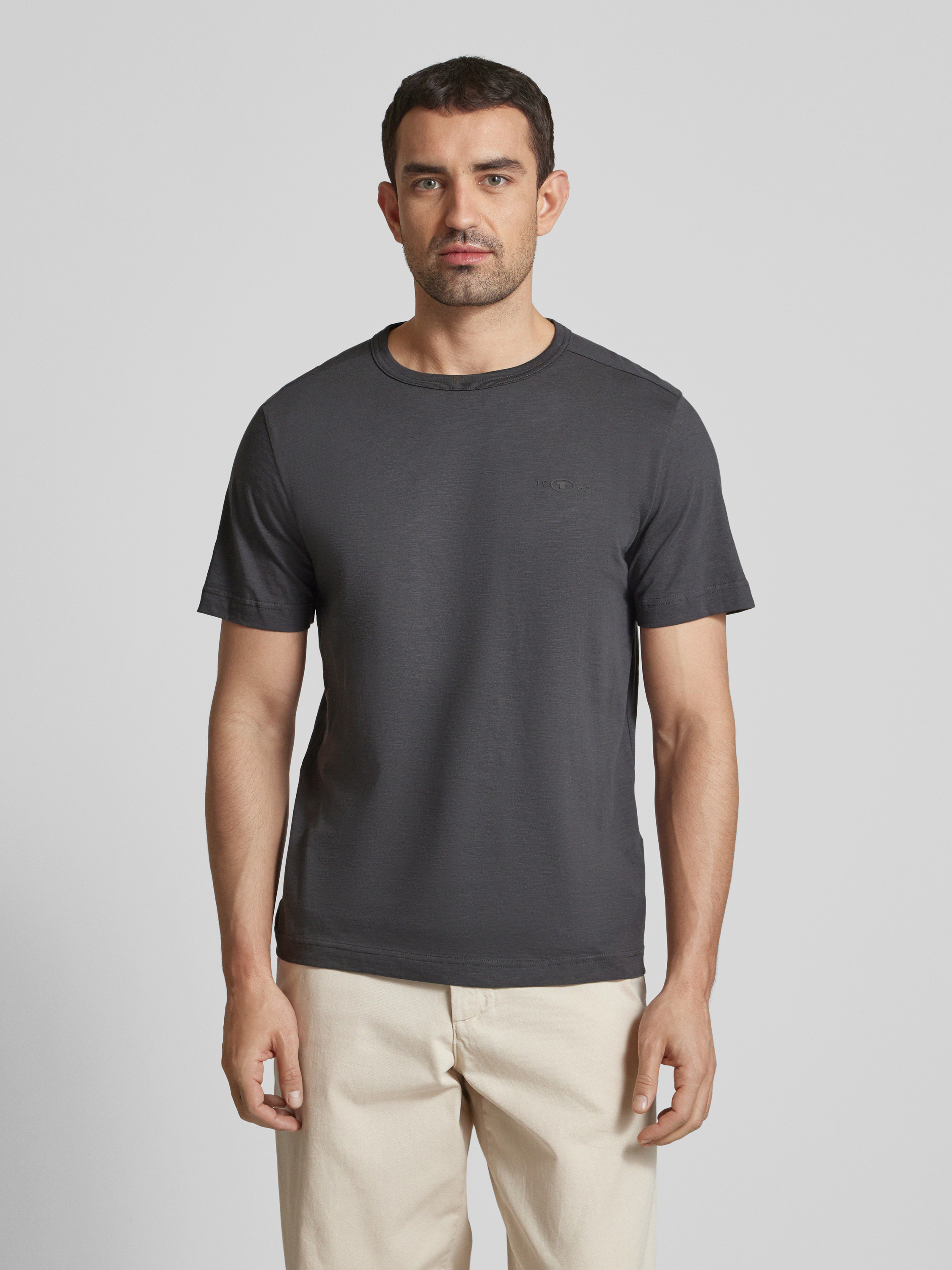Tom TailorRegular Fit T-Shirt aus reiner Baumwolle mit gummiertem Logo-Print in graphit