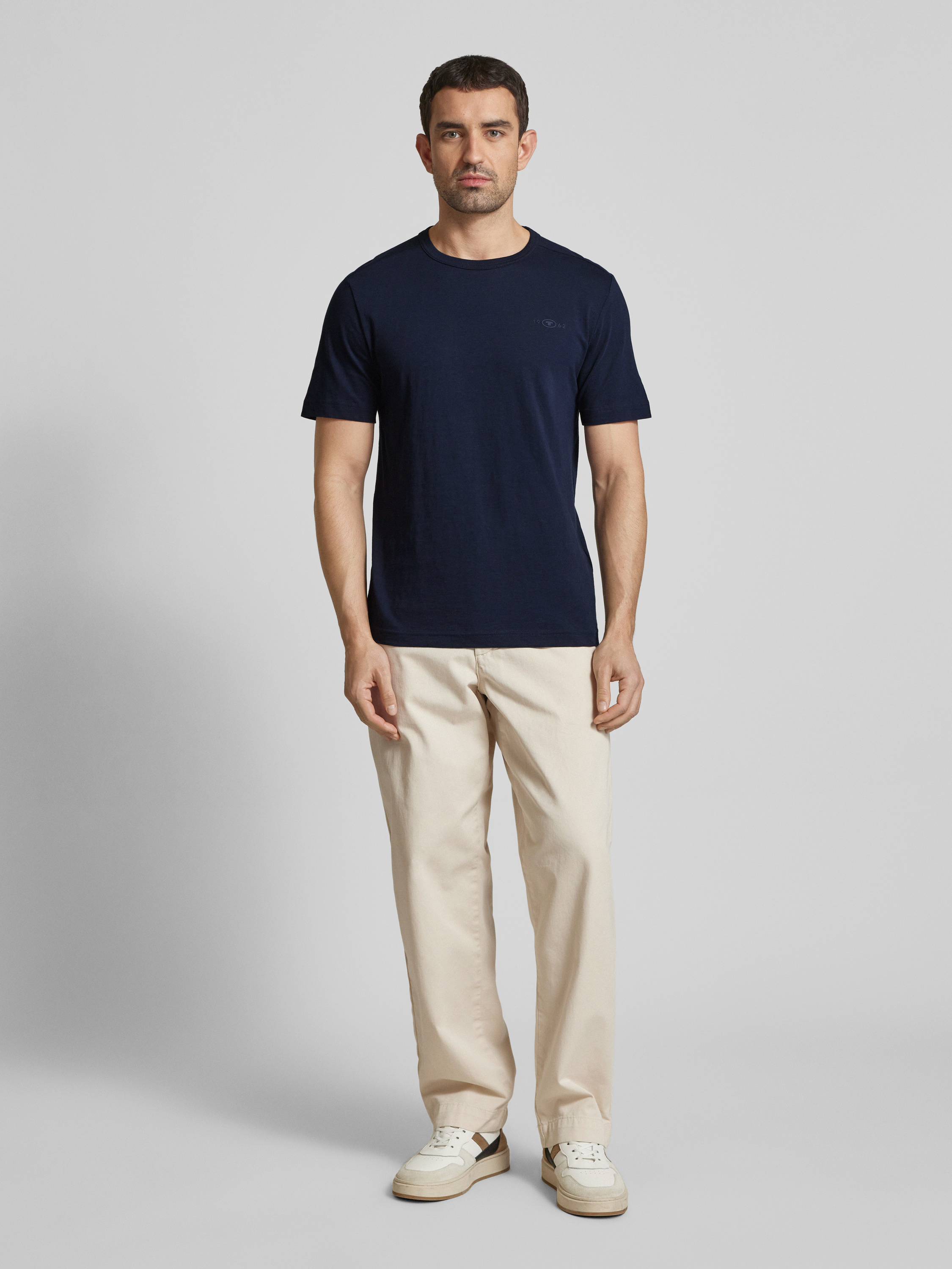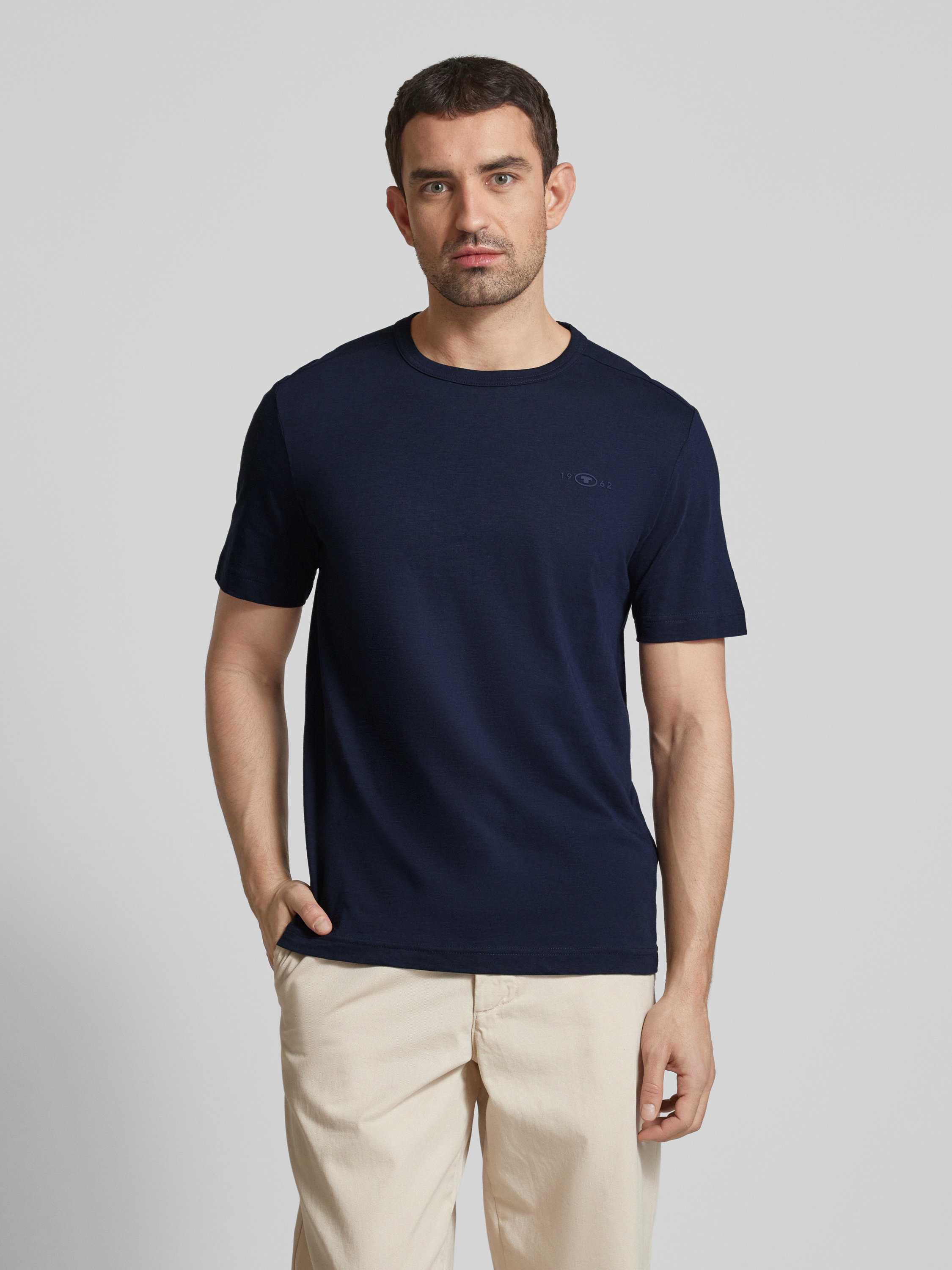 Das Herren T-Shirt von Tom Tailor überzeugt durch seine angenehme Regular Fit Passform und besteht aus reiner Baumwolle, die ein komfortables Tragegefühl ermöglicht. Der unifarbene Look wird durch einen gummierten Logo-Print dezent akzentuiert. Mit seinem klassischen Rundhals und kurzen Ärmeln eignet es sich ideal für lässige Alltagskombinationen.