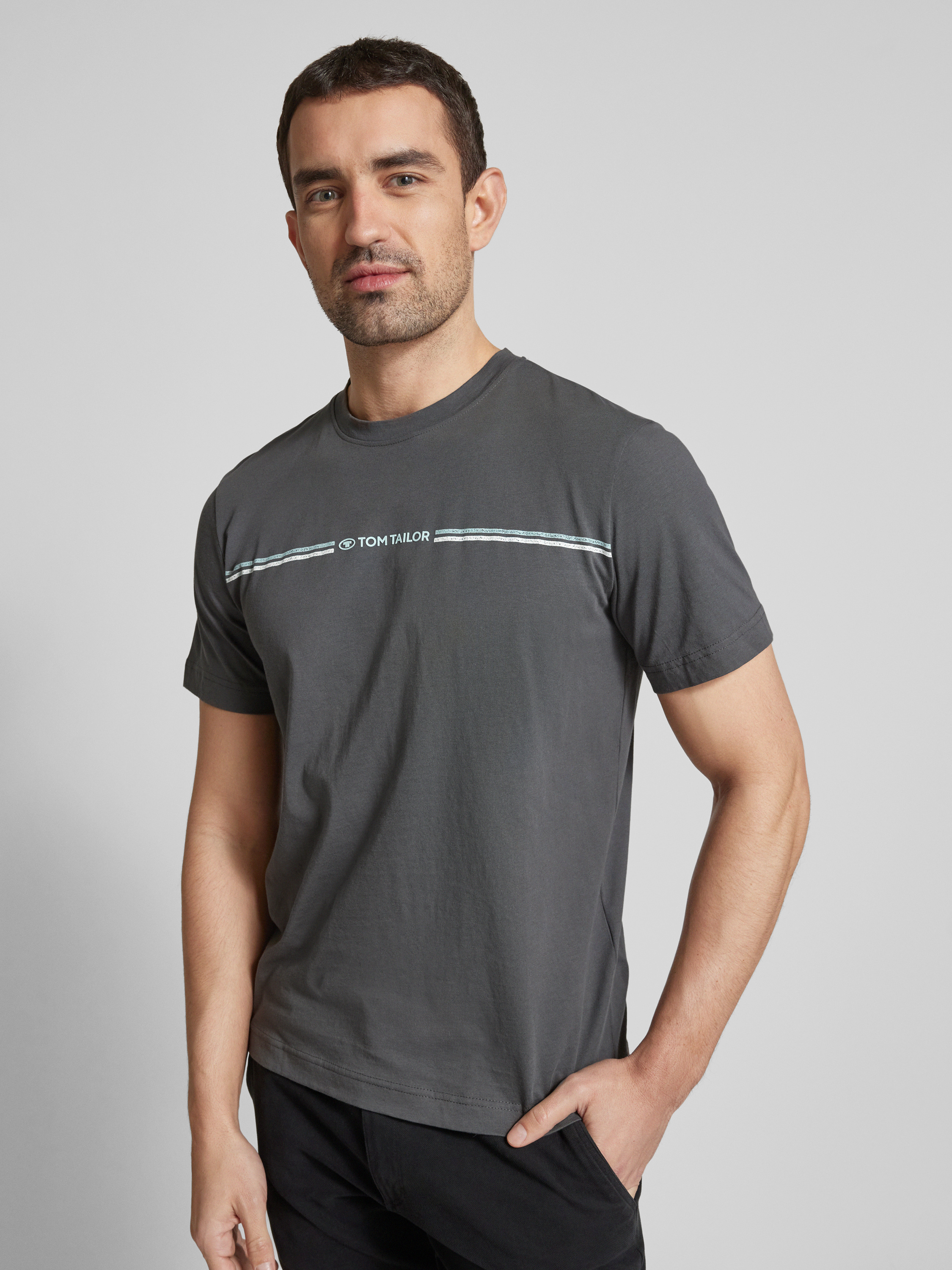 Tom TailorRegular Fit T-Shirt aus reiner Baumwolle mit Print in anthrazit