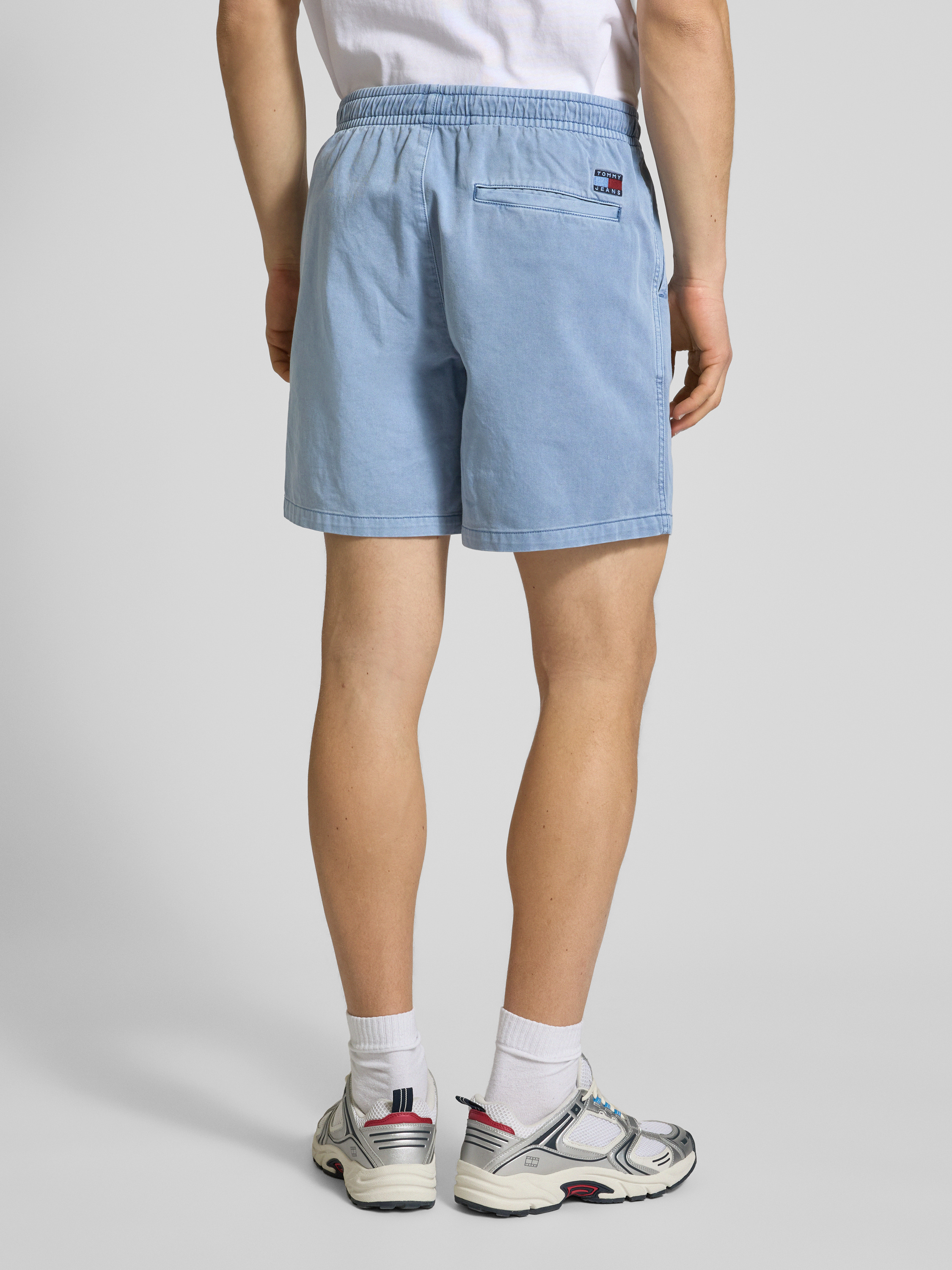 Die Loose Fit Jeansshorts aus Baumwoll-Twill von Tommy Jeans vereinen Komfort und Lässigkeit durch ihre entspannte Passform und den weichen Twillstoff. Mit praktischen seitlichen Eingrifftaschen und einem elastischen Bundabschluss bieten sie vielseitige Einsatzmöglichkeiten für entspannte Tage. Ein dezentes Label Stitching rundet das Design harmonisch ab.