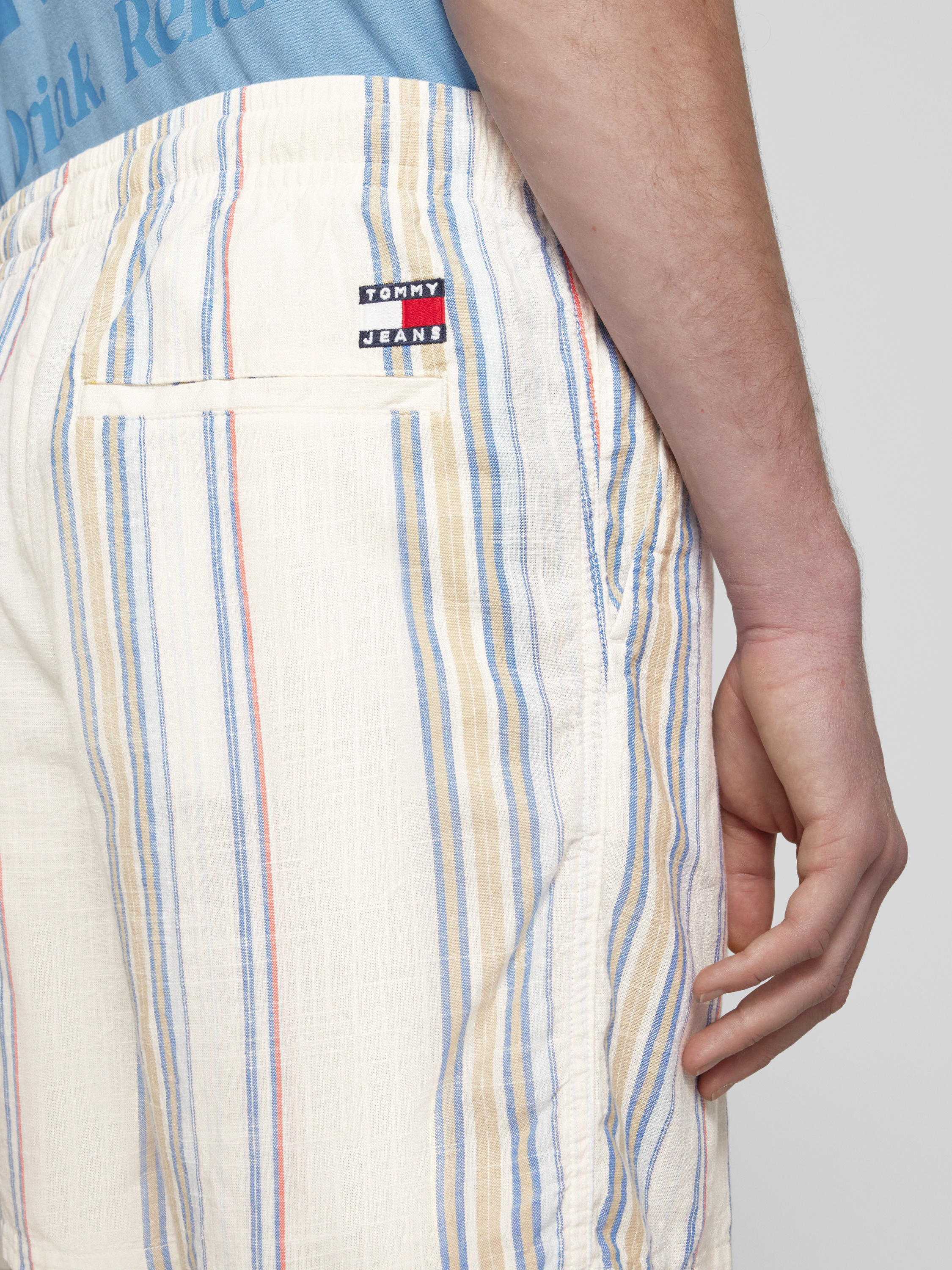 Die Loose Fit Shorts von Tommy Jeans aus reiner Baumwolle eignen sich hervorragend für entspannte Tage. Dank des lockeren Schnitts und des elastischen Bunds bieten sie viel Bewegungsfreiheit. Das gestreifte Allover-Muster verleiht dem Design eine dynamische Note.