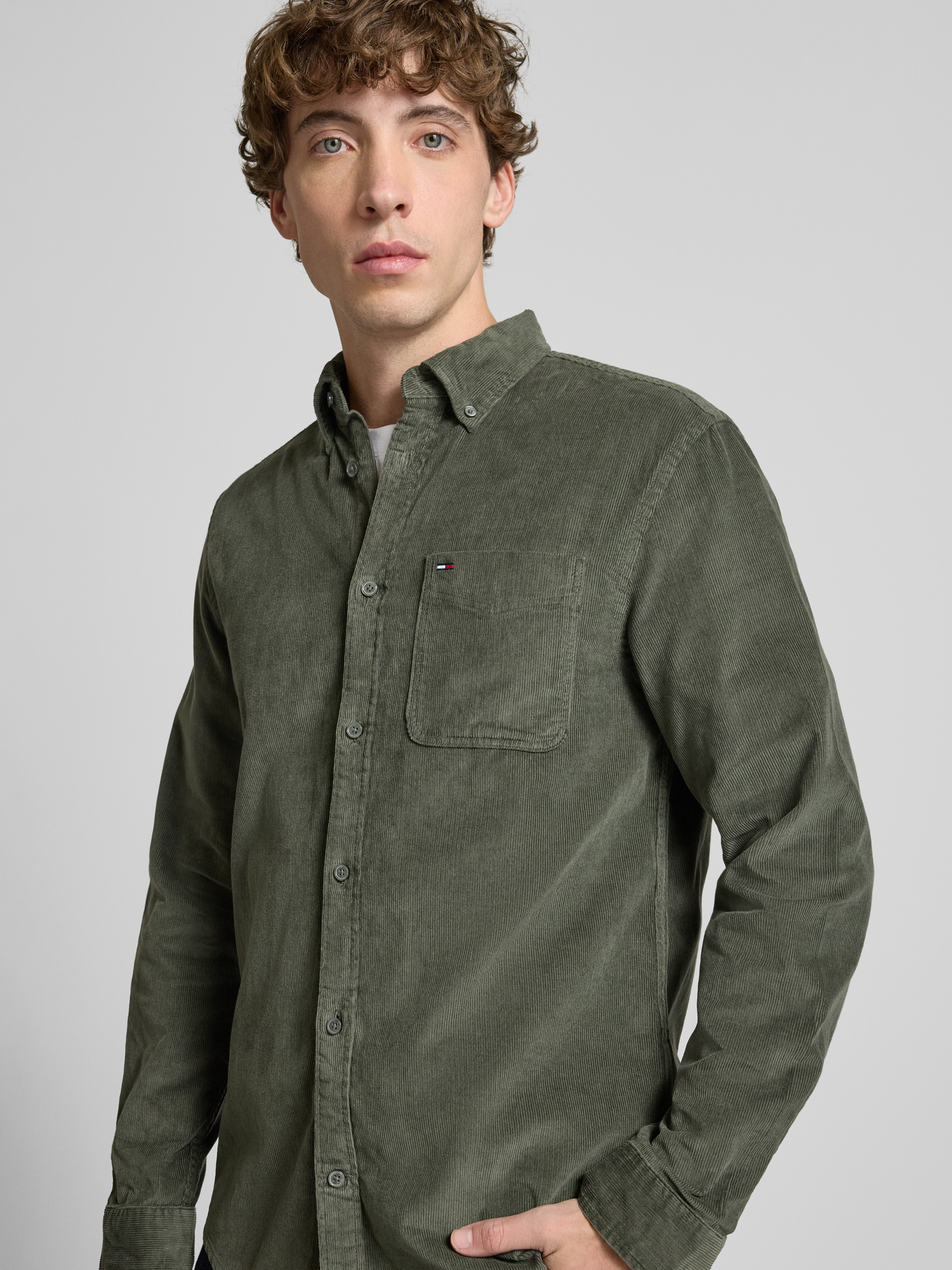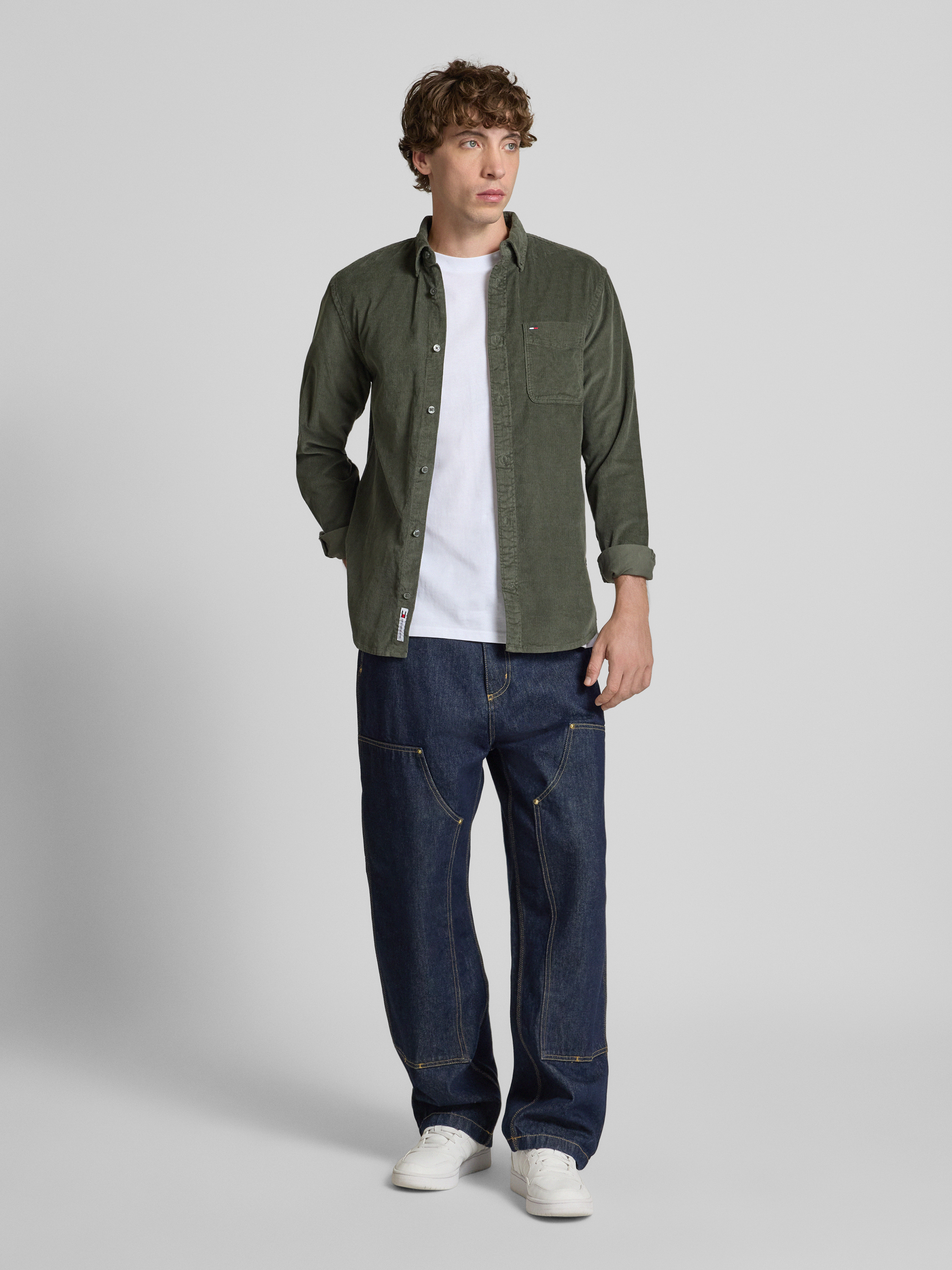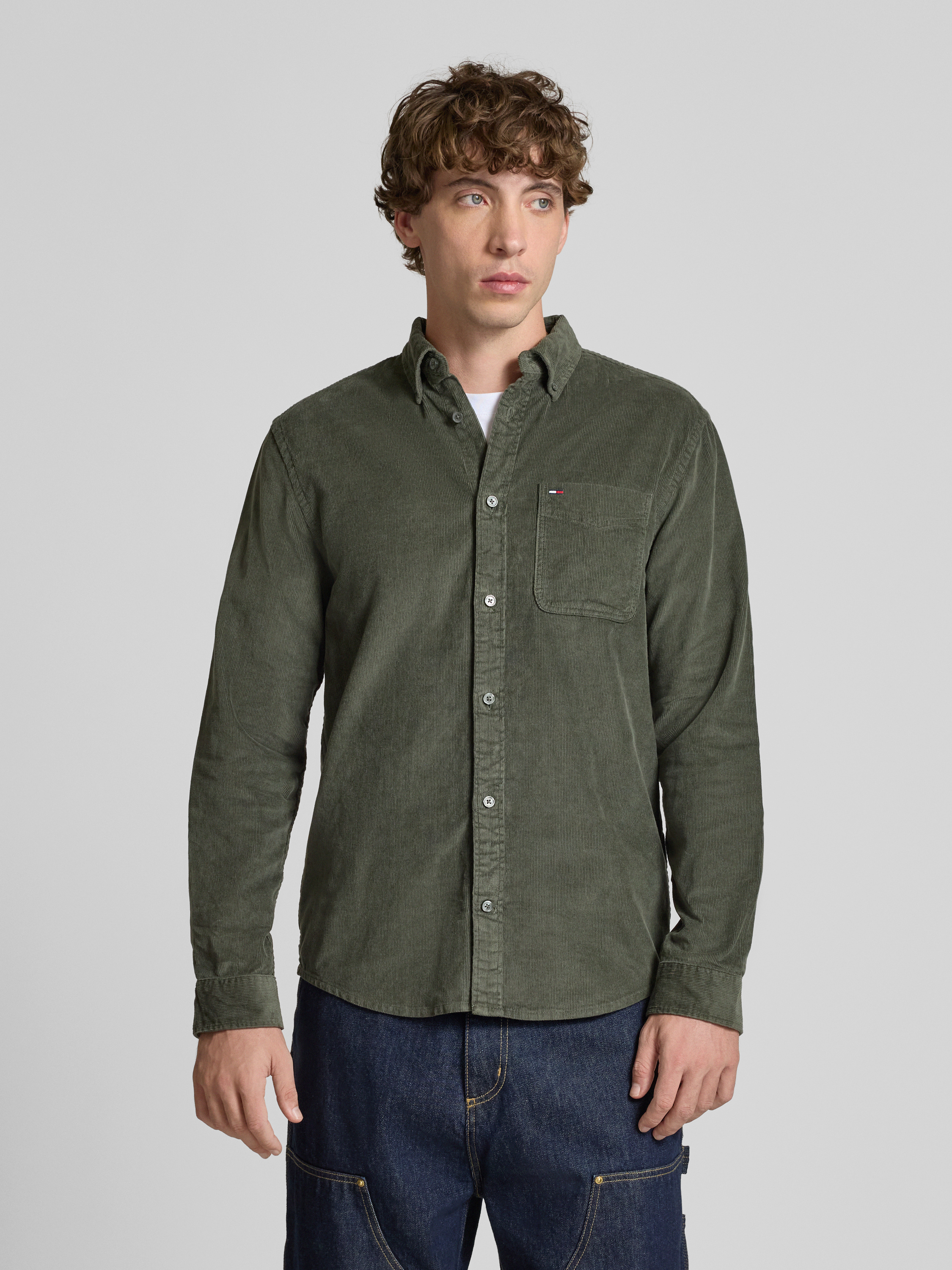 Das Herrenhemd von Tommy Jeans zeigt sich in klarer, unifarbener Optik und einem Regular Fit, der Bewegungsfreiheit im Alltag zulässt. Reine Baumwolle sorgt für ein angenehmes Tragegefühl, während der klassische Button-Down-Kragen und die Brusttasche den Look abrunden. So entsteht ein vielseitiges Kleidungsstück, das unkompliziert kombiniert werden kann.