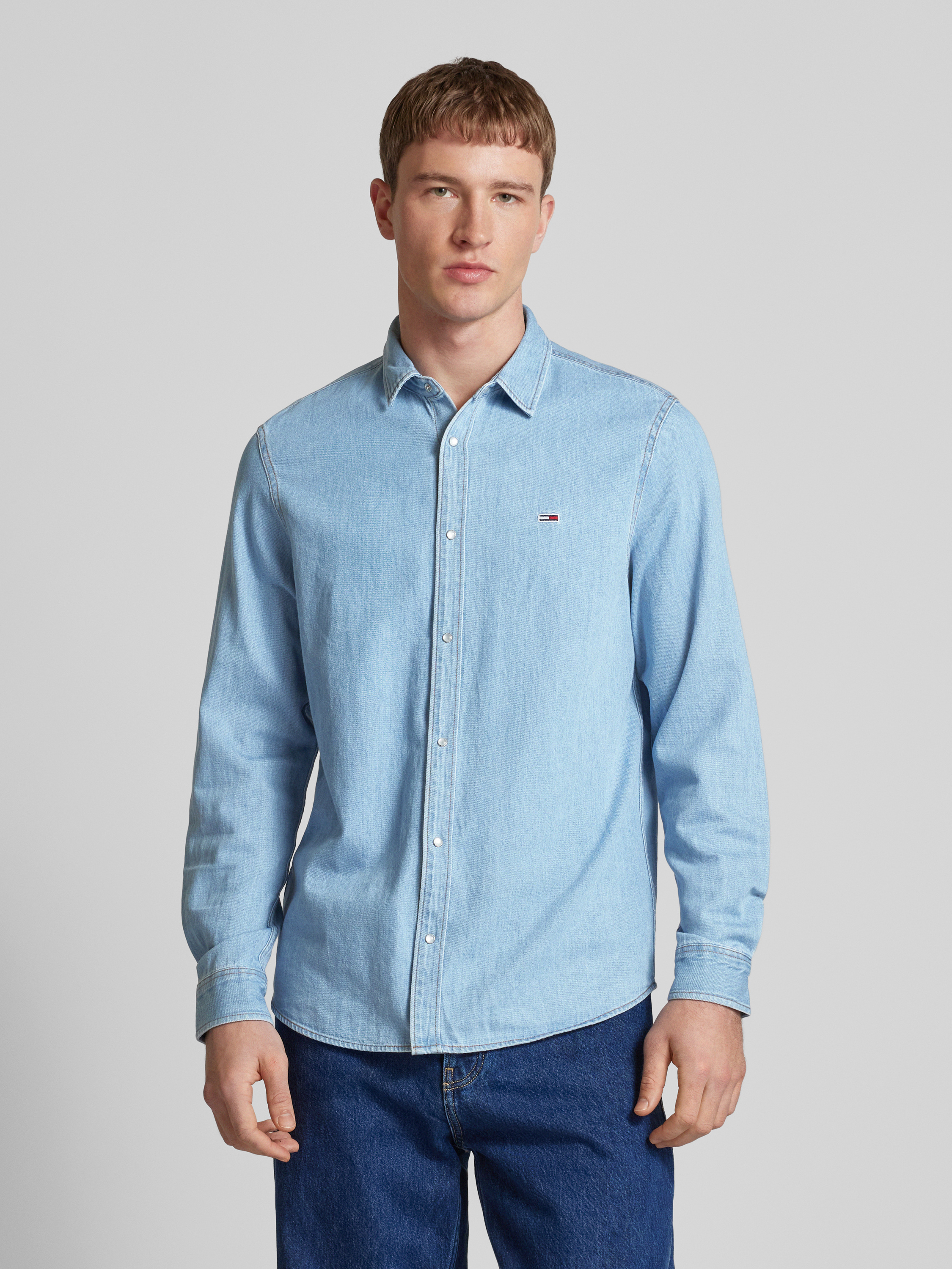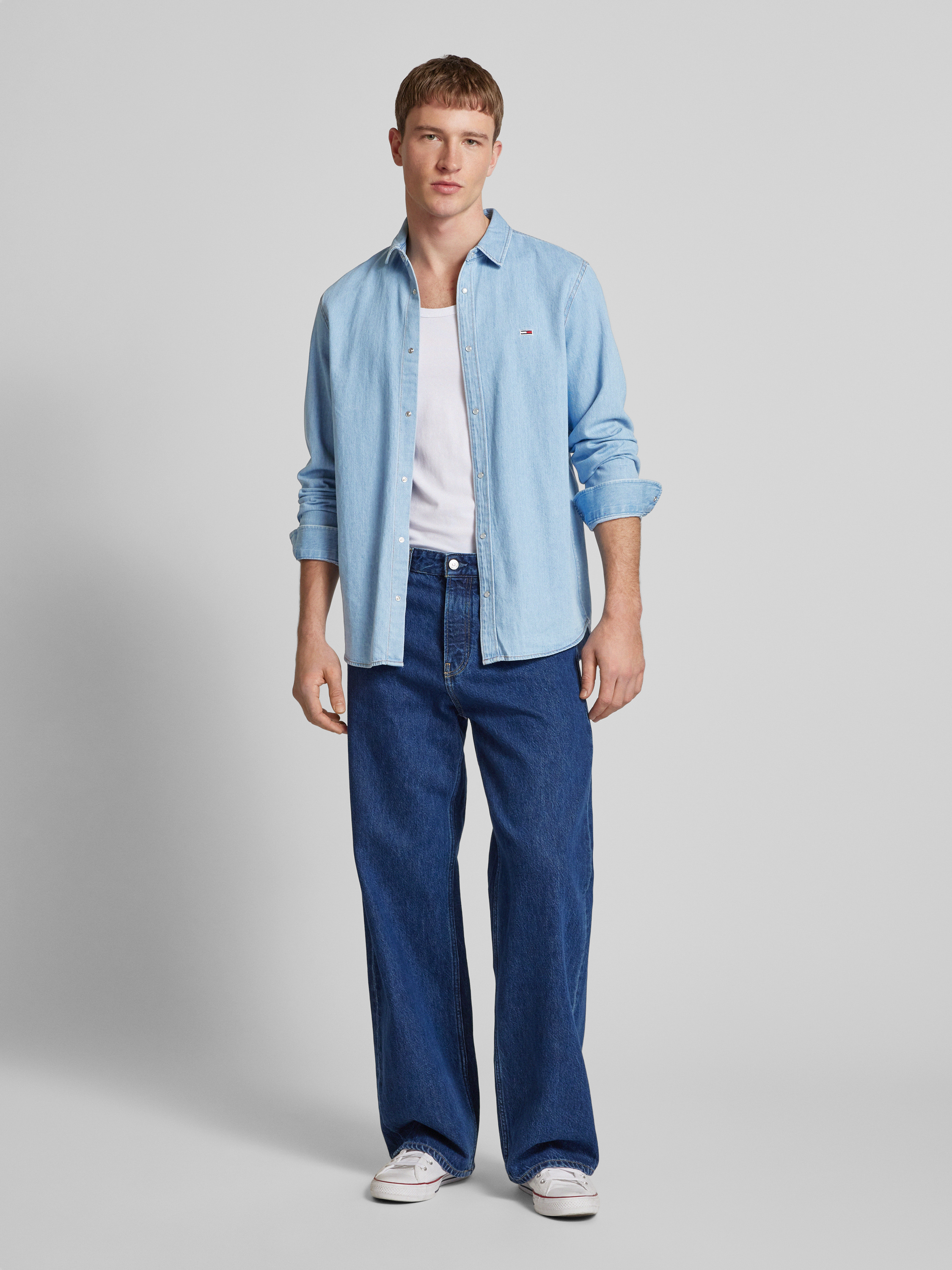 Tommy JeansRegular Fit Jeanshemd mit Logo-Stitching in hellblau