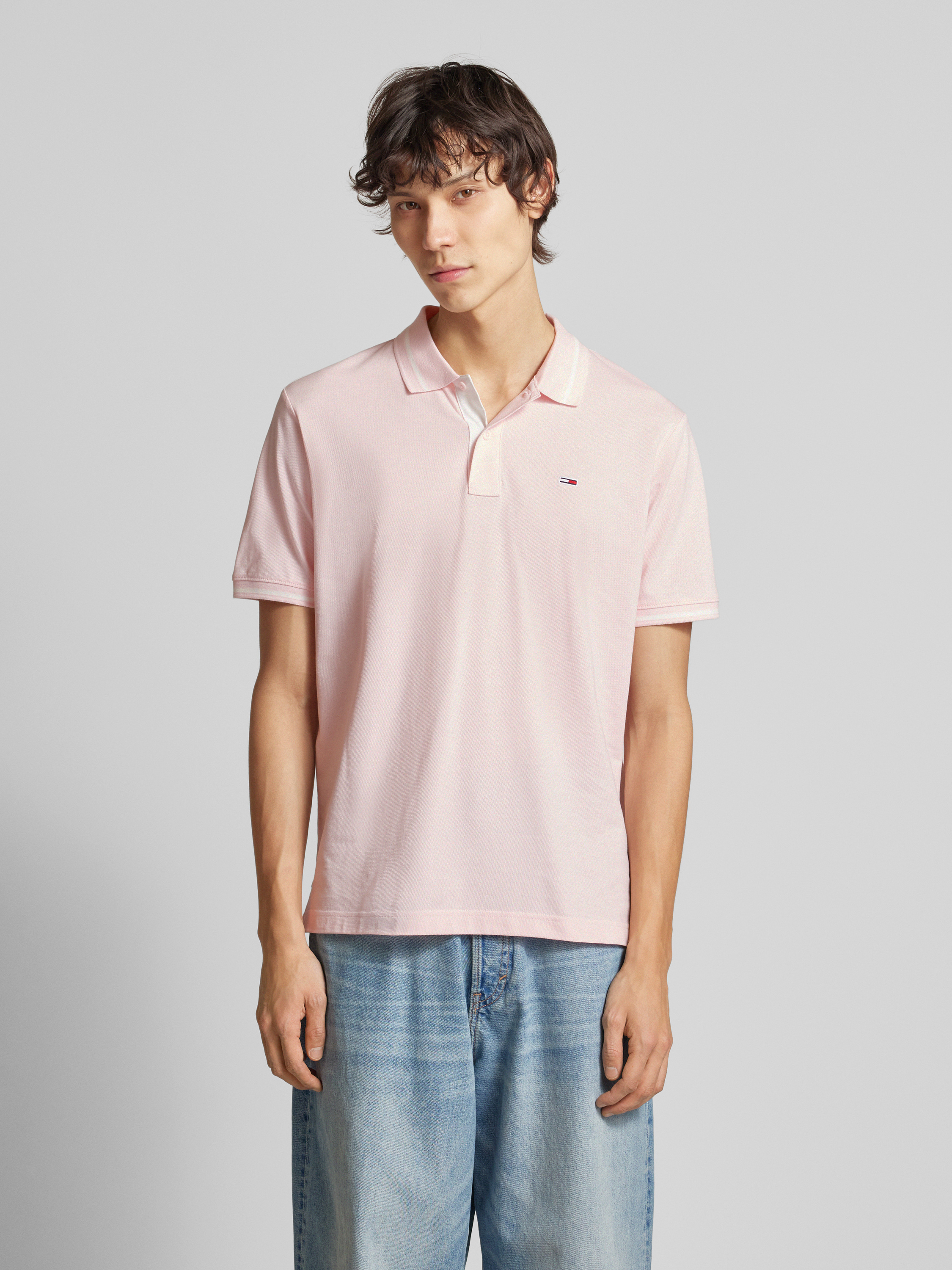 Tommy JeansRegular Fit Poloshirt mit Logo-Stitching in pink
