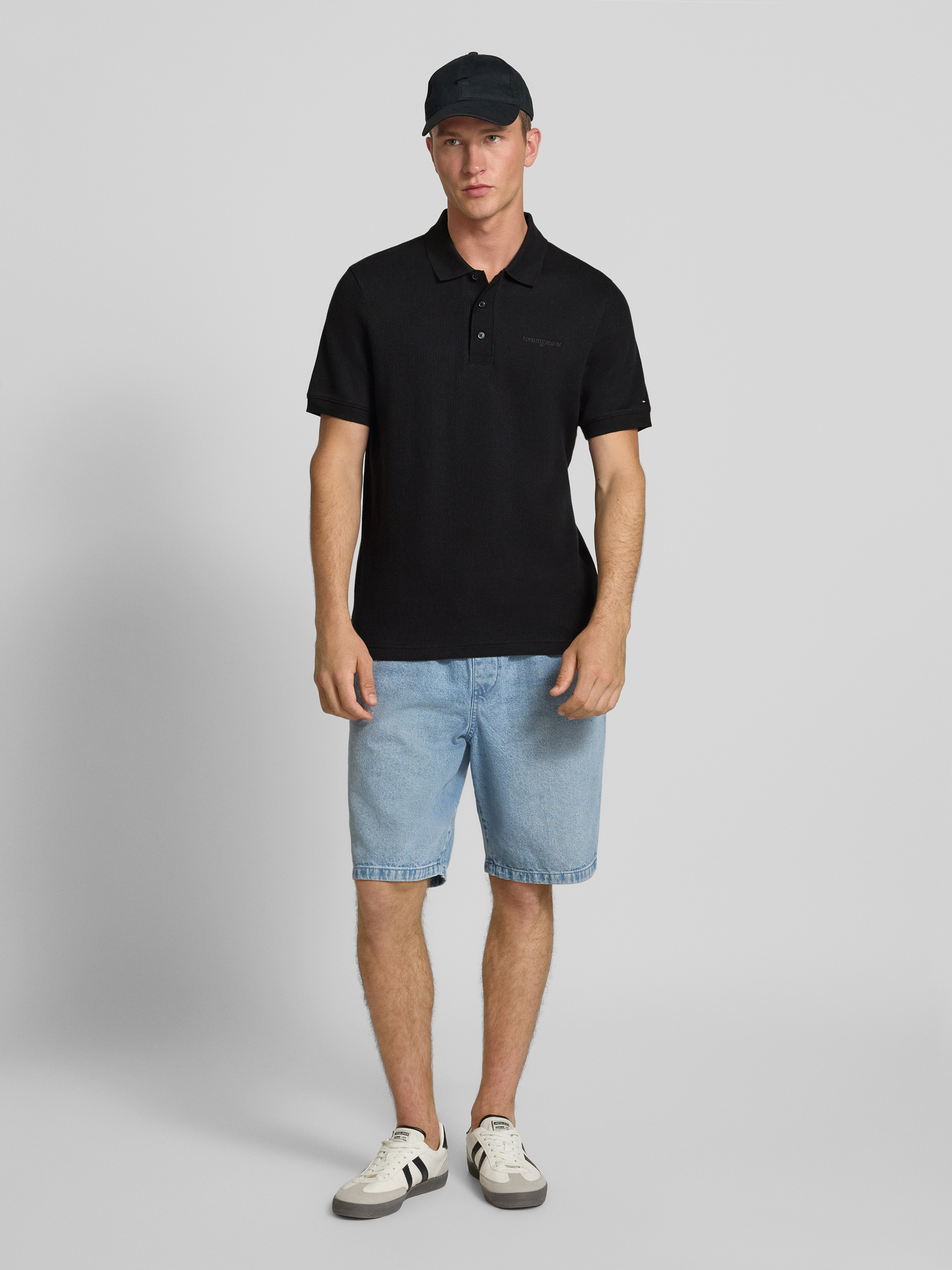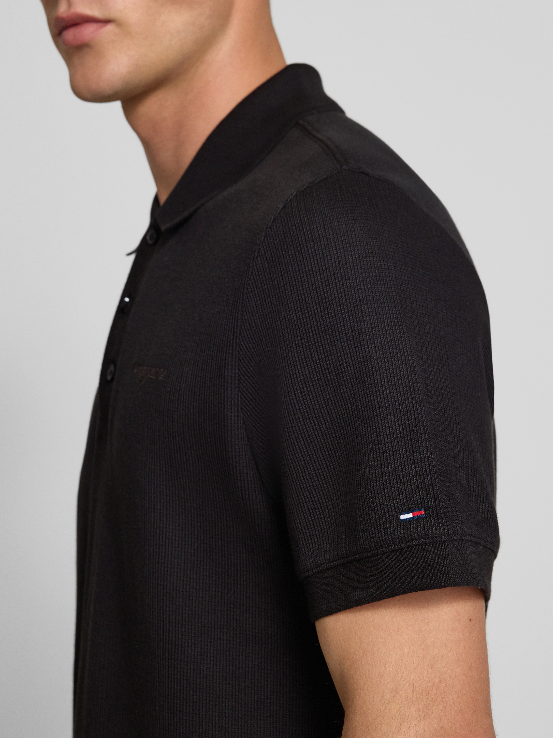 Tommy JeansRegular Fit Poloshirt mit Waffelstruktur in black