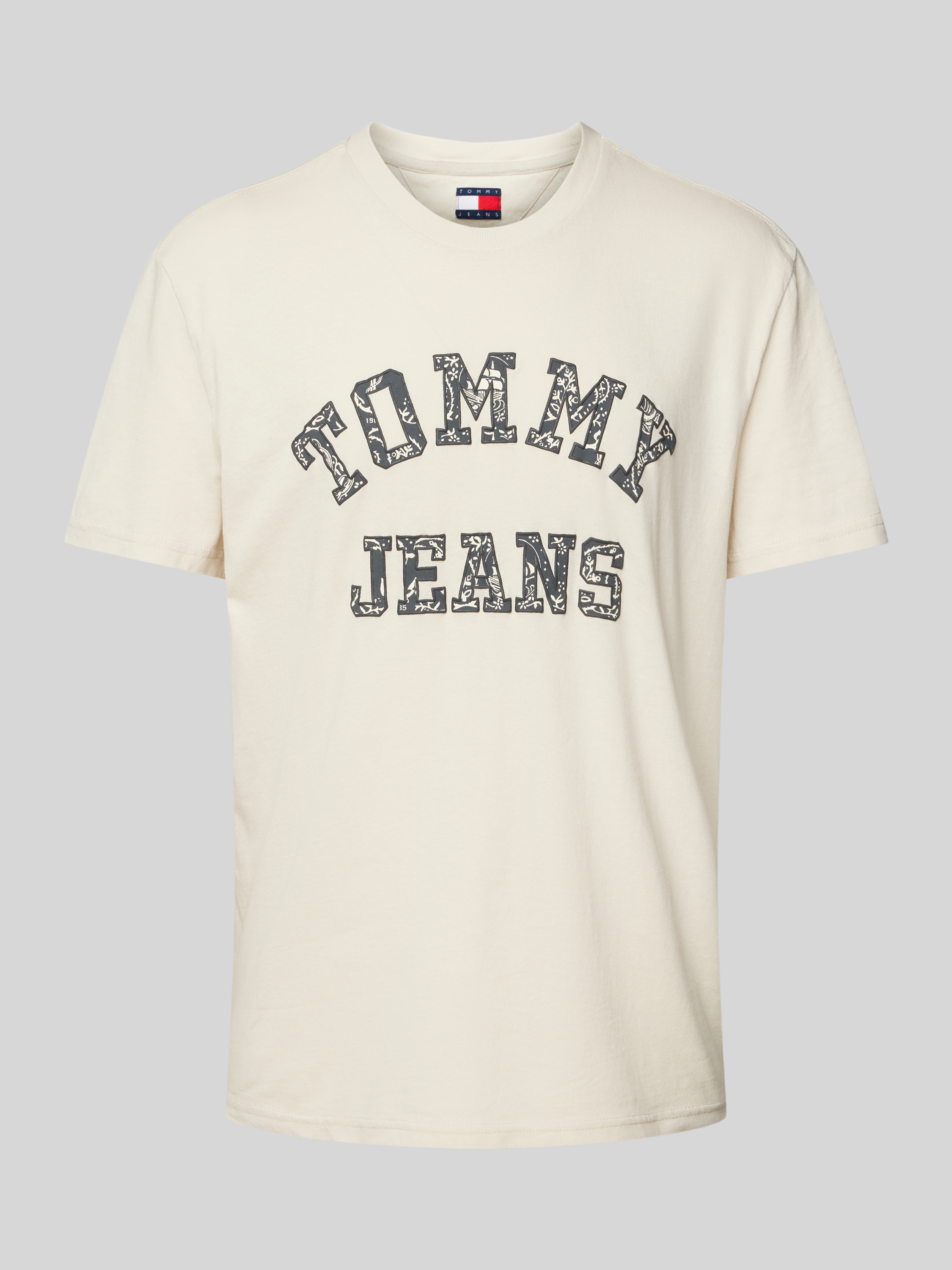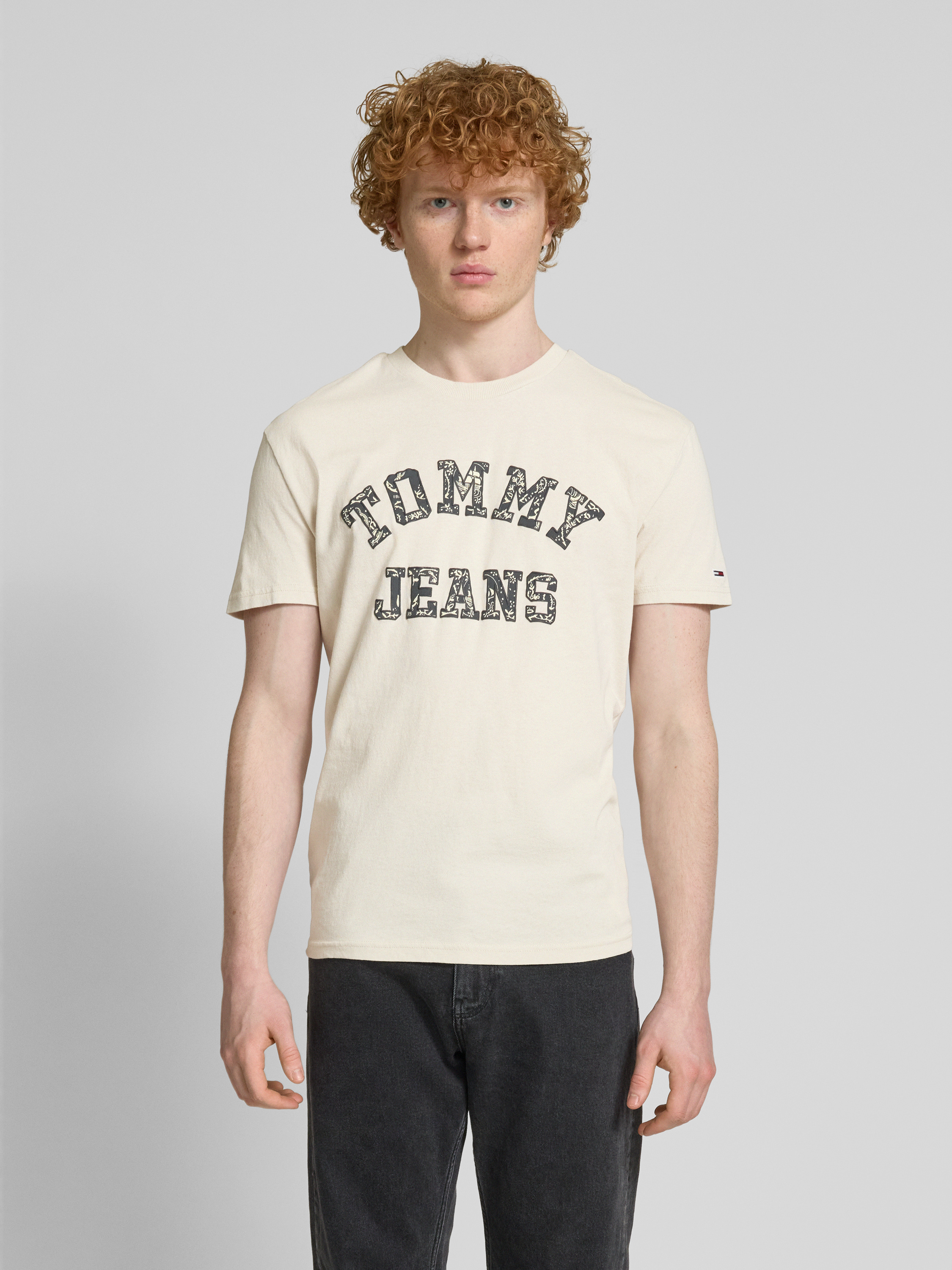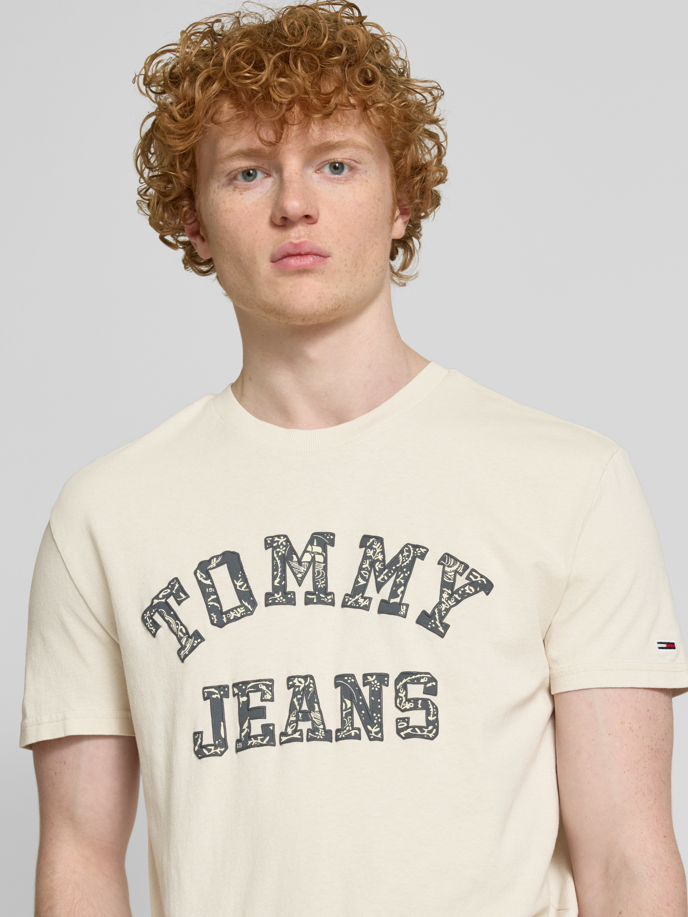 Tommy JeansRegular Fit T-Shirt aus reiner Baumwolle mit gemustertem Label Print in beige