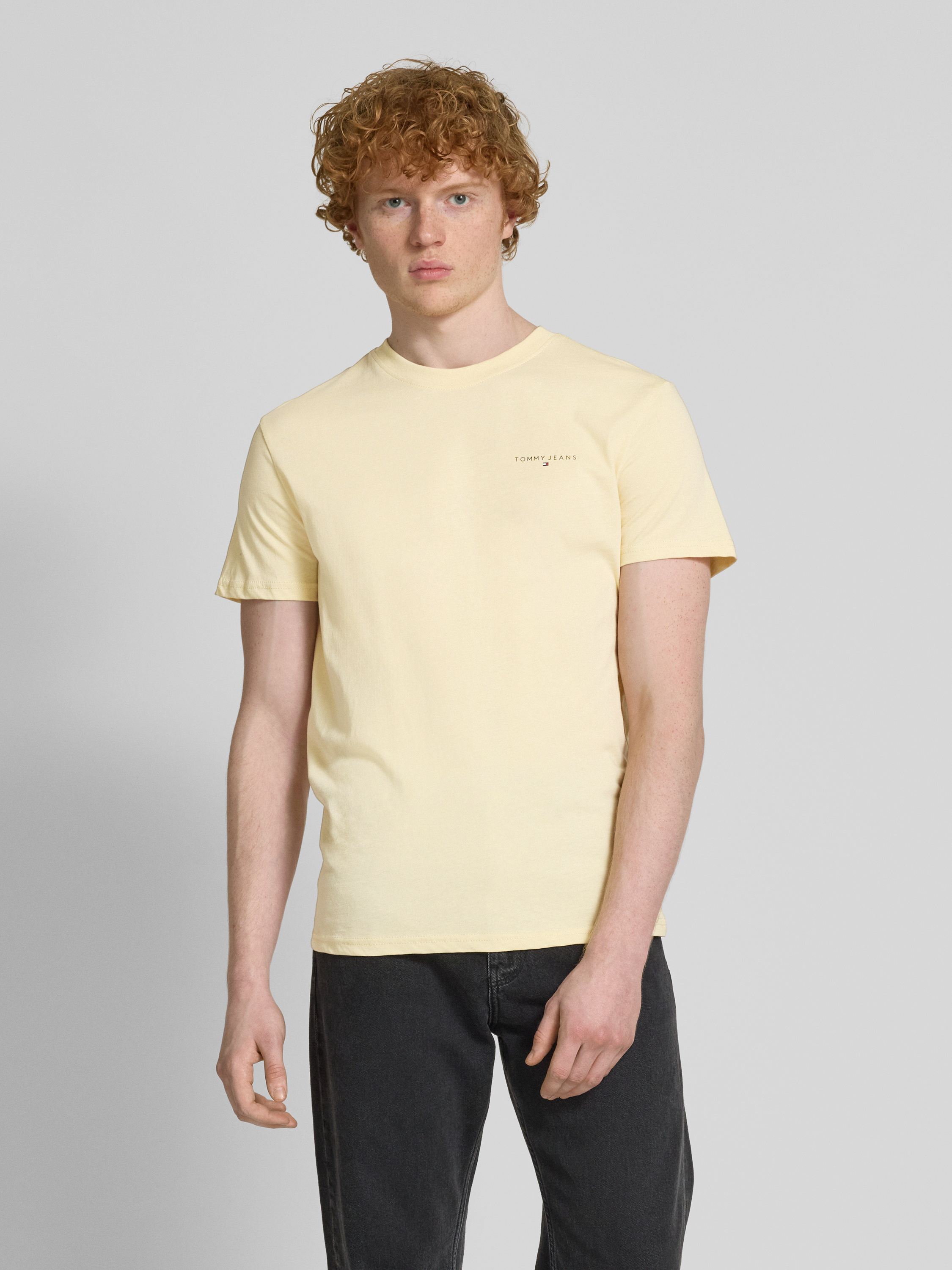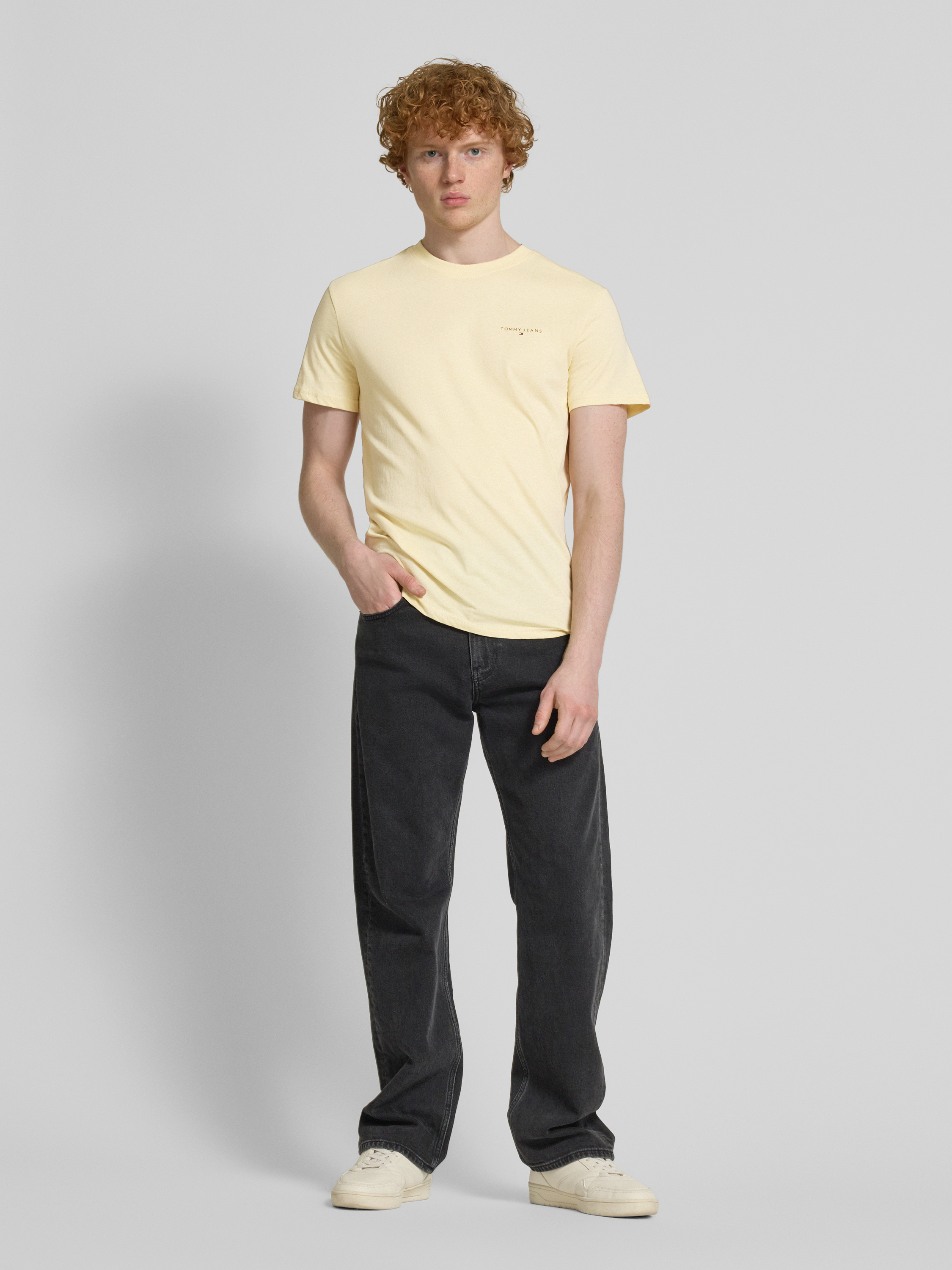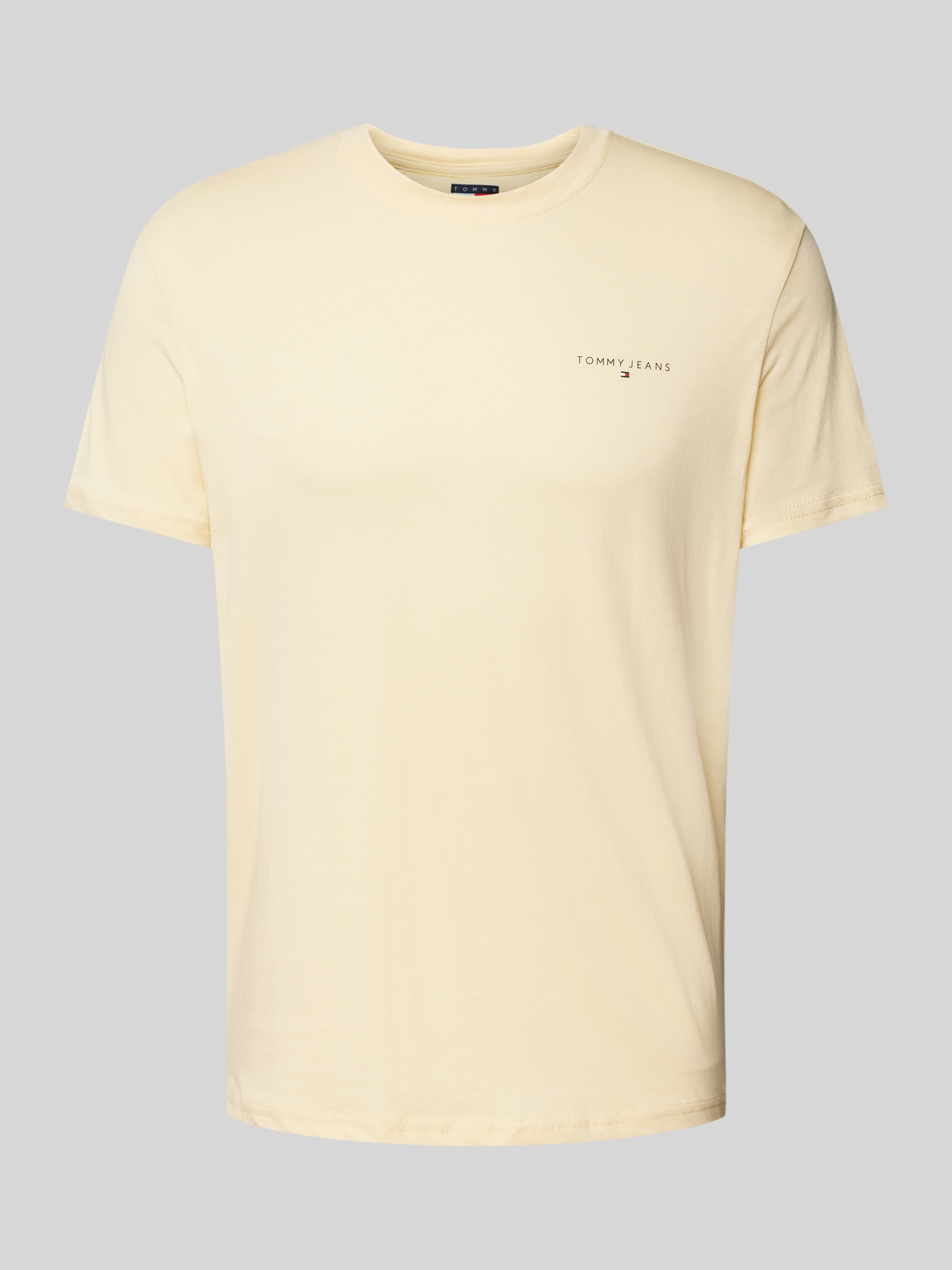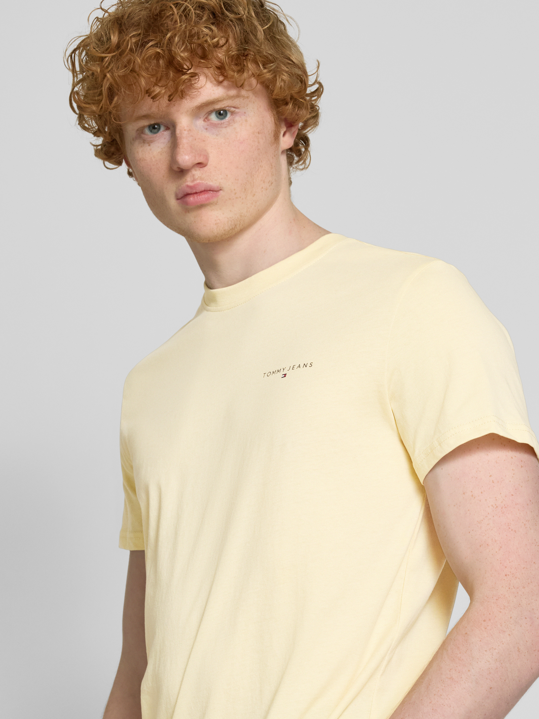 Tommy JeansRegular Fit T-Shirt aus reiner Baumwolle mit Label Print in hellgelb