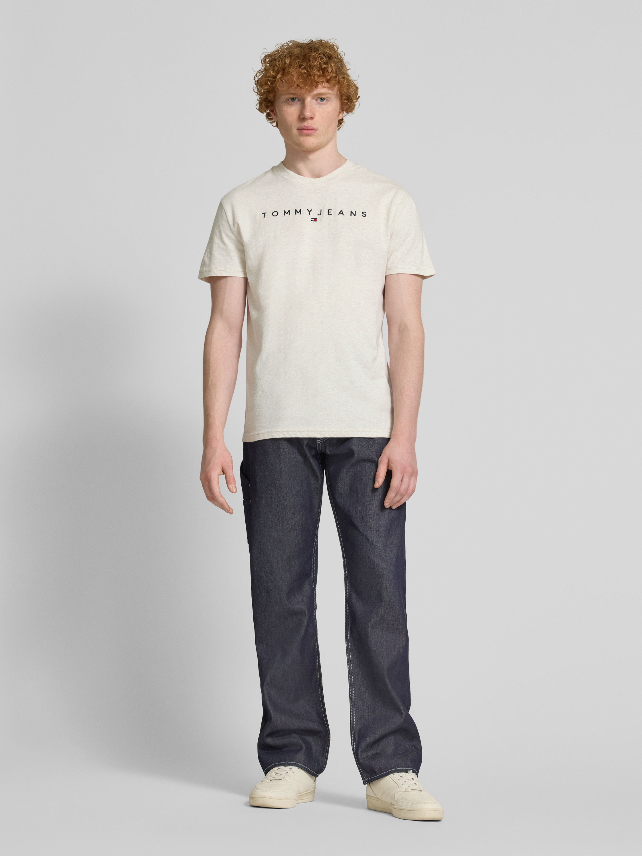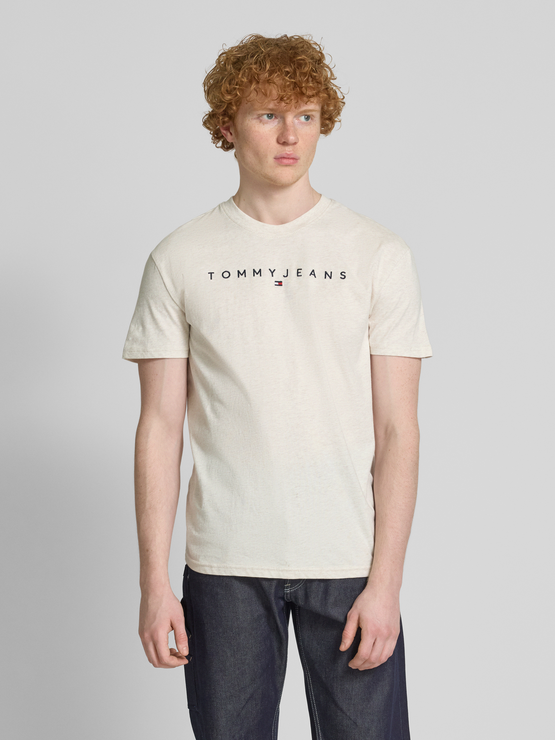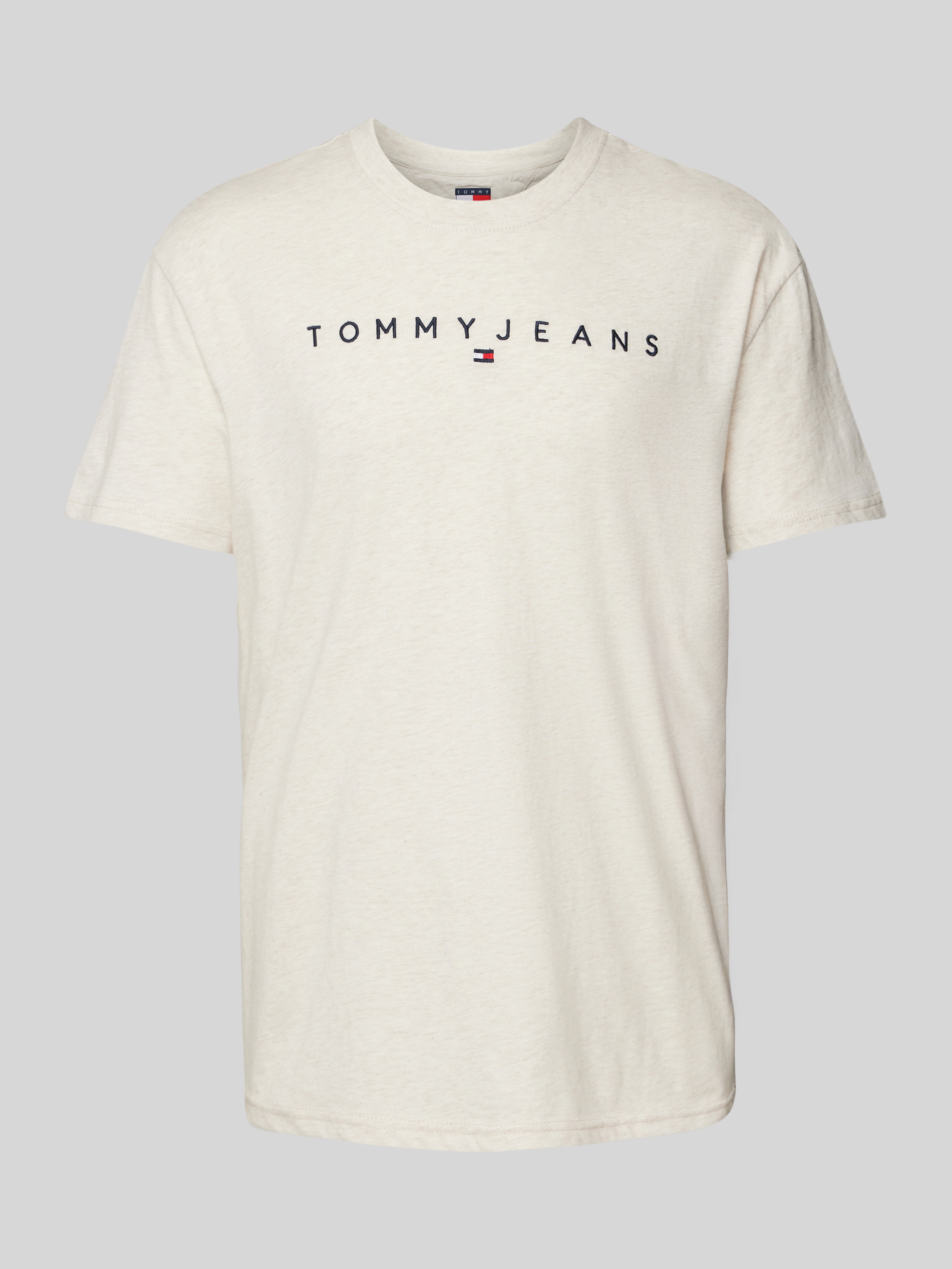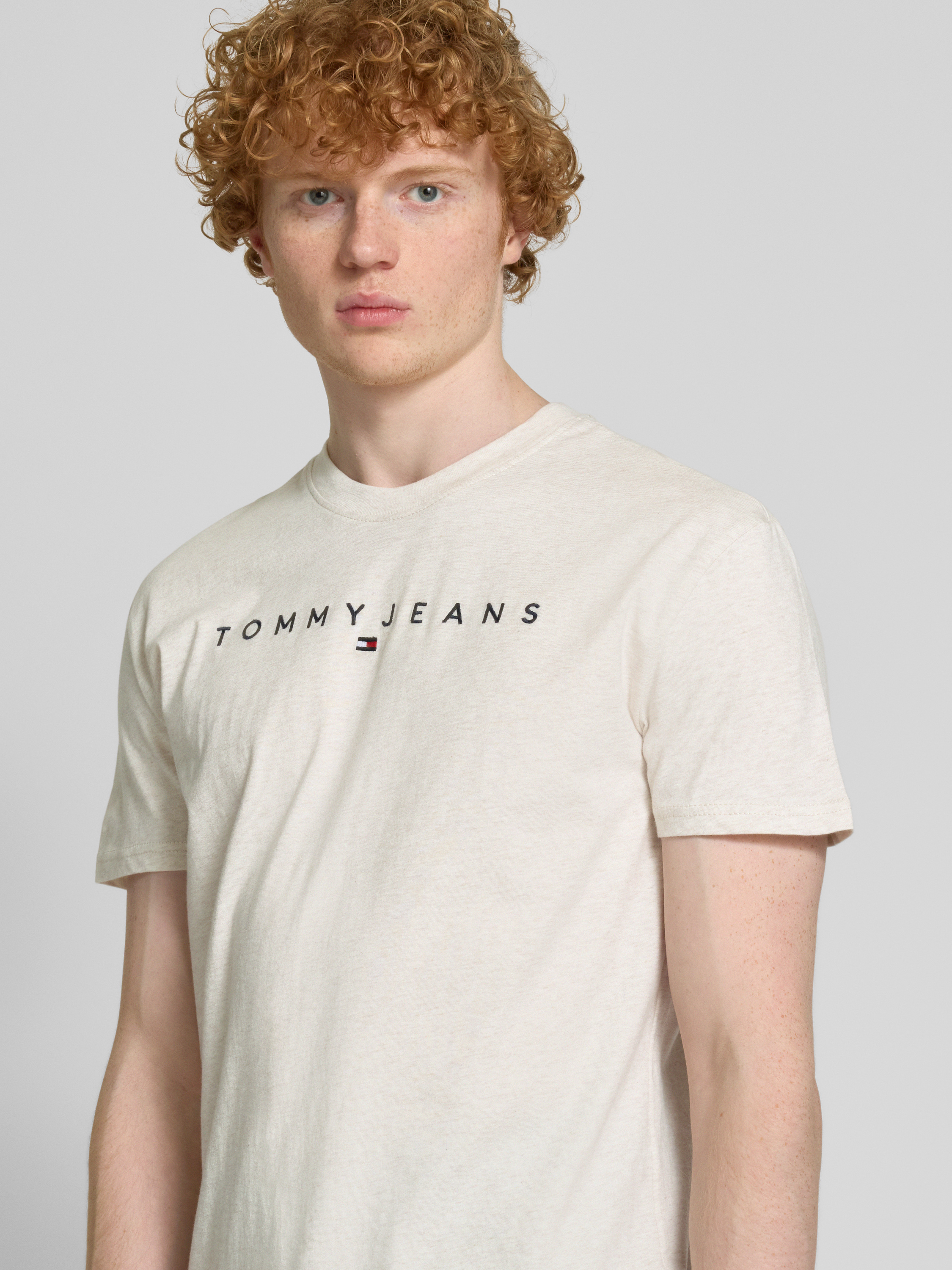 Tommy JeansRegular Fit T-Shirt aus reiner Baumwolle mit Label Stitching in offwhite melange