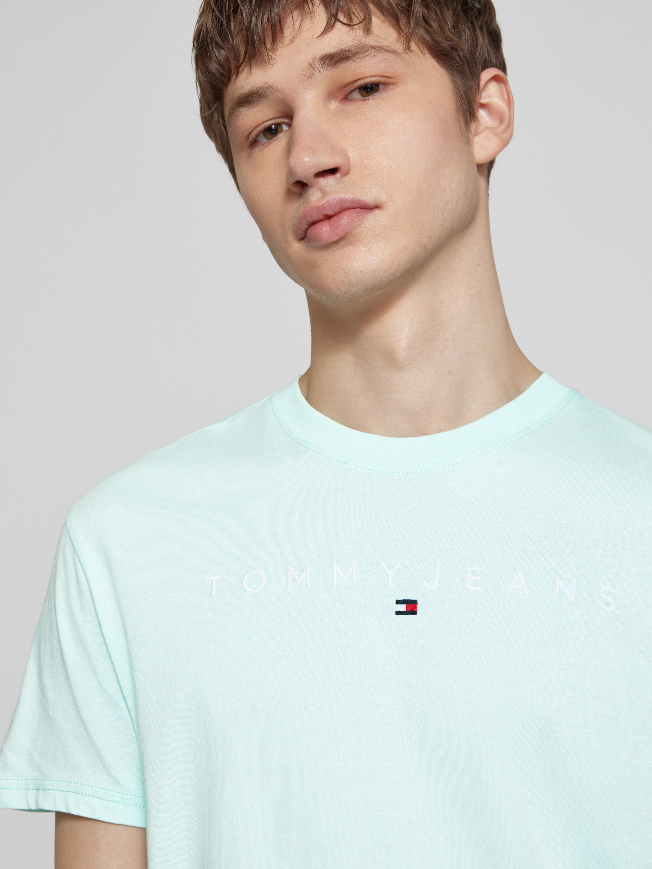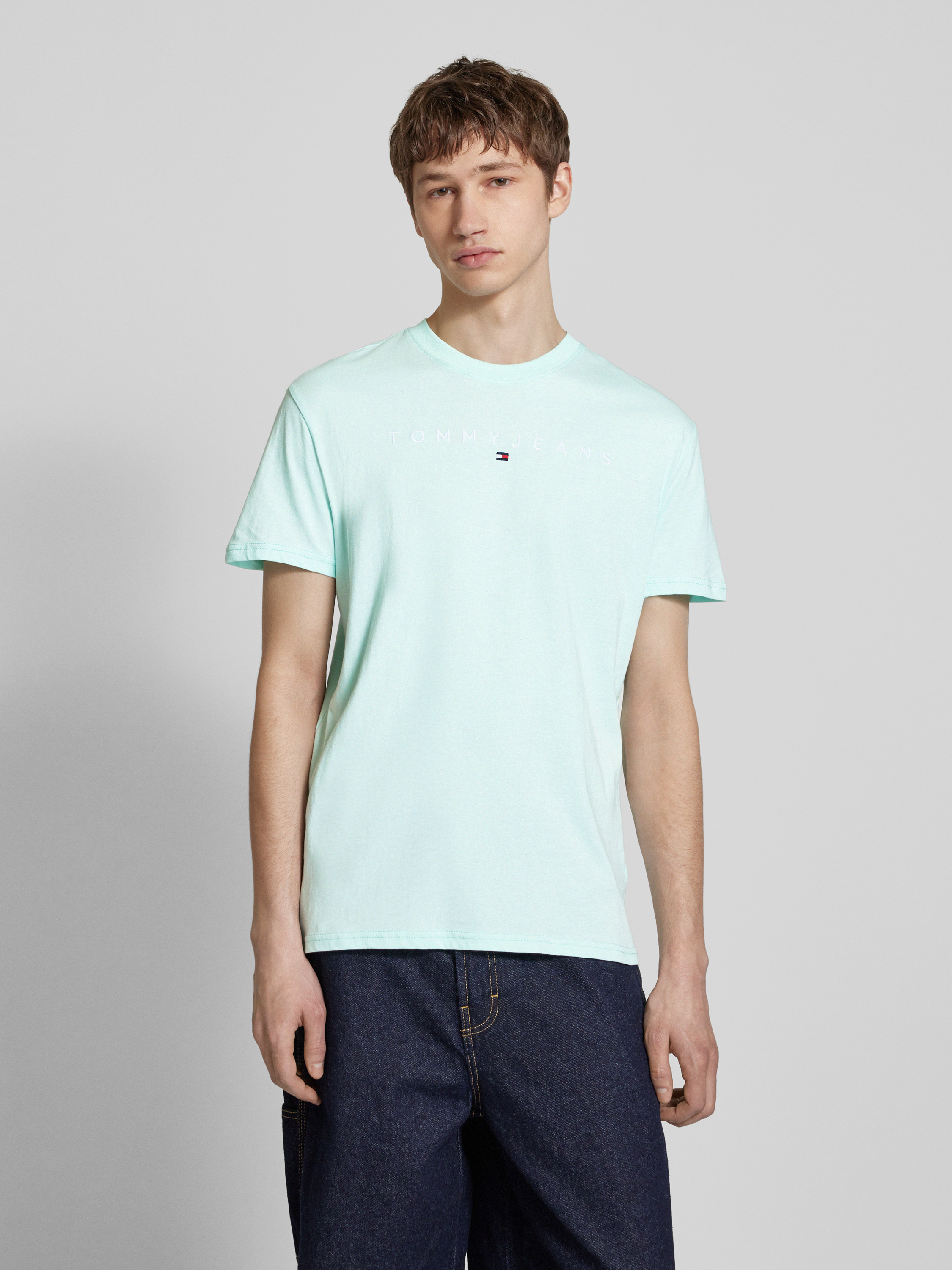 Tommy JeansRegular Fit T-Shirt aus reiner Baumwolle mit Label Stitching in tuerkis