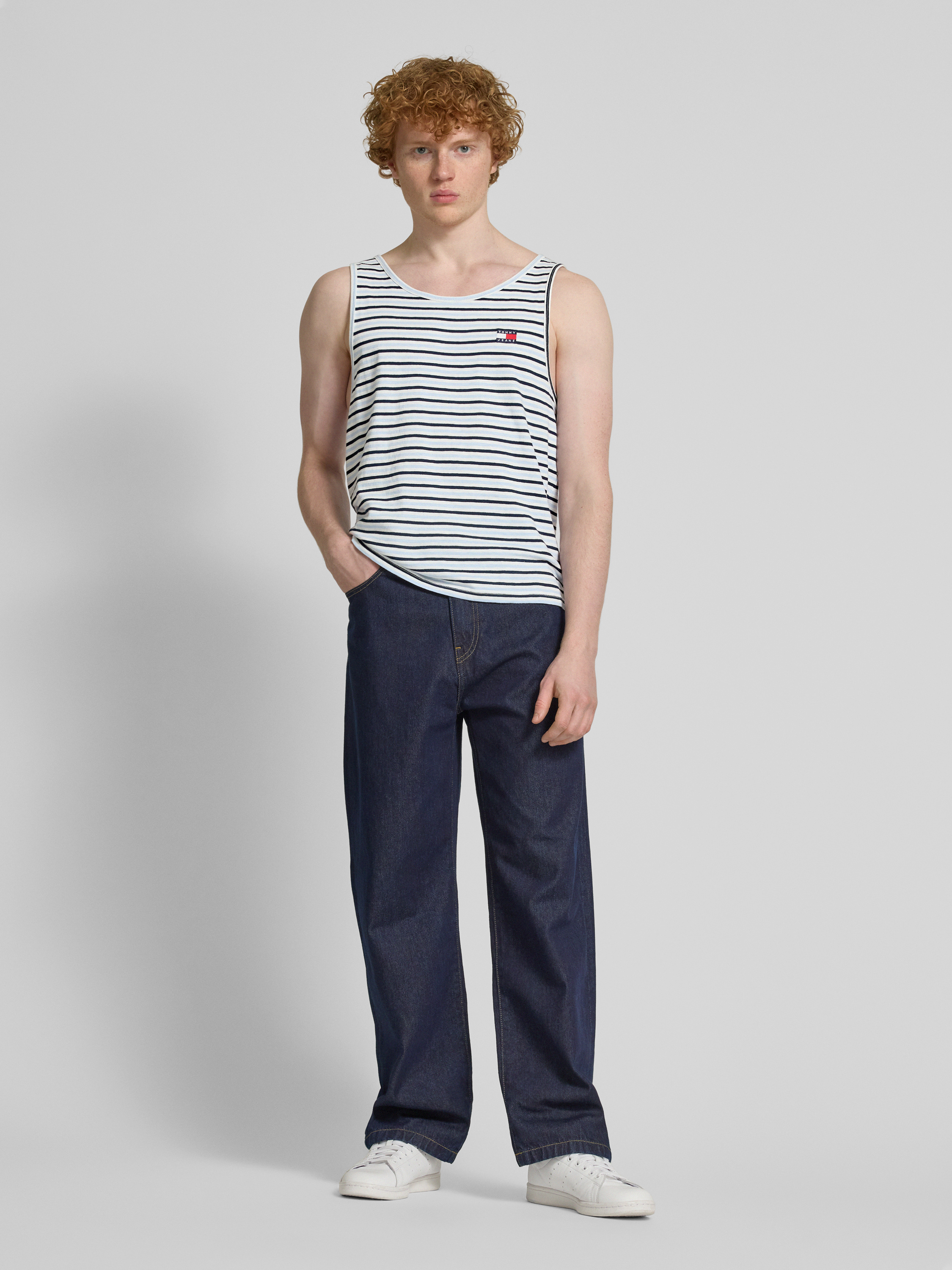 Das Relaxed Fit Tank Top von Tommy Jeans kombiniert ein modernes Allover-Muster mit einem bequemen Rundhalsausschnitt und breiten Trägern. Durch die entspannte Passform eignet es sich ideal für lässige Tage. Aus reiner Baumwolle gefertigt, bietet es ein angenehmes Tragegefühl.