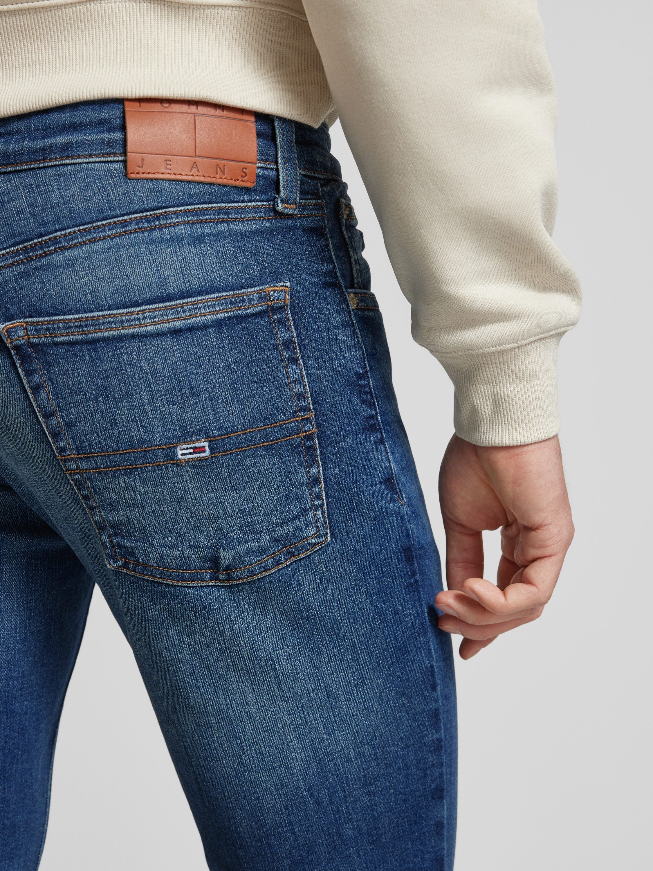 Die Slim Fit Jeans von Tommy Jeans vereinen stilvolle Passform mit Komfort durch den Baumwoll-Mix und Stretch-Anteil. Das klassische 5-Pocket-Design ergänzt den Look, während das dezente Label-Stitching subtile Akzente setzt. Ideal für vielseitige Outfits, bleibt Bewegungsfreiheit erhalten.