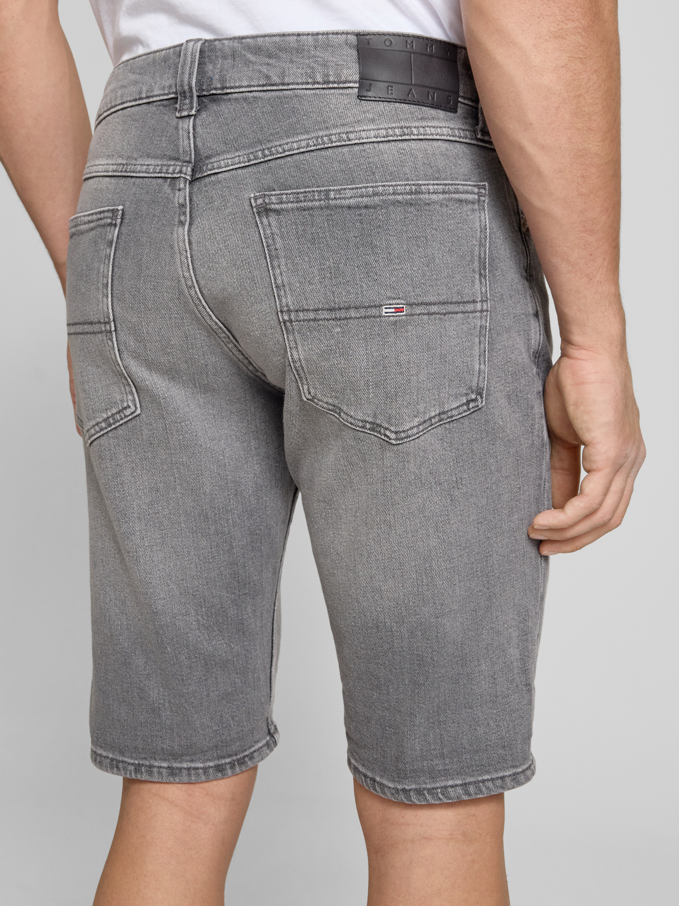 Die Herren Jeansshorts von Tommy Jeans, Modell 'RONNIE', vereinen eine schmale Passform mit einem klassischen 5-Pocket-Design. Durch den Baumwoll-Mix fühlt sich der Stoff angenehm leicht an, was an warmen Tagen für hohen Tragekomfort sorgt. Ein dezentes Label Patch und Logo-Stitching runden das Design ab.