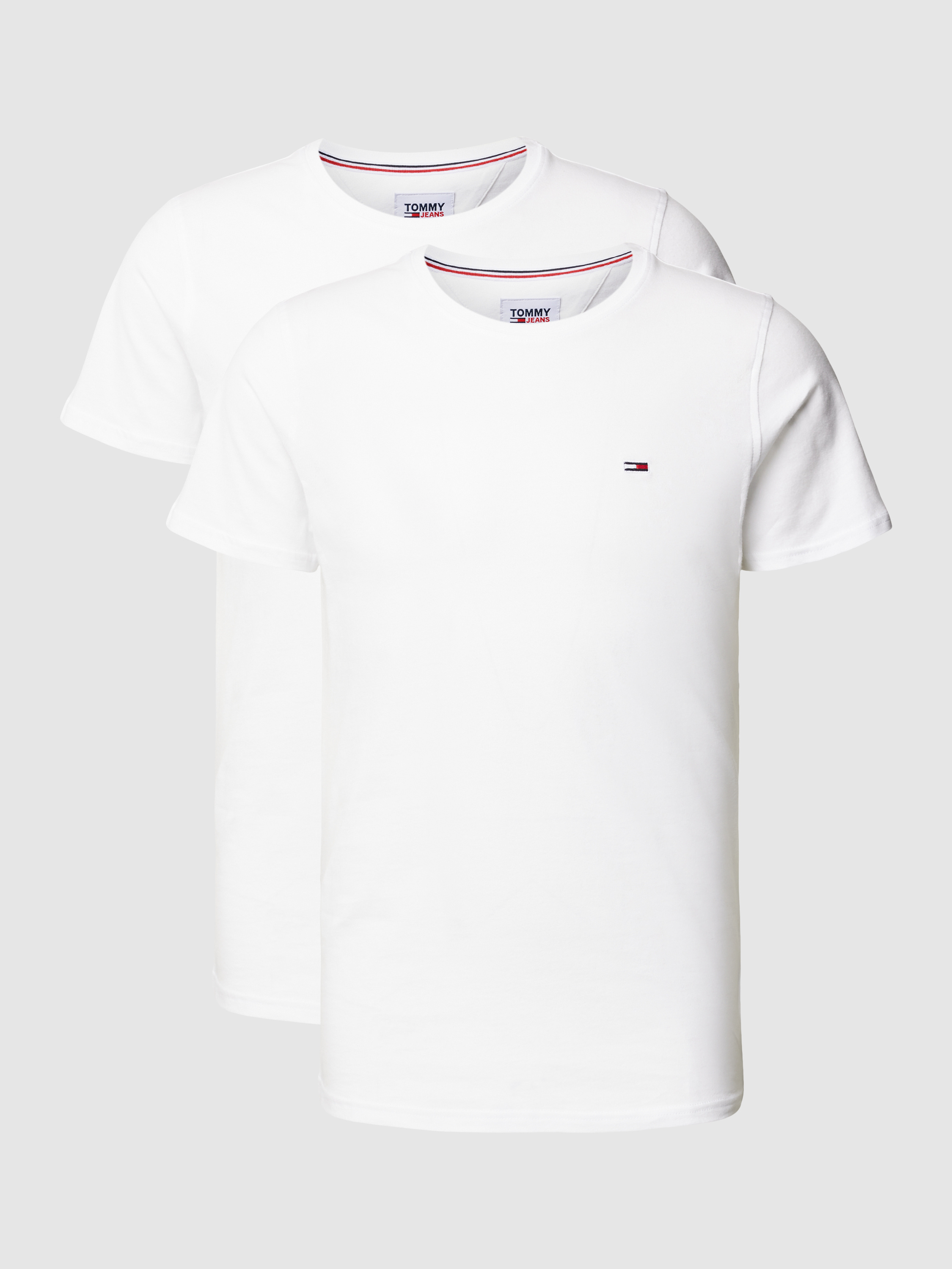 Tommy JeansSlim Fit T-Shirt mit Label-Stitching im 2er-Pack in weiss