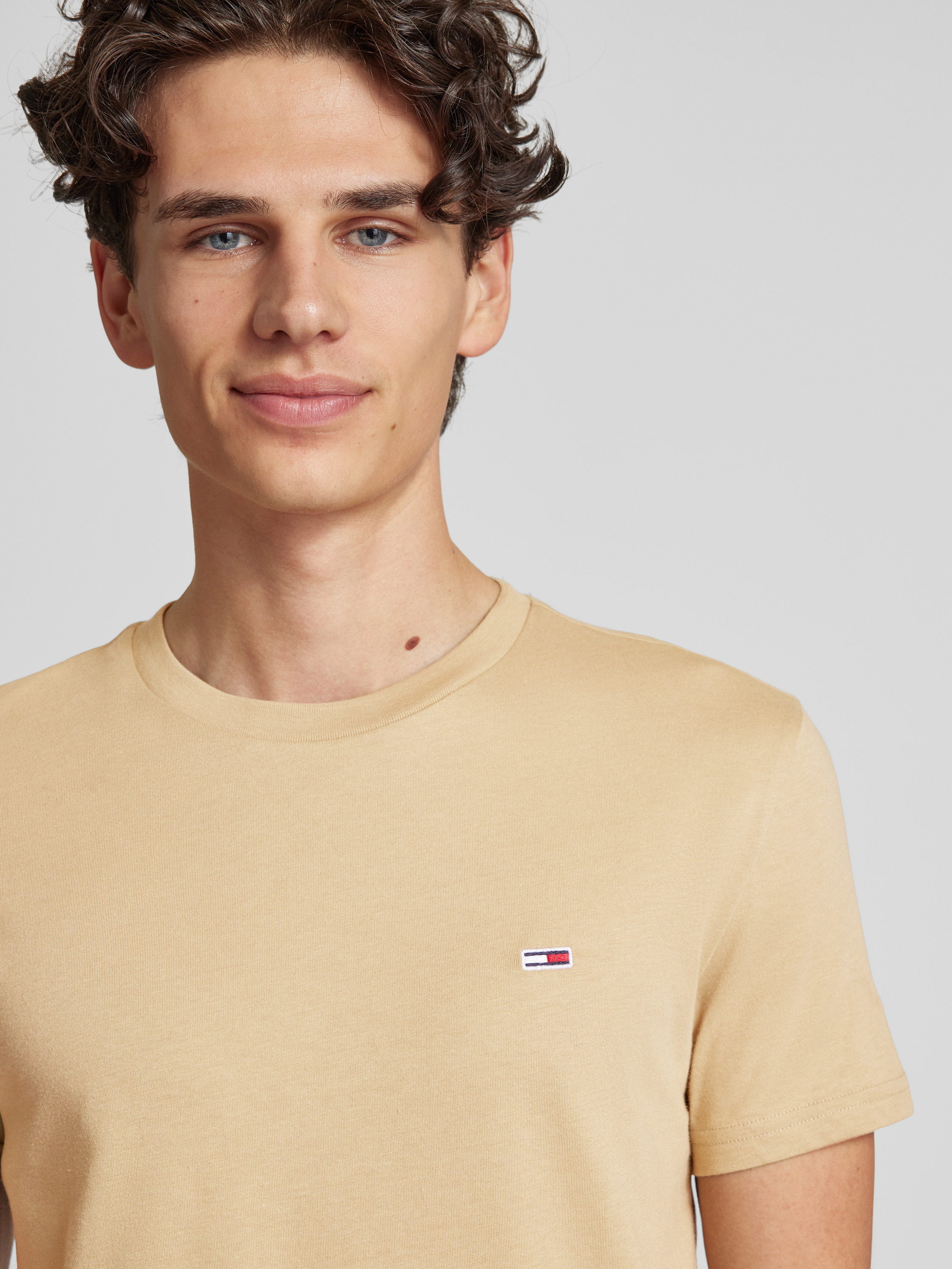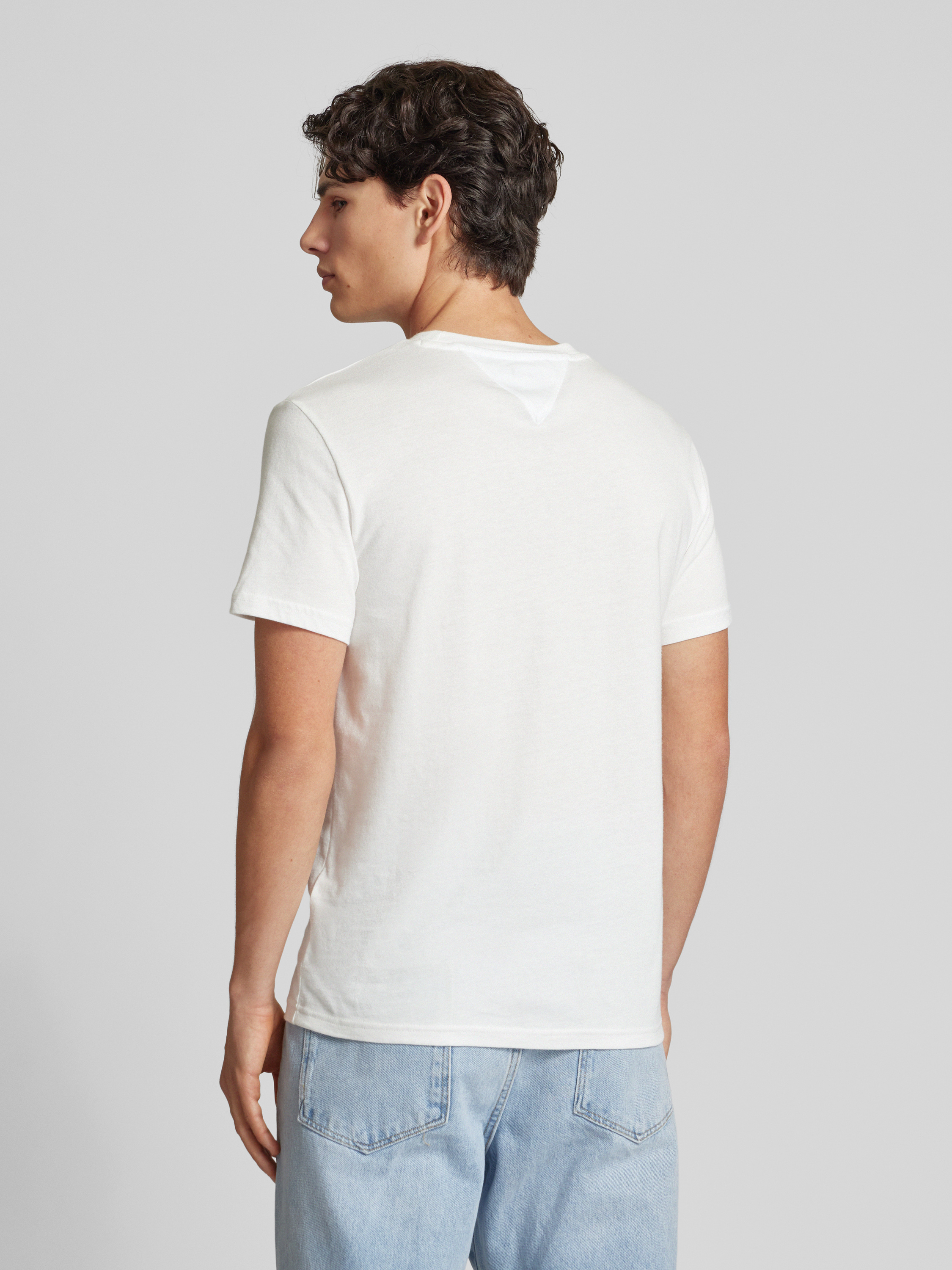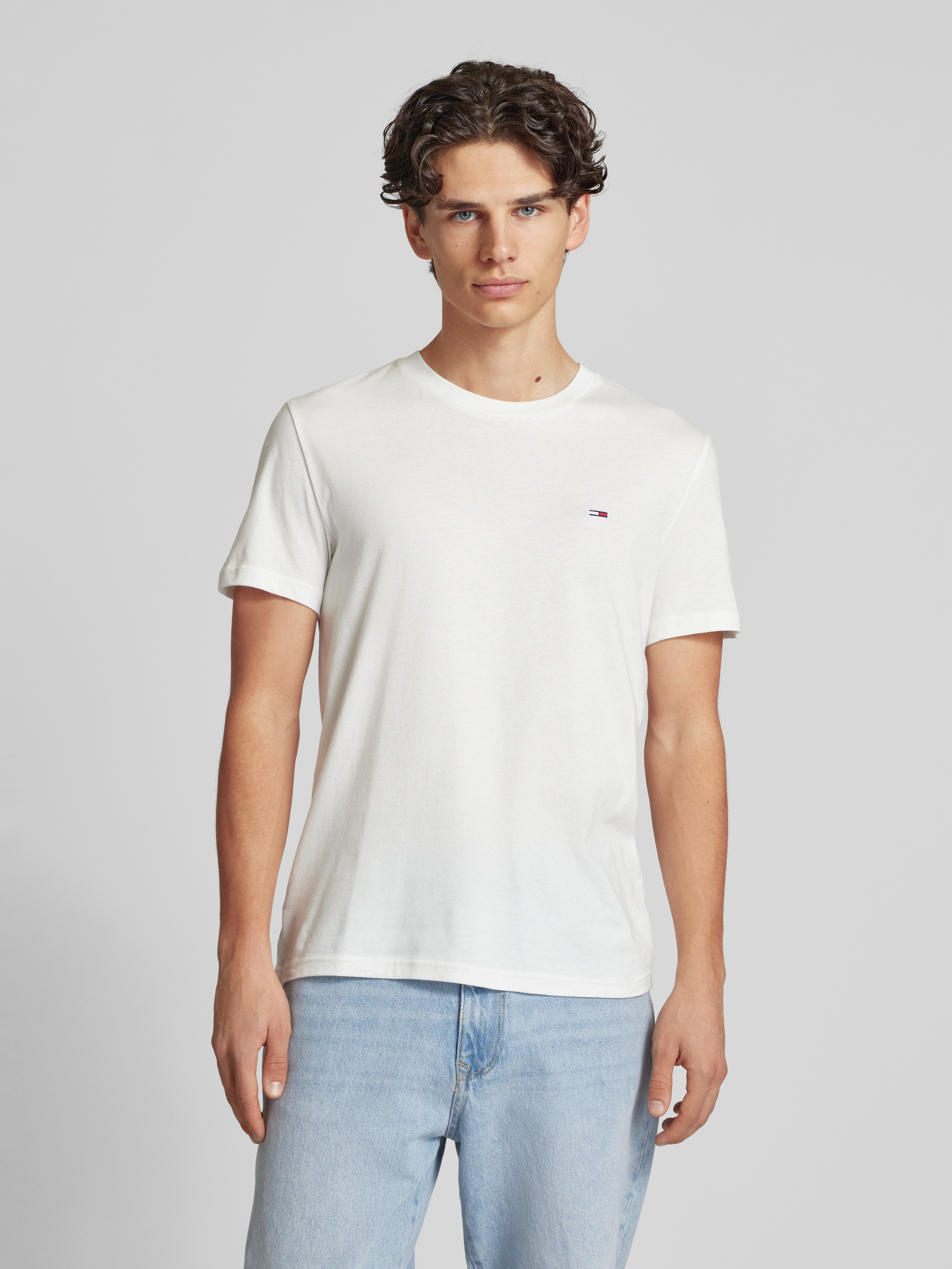 Das Tommy Jeans Herren T-Shirt aus reiner Baumwolle kombiniert einen körpernahen Slim Fit mit einem dezenten Logo-Stitching, wodurch es sich ideal für einen stilvollen, alltäglichen Look eignet. Der Rundhalsausschnitt sorgt für zusätzlichen Tragekomfort und eine klassische Silhouette.