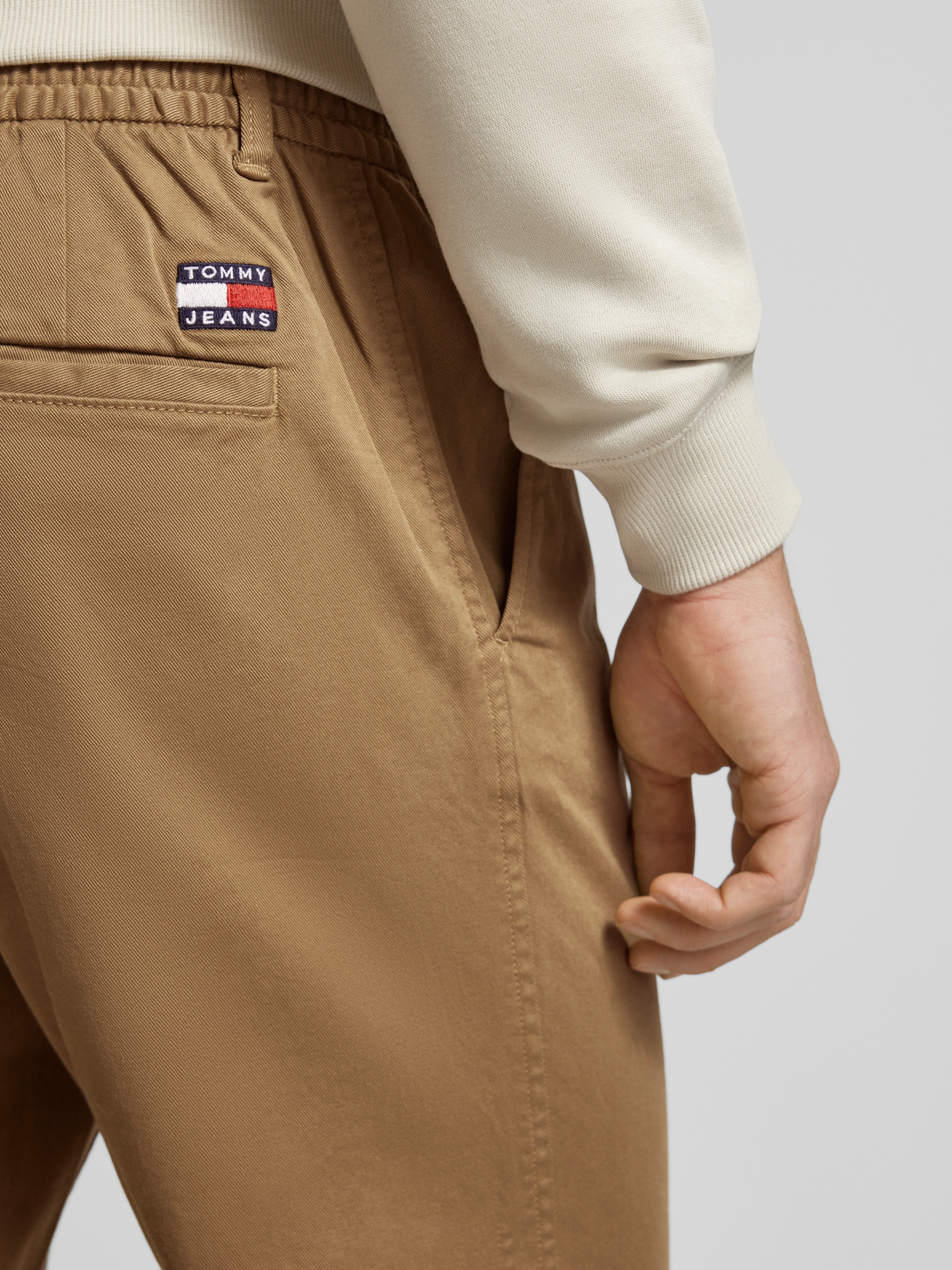 Die Stoffhose von Tommy Jeans, gefertigt aus einem angenehmen Baumwoll-Elasthan-Mix, zeichnet sich durch ihren geraden Schnitt aus. Der elastische Bund sorgt für hohen Tragekomfort, während französische Eingrifftaschen und Gesäßtaschen praktische Details bieten. Ideal für einen entspannten, stilvollen Auftritt.