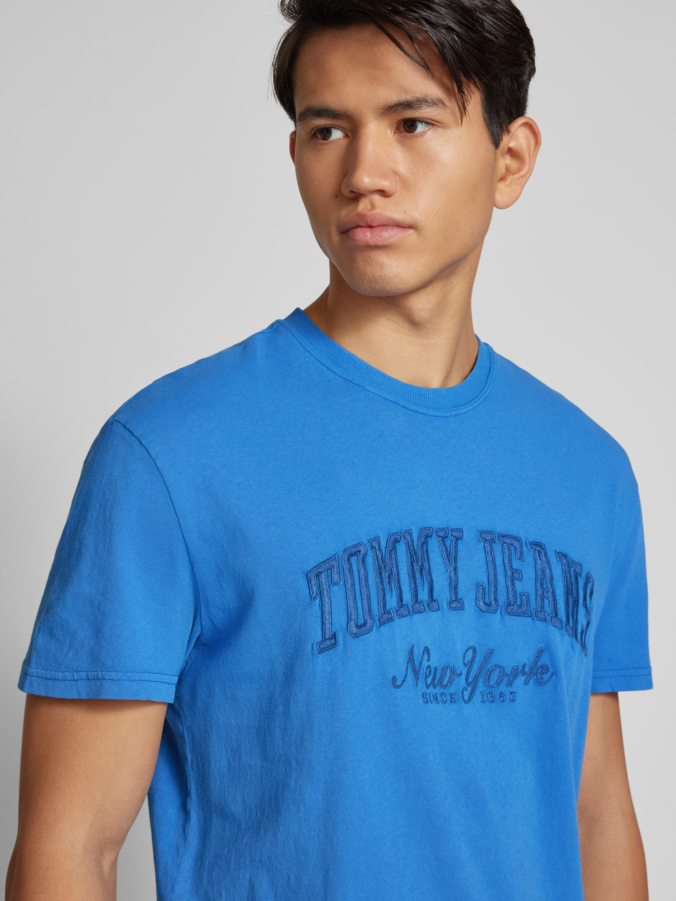 Das Herren T-Shirt von Tommy Jeans vereint zeitloses Design mit angenehmem Tragekomfort. Gefertigt aus reiner Baumwolle und im Regular Fit geschnitten, bietet es Bewegungsfreiheit und ein weiches Hautgefühl. Dezente Label-Details und ein gerippter Rundhalsausschnitt runden den Look ab.