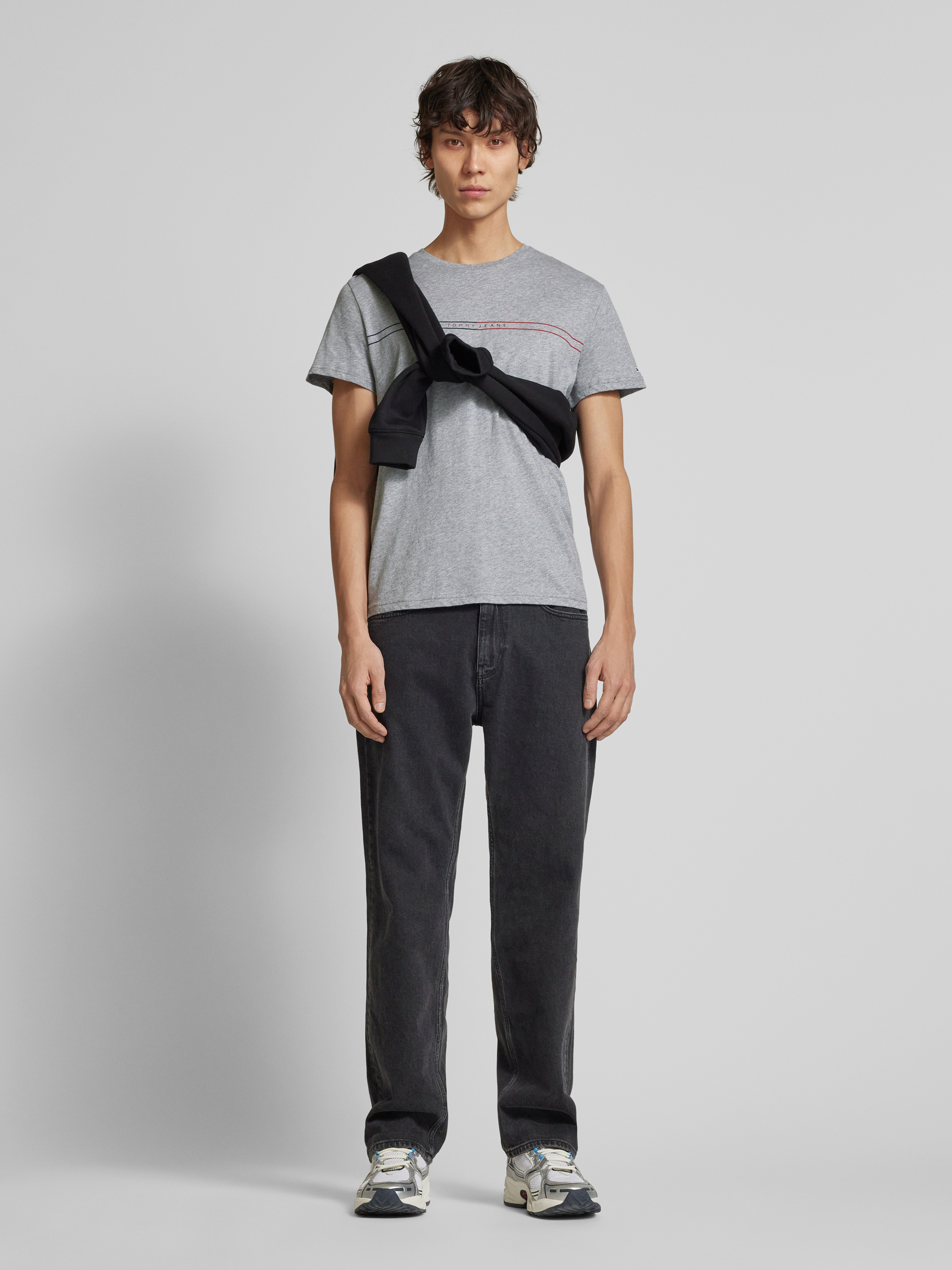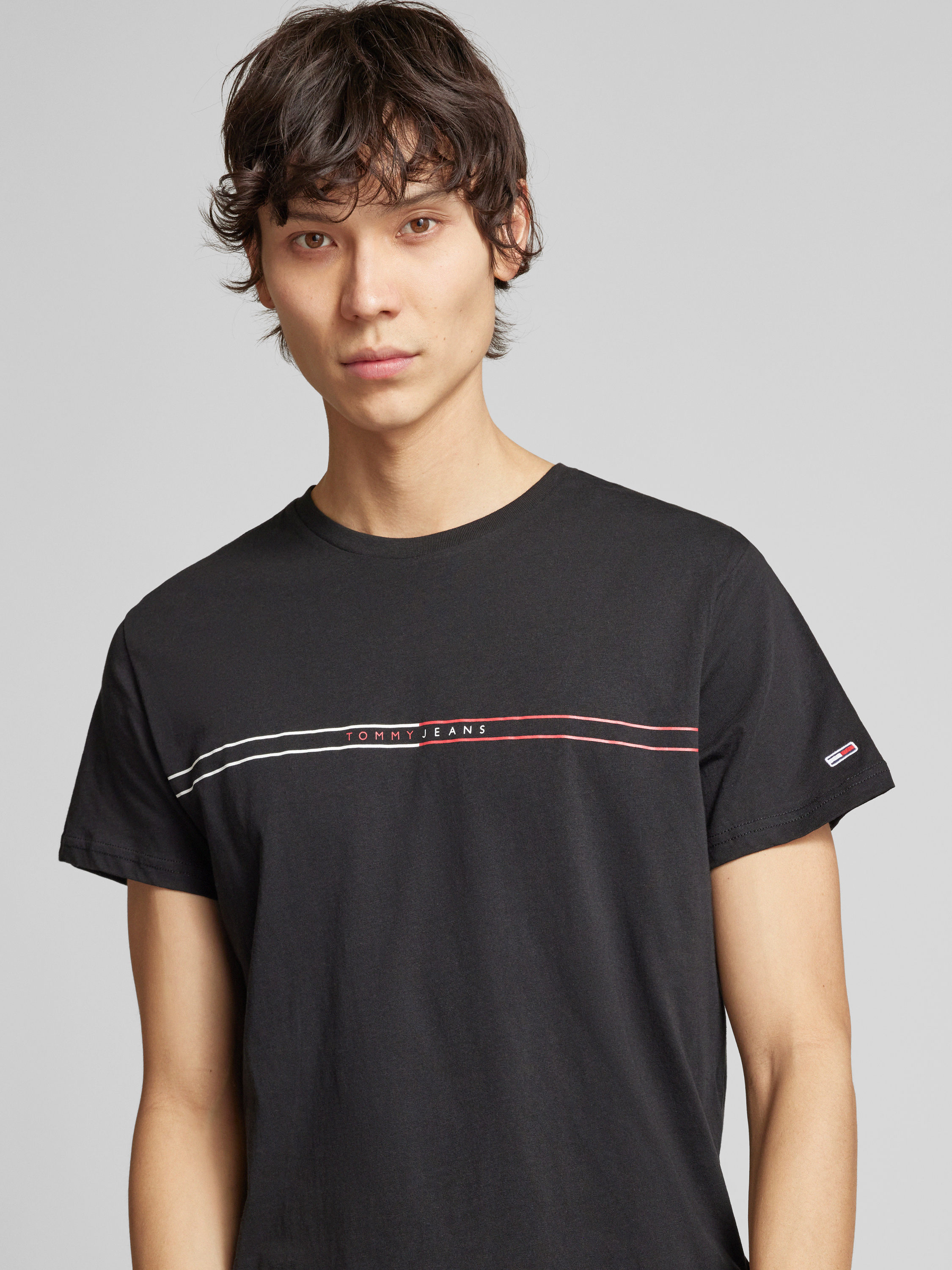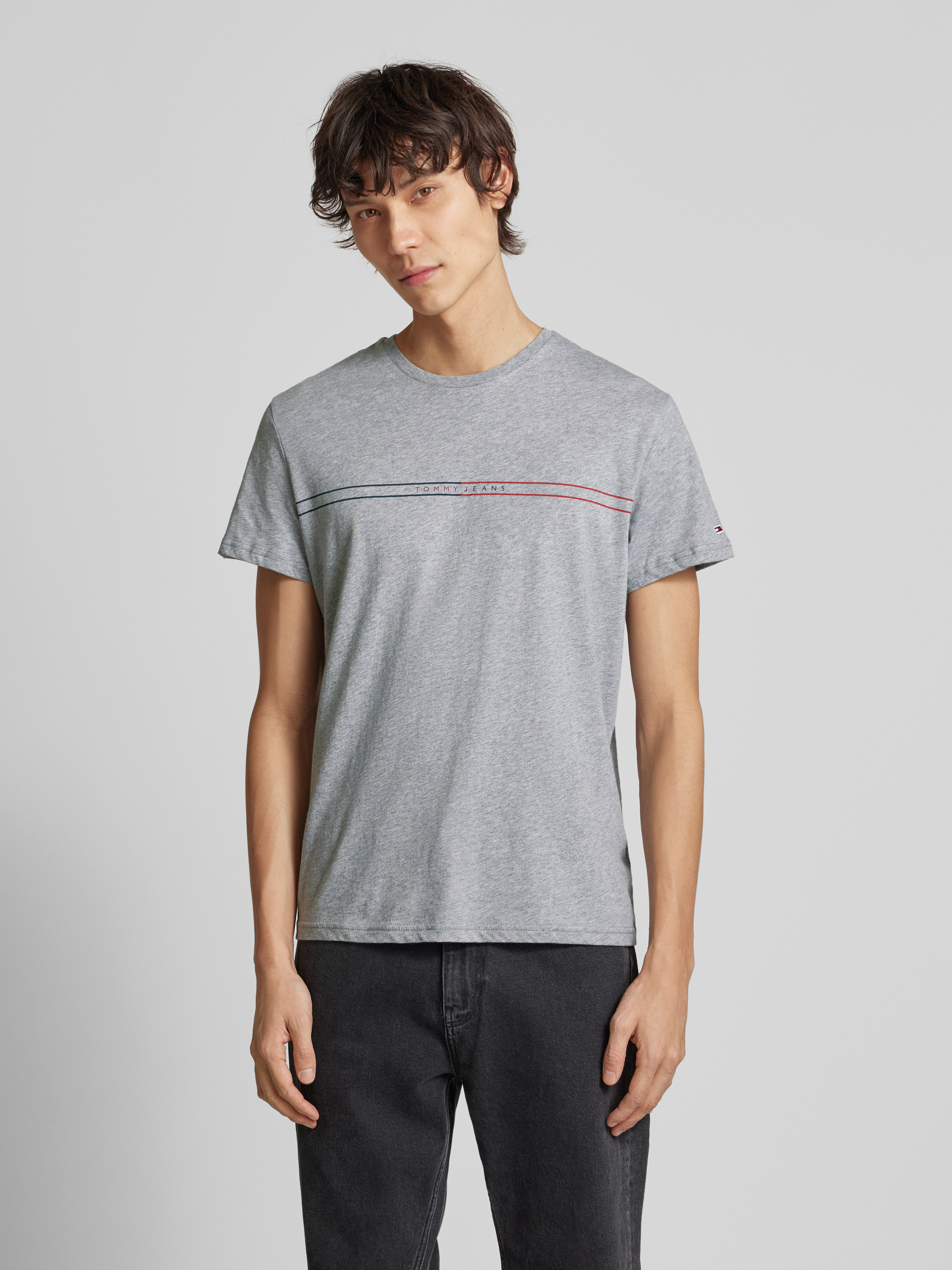 Das Herren T-Shirt von Tommy Jeans, gefertigt aus reiner Baumwolle, bietet mit seinem Regular Fit eine bequeme Passform. Der gerippte Rundhalsausschnitt und der auffällige Label-Print verleihen dem T-Shirt einen modernen Look, der vielseitig kombinierbar ist. Ideal für einen lässigen, stilbewussten Alltag.