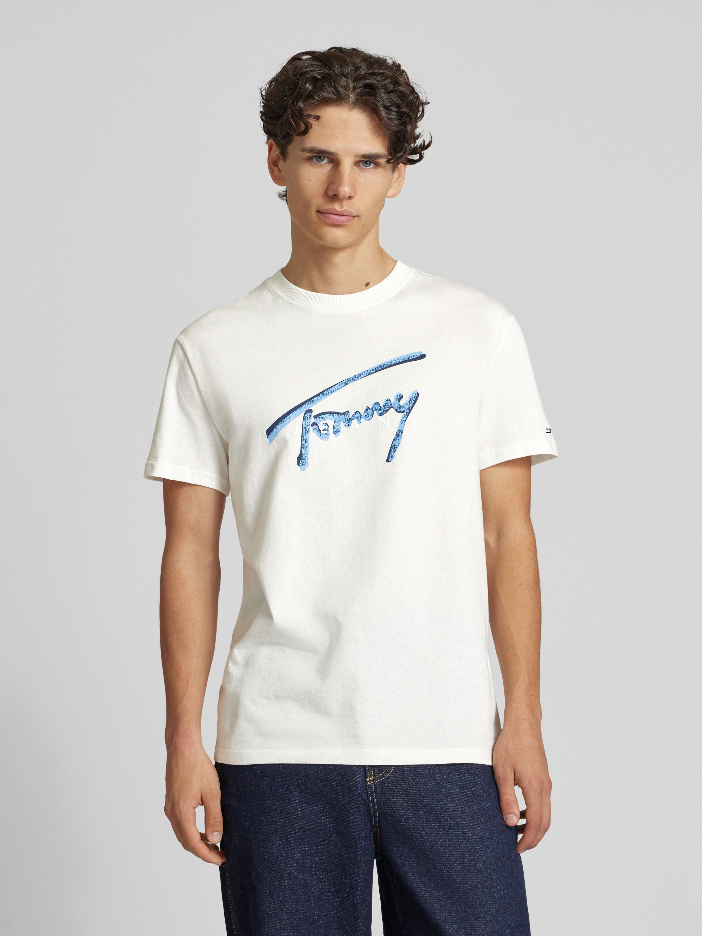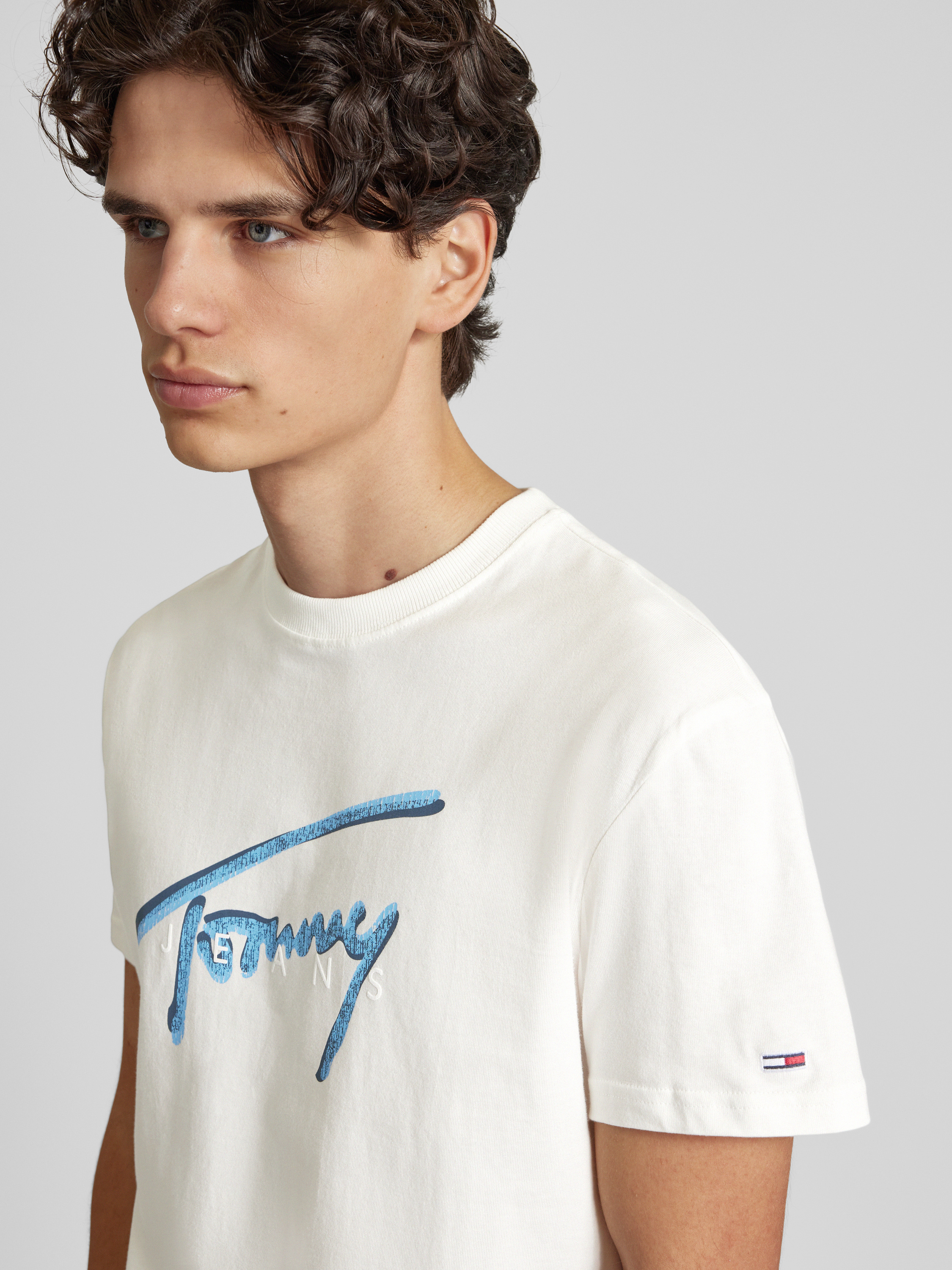 Das Herren T-Shirt von Tommy Jeans aus reiner Baumwolle zeichnet sich durch seinen Slim Fit und den bequemen Rundhalsausschnitt aus. Mit seinem auffälligen Label-Print eignet es sich ideal für einen lässigen und modischen Look. Man schätzt den angenehmen Tragekomfort.