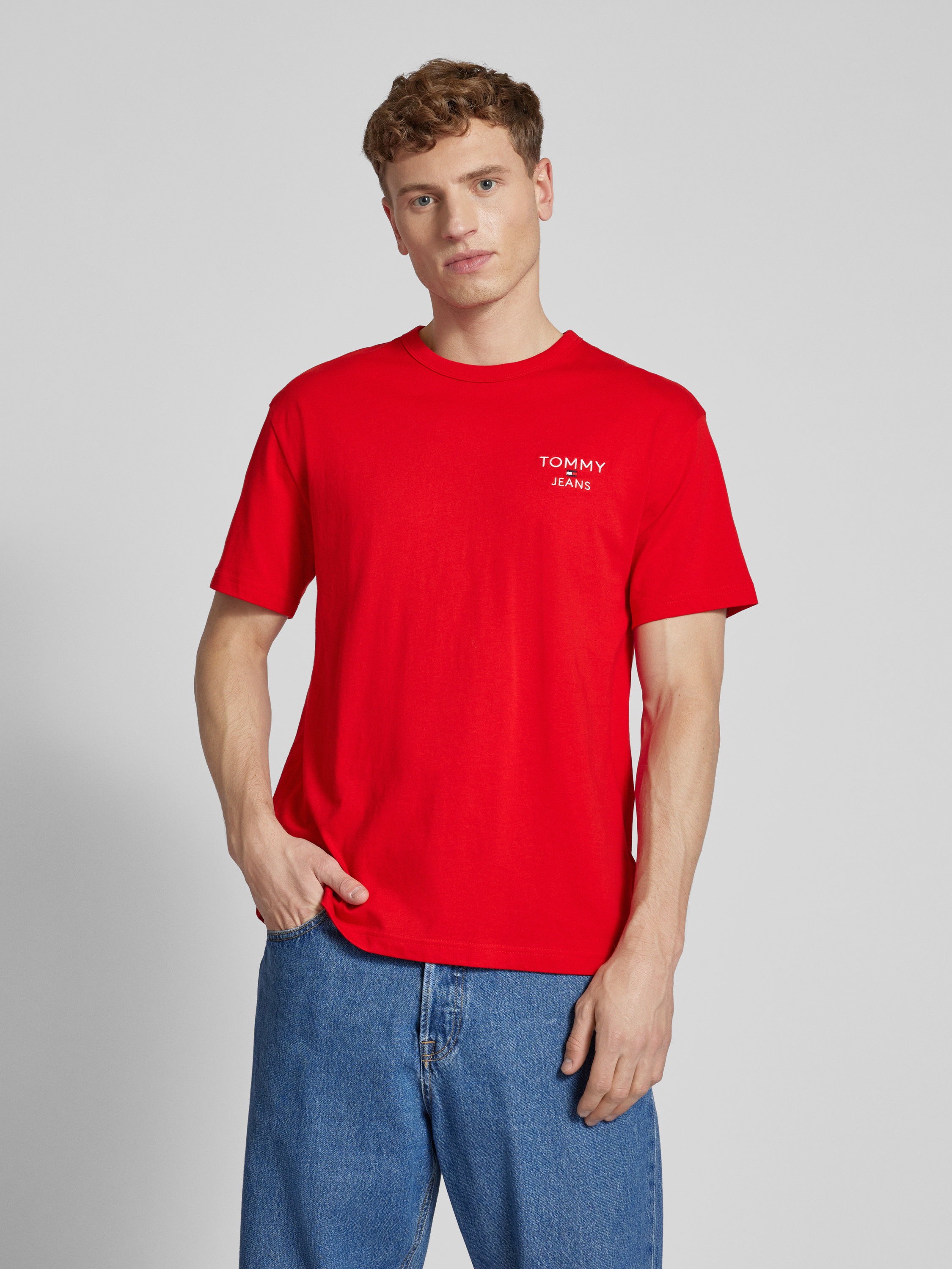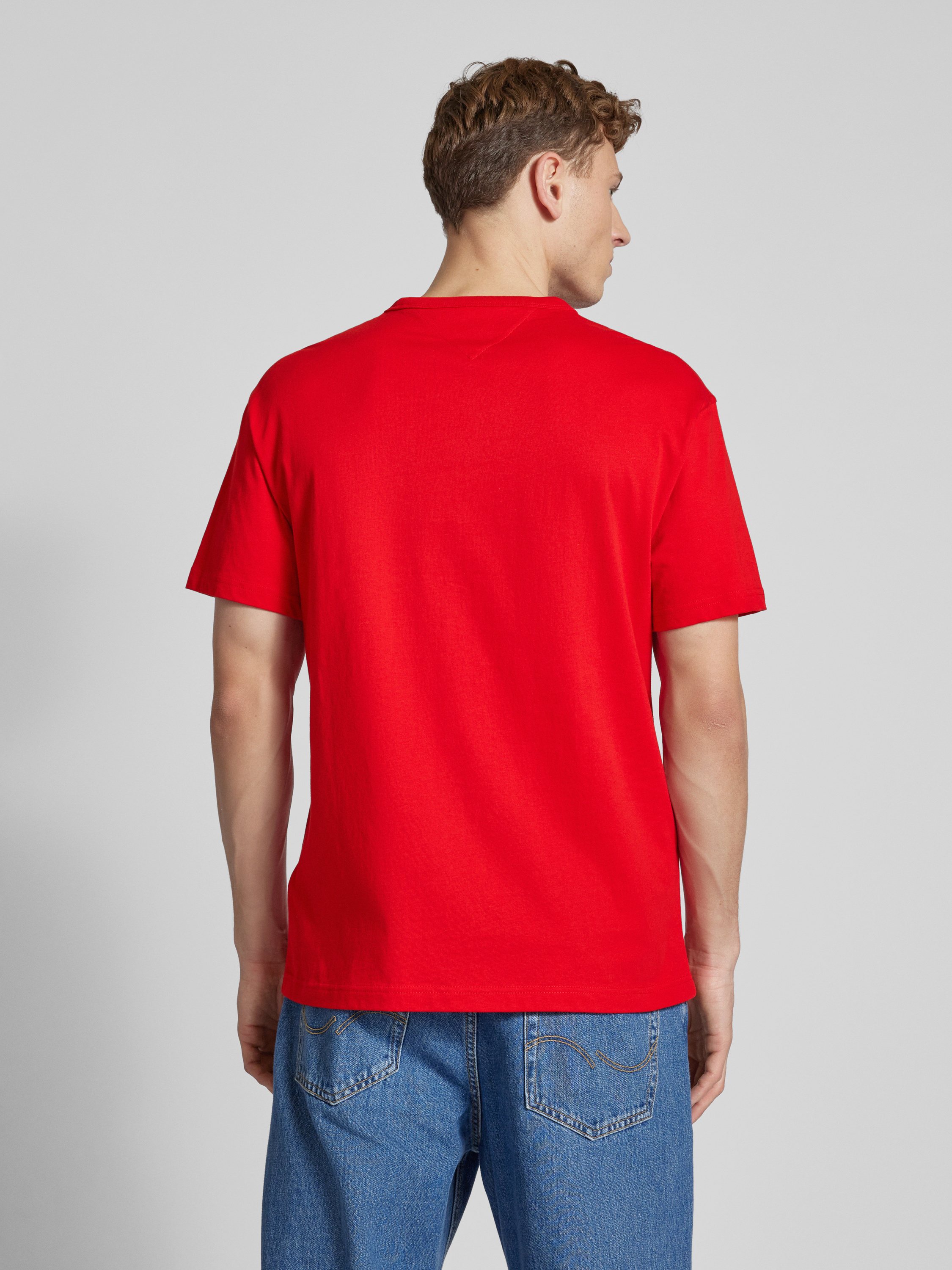 Das Herren T-Shirt von Tommy Jeans aus reiner Baumwolle bietet durch seinen geraden Schnitt ein angenehmes Tragegefühl. Das unifarbene Design mit Rundhalsausschnitt und subtilen Label-Stitching verleiht dem Outfit eine dezente Eleganz. Ideal für entspannte Alltagskombinationen geeignet.