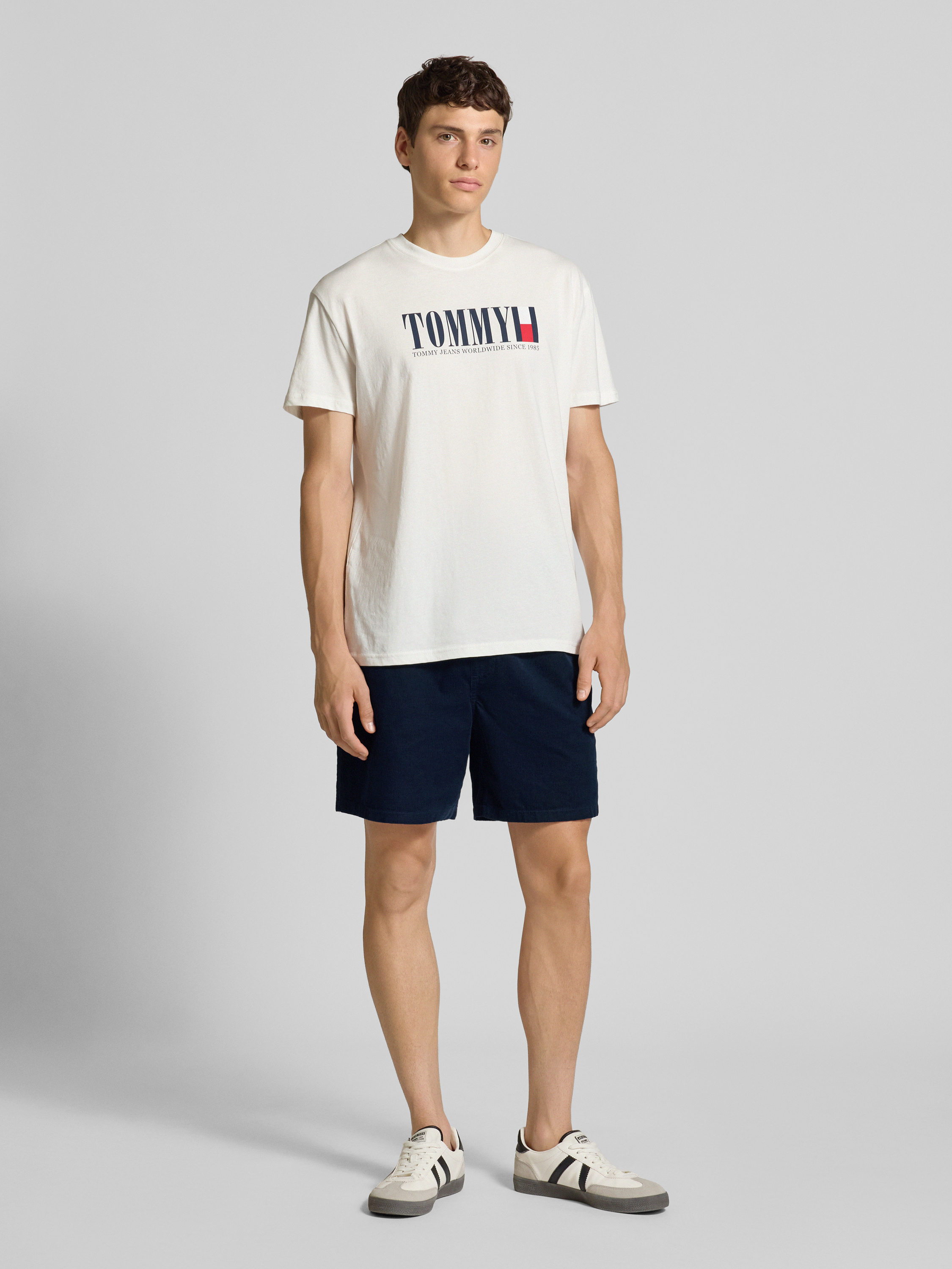 Die Tapered Bermudas von Tommy Jeans kombinieren eine moderne Passform mit dem angenehmen Tragegefühl von Baumwoll-Cord. Dank des elastischen Bunds und der praktischen Taschen eignen sie sich ideal für entspannte Tage. Das dezente Label Stitching verleiht dem unifarbenen Design eine subtile Note.